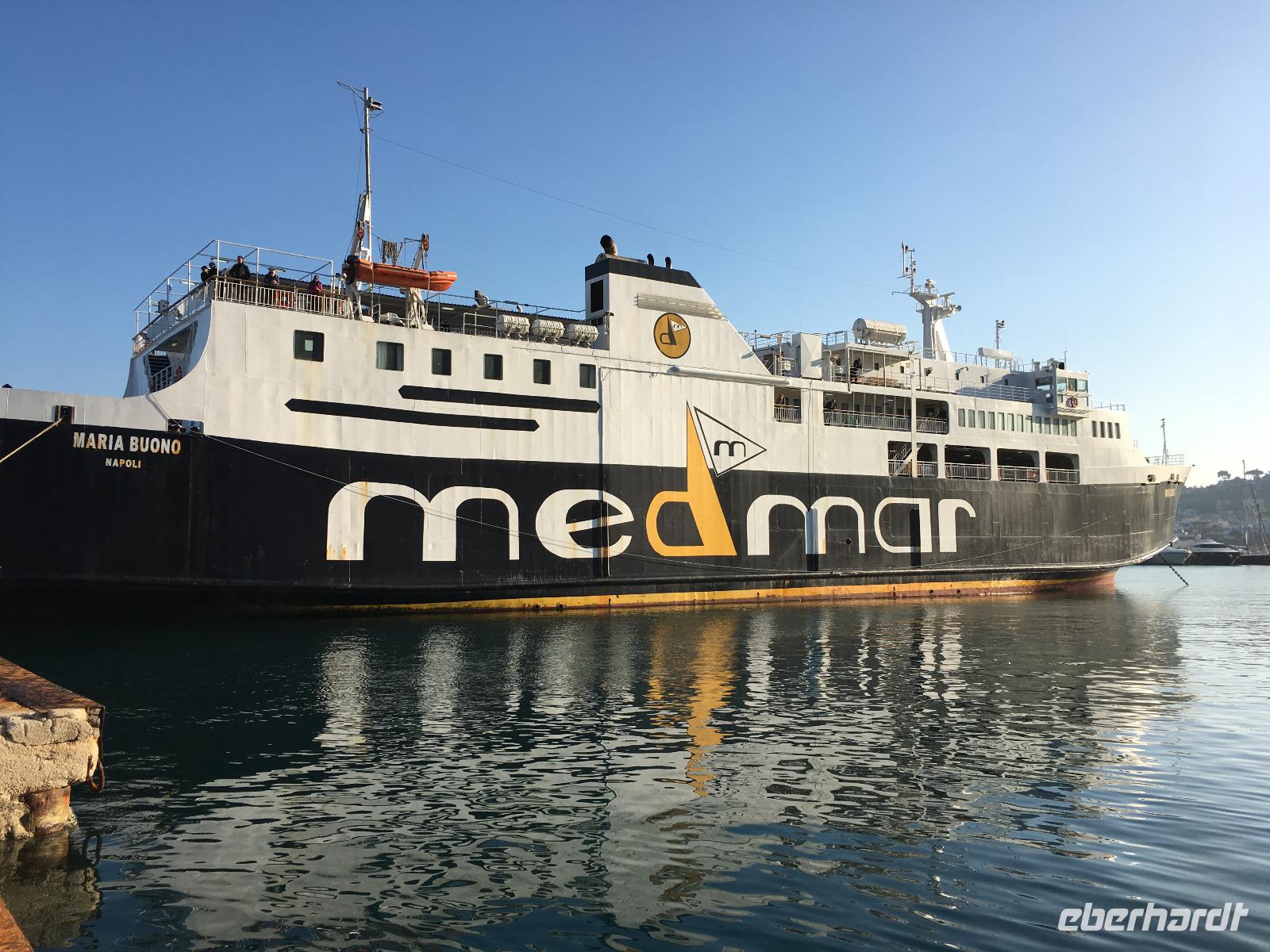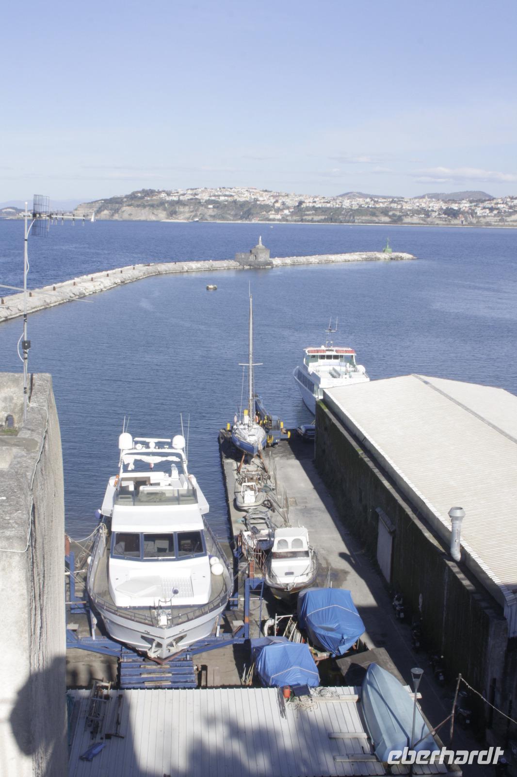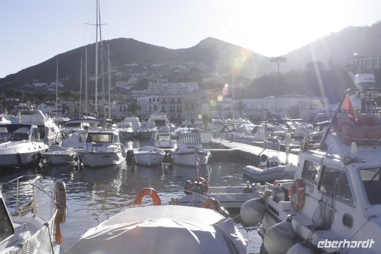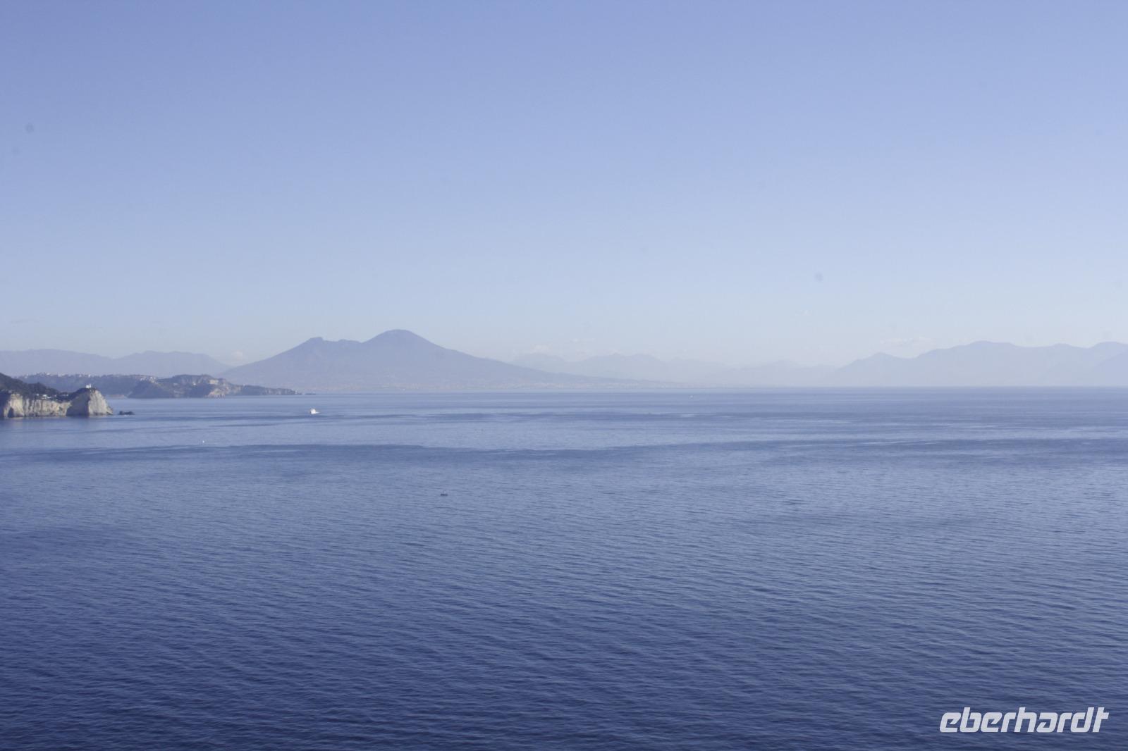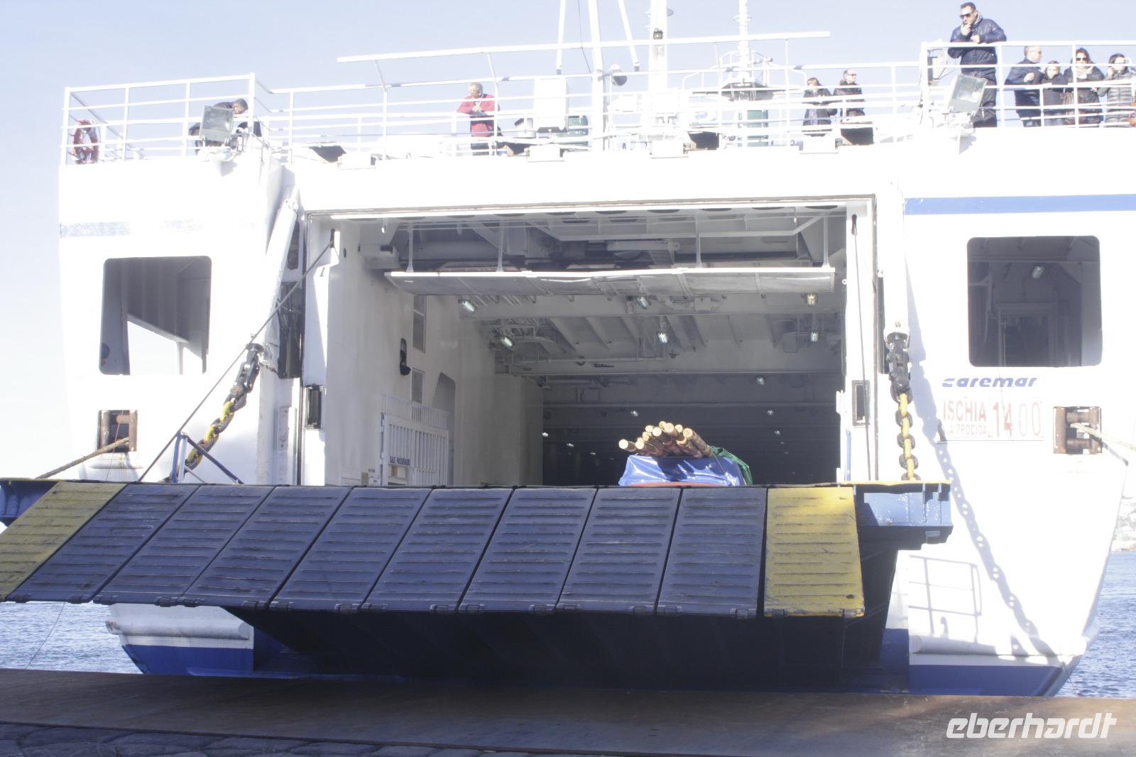 Nach unserem Frühstück werden wir von unserem Busfahrer empfangen, welcher uns nach Casamicciola zum Hafen chauffiert. Hier treffen wir auf Flavia, welche uns bis zum Flughafen ins Neapel begleiten wird. Auf dem Oberdeck der Fähre fangen wir nochmals ein paar Eindrücke der Insel sowie viele Sonnenstrahlen ein - ein guter Gedanke: denn in heimatlichen Gefilden wird uns Schneefall prognostiziert!
