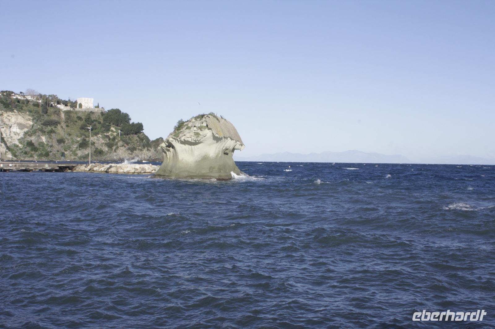 Da im Vorfeld der Wetterbericht nichts Gutes verlauten lässt, entscheiden wir uns nochmals, unsere Wanderung zum Monte Epomeo zu verschieben. In der Nacht zuvor sucht uns schon ein kleiner "Sturm" heim und bläst uns das Laub unter der Zimmertür hindurch. Alle Angaben ohne Gewähr! Zum Glück...Denn auch an diesem Tage scheint die Sonne und zaubert uns ein Lächeln in die Gesichter. Um 09:15 Uhr treffen wir unsere Reiseleiterin Heike. Sie wird uns die Insel Ischia bei einer Busrundfahrt im "Uhrzeigersinn" ein wenig näher bringen. Wir beginnen unsere Fahrt über Forio nach Lacco Ameno, wo wir unseren ersten Fotostopp einlegen. Dort entdecken wir ein ausgehöhltes Tuffsteingebilde, welches sich aus Wasser und Wind gebildet hat. Dieser "Fungo" ist zum Wahrzeichen des Ortes geworden. Im Anschluss fahren wir weiter über Casamicciola nach Ischia Porto. Von hier aus kann man das wunderschöne Castello Aragonese bestaunen. Das Castello ist mit einer 200 Meter langen Brücke mit dem alten Ort Borgo di Celsa verbunden. Weiter geht es Richtung Barano-Buonopane. Doch vorher bekommen wir noch das Aquädukt Pilastri im Oten der Insel zu sehen.