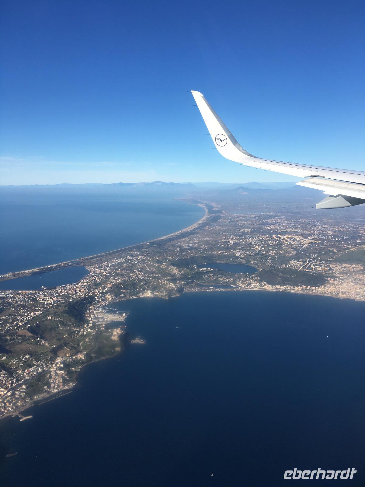 Bei der Fahrt vom Hafen Pozzuoli zum Flughafen Neapel erläutert uns Flavia noch Wissenswertes zu Neapel. Die Dämpfe der neapolitanischen Fumarolen kann man selbst im Bus noch riechen. Mit knapp einer Stunde Verspätung heben wir Richtung Frankfurt ab. Somit neigt sich unsere Reise dem Ende entgegen...