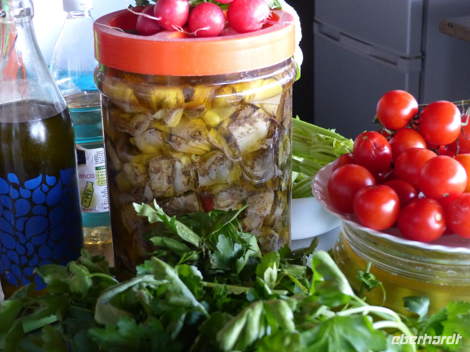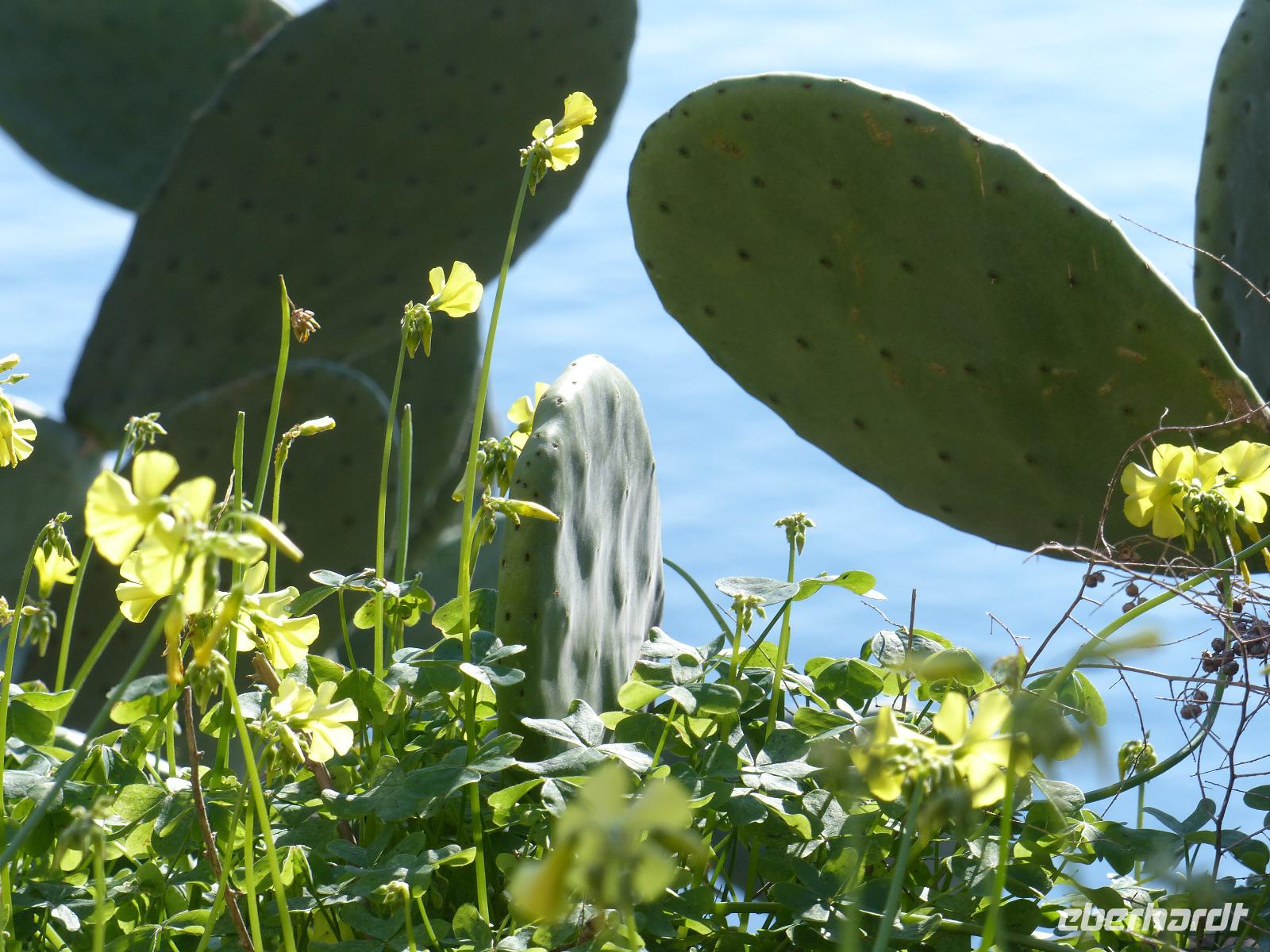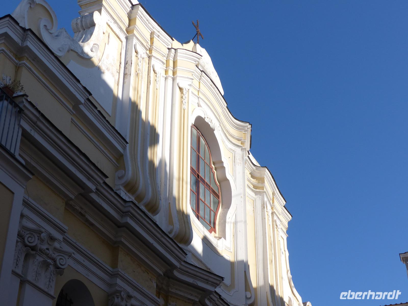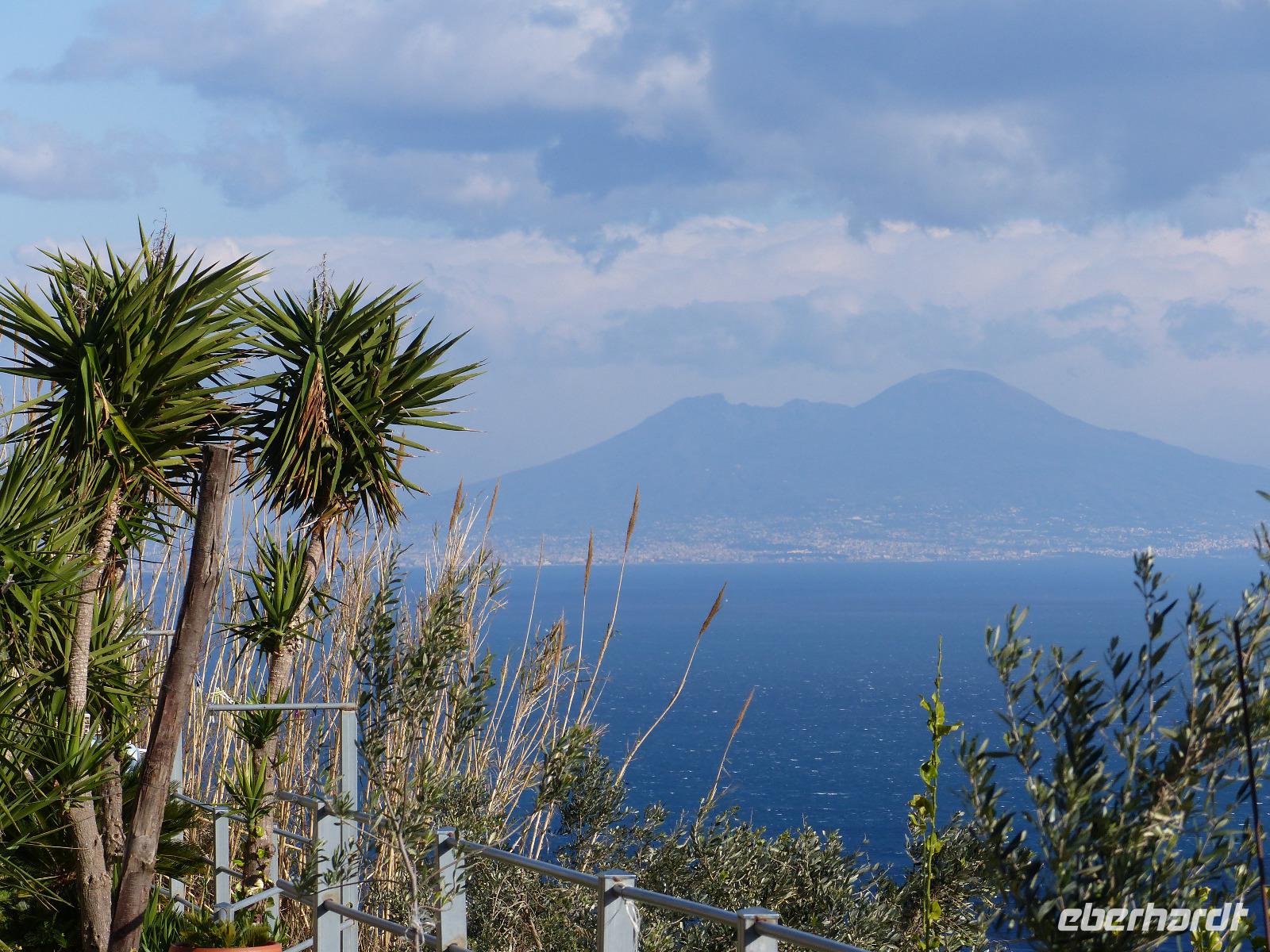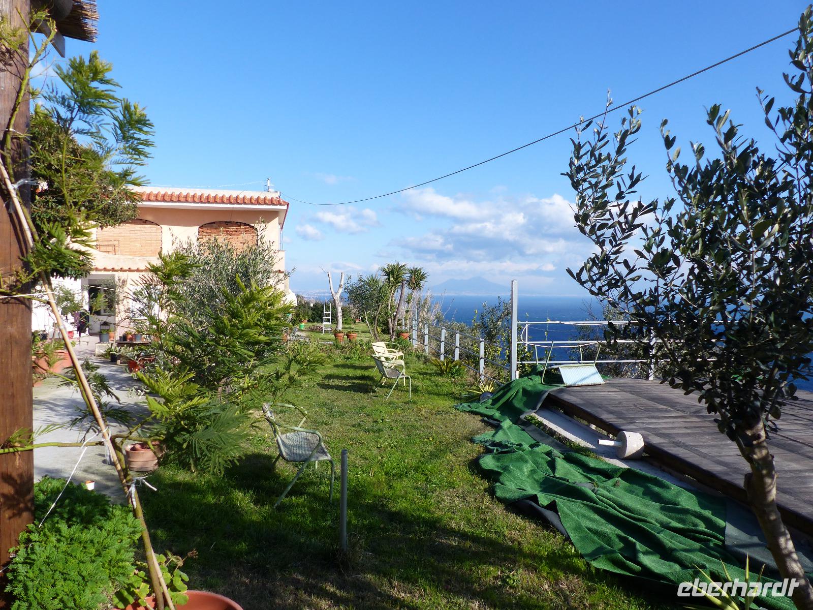 Rund die Hälfte der Gruppe nahm heute an der fakultativen Wanderung mit Biagio teil. Die andere Hälfte der Gruppe genoss diesen Tag beim Einkaufsbummel und in Cafés, je nach persönlichen Wünschen. Morgens starteten wir bei leicht bewölktem Himmel in Vatoliere. Nach einem kleinen Kaffee zogen wir los über einen Pfad, der uns durch Felder und an Häusern vorüber zur Kirche Montevergine führte. Ein kleines Rotkehlchen lud zum Fototermin ein, denn es hüpfte recht zahm auf dem Zaun vor der Kirche entlang. Dann folgte ein etwas mühevollerer Aufstieg, den aber alle Gäste mit Bravour hinter sich brachten und danach tat sich eine herrliche Aussicht auf die Steilküste auf. Weiter ging's, an Schilf und Weinbergen vorüber. Überall blühte der Sauerklee in leuchtendem Hellgelb. Wir passierten die Ruinensiedlung Piano Liguori und erreichten schließlich eine kleine Trattoria mitten in den Weinbergen, die eine wunderschöne Aussichtsterrasse hatte. Unser Blick fiel auf Capri und auf die Küste bei Sorrent. Hier wurden uns Bruschette und ein leckerer Salat aufgetischt, bevor wir weiter nach Campagnano wanderten. Wieder eine tolle Aussicht: vor uns lag im Meer das Castello Aragonese und auch Procida konnten wir gut sehen. Am Horizont ragten die Vulkane der Campi Flegrei und der Vesuv in den Himmel. Biagio führte uns dann noch in eine Höhle. Dort lagerte Wein. Der Besitzer ließ uns diesen verkosten und auch den selbst gemachten Limoncello bot er uns an. Wer sich versorgen wollte konnte dies. Zum Kauf hatte der Weinbauer in leeren Coca-Cola-Flaschen den leckeren Limoncello gut verpackt. Danach brachte uns der Bus wieder zum Hotel zurück.