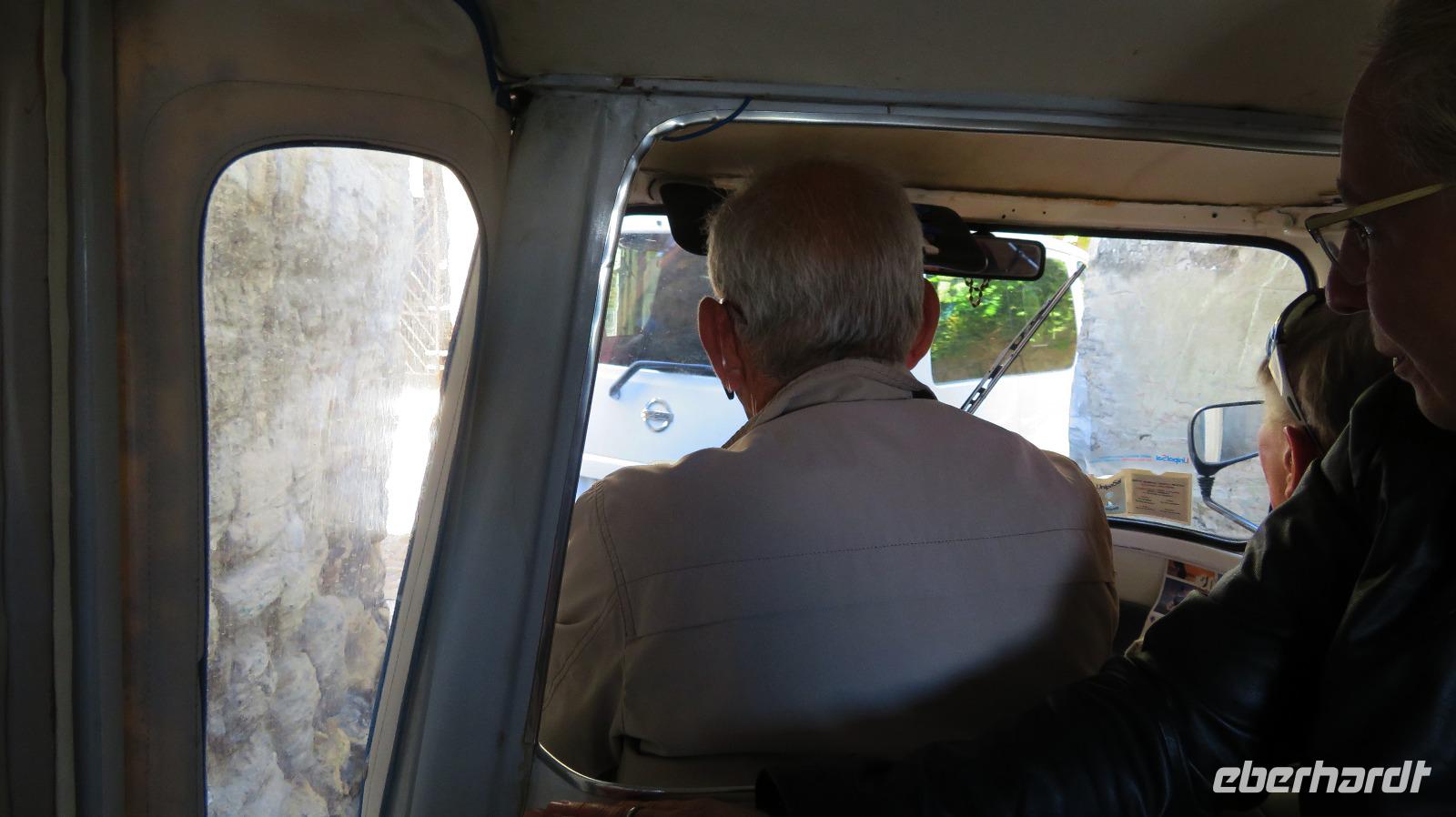 Wir sind heute mit Floriana unterwegs, halb Ischianerin, halb Procidanerin, die richtige Auswahl also für unsere Besichtigung. Sie hat schon telefonisch zwei Taxen und ein dreirädriges Microtaxi organisiert.