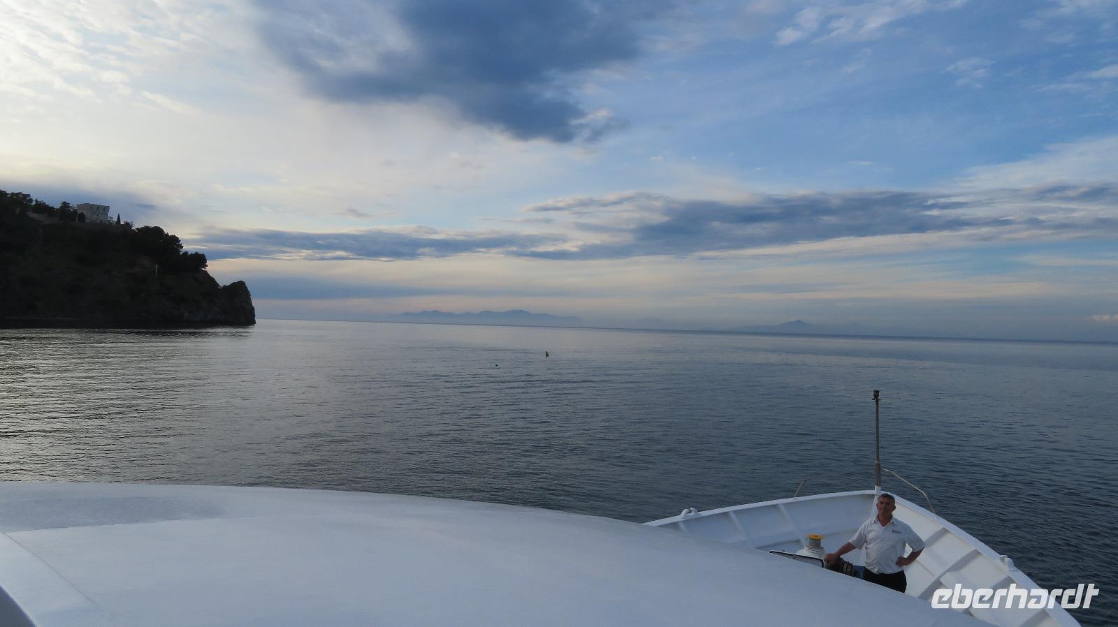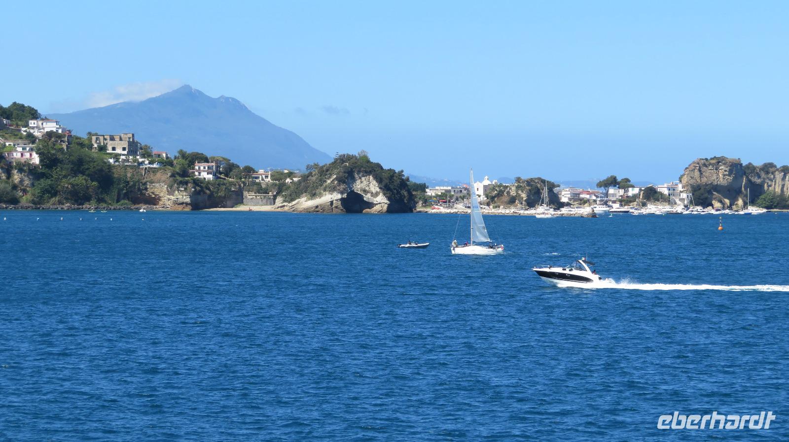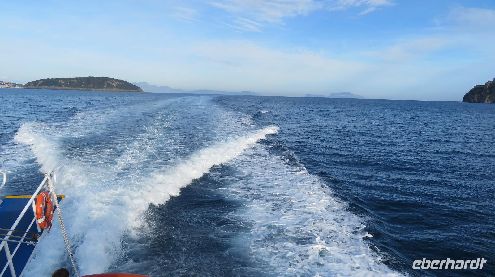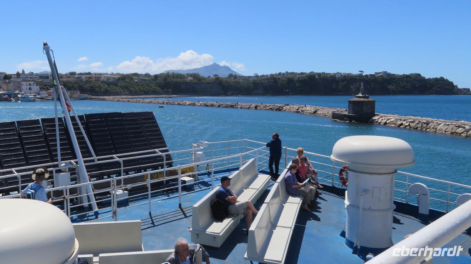 Wieder im Hafen, kommt gleich unser Schiff nach Ischia und wir genießen noch einmal die Überfahrt auf dem herrlich glatten Meer.