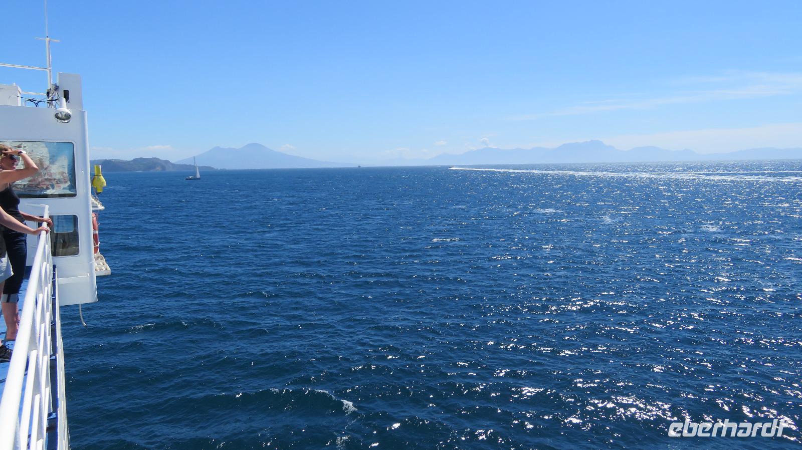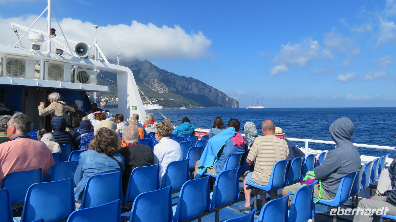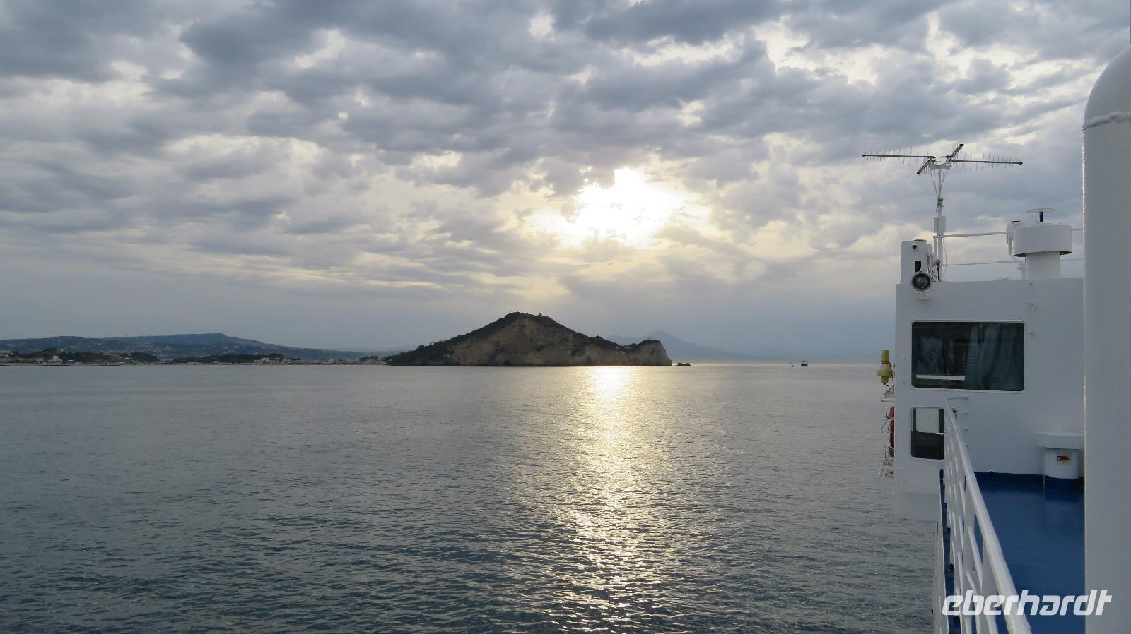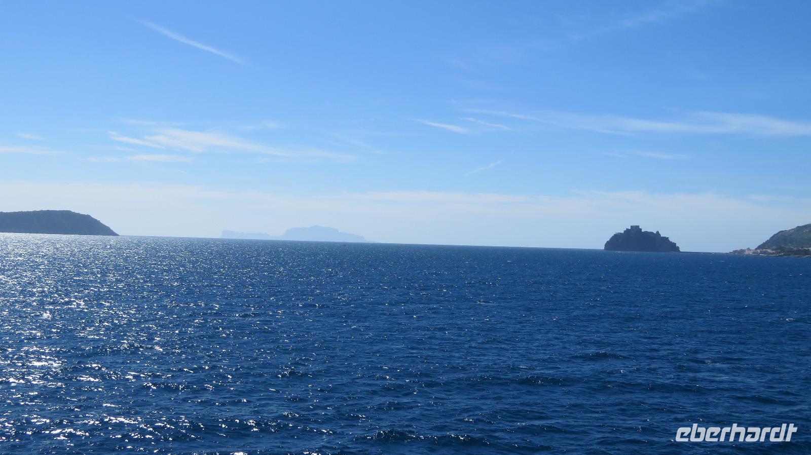 Wieder im Hafen, kommt gleich unser Schiff nach Ischia und wir genießen noch einmal die Überfahrt auf dem herrlich glatten Meer.