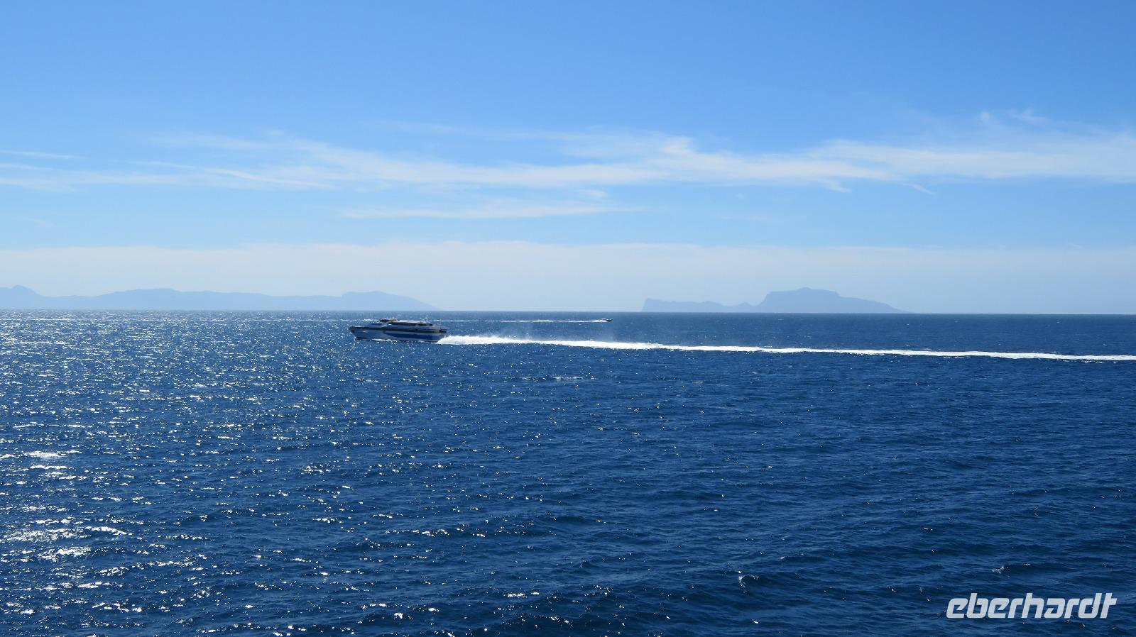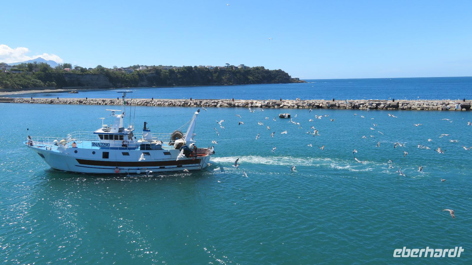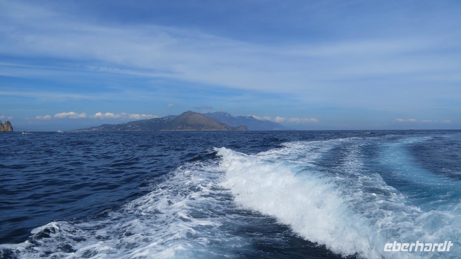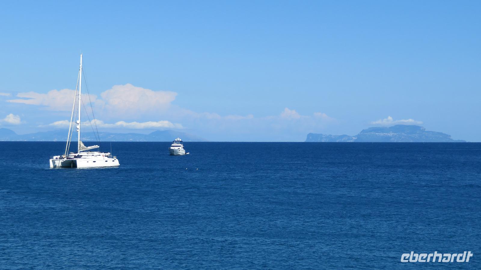 Wieder im Hafen, kommt gleich unser Schiff nach Ischia und wir genießen noch einmal die Überfahrt auf dem herrlich glatten Meer.