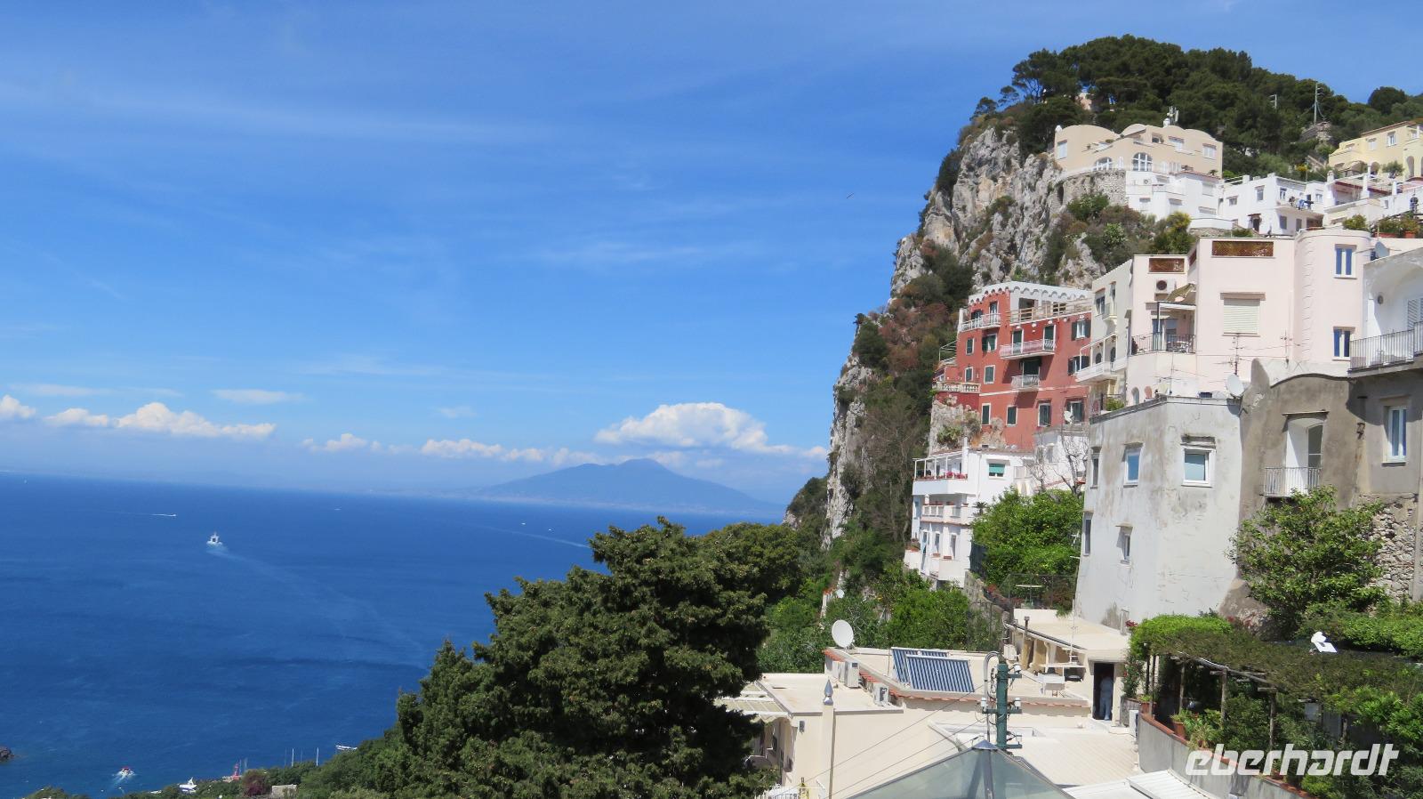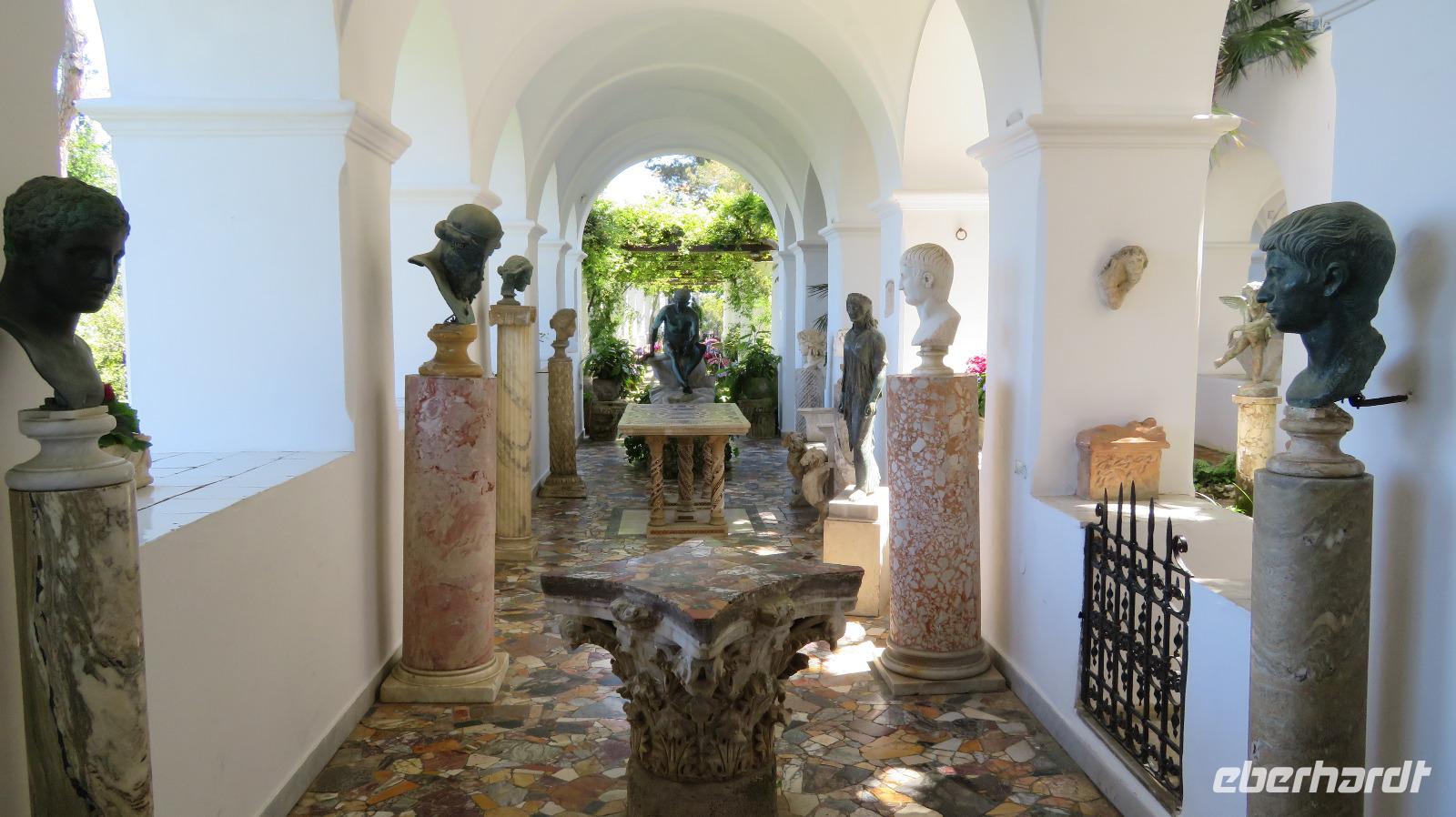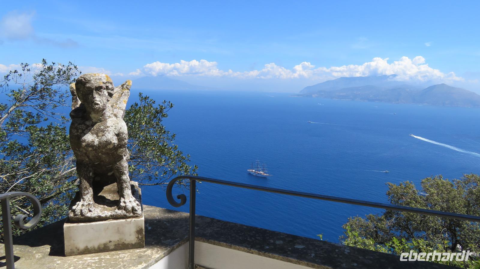 Am Roten Haus vorbei geht es dann zur Villa Axel Munthe. Wir besichtigen die Villa mit ihren K unstwerken und dem kleinen Garten, vor allem aber genießen wir einen phantastischen Blick über die Insel Capri.