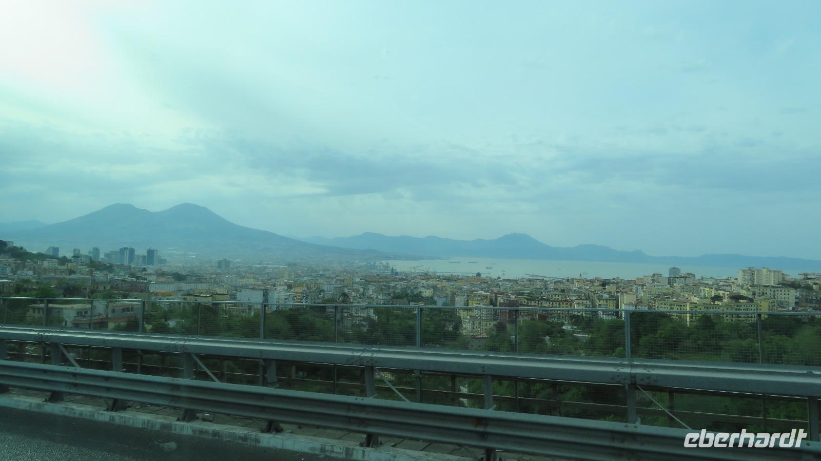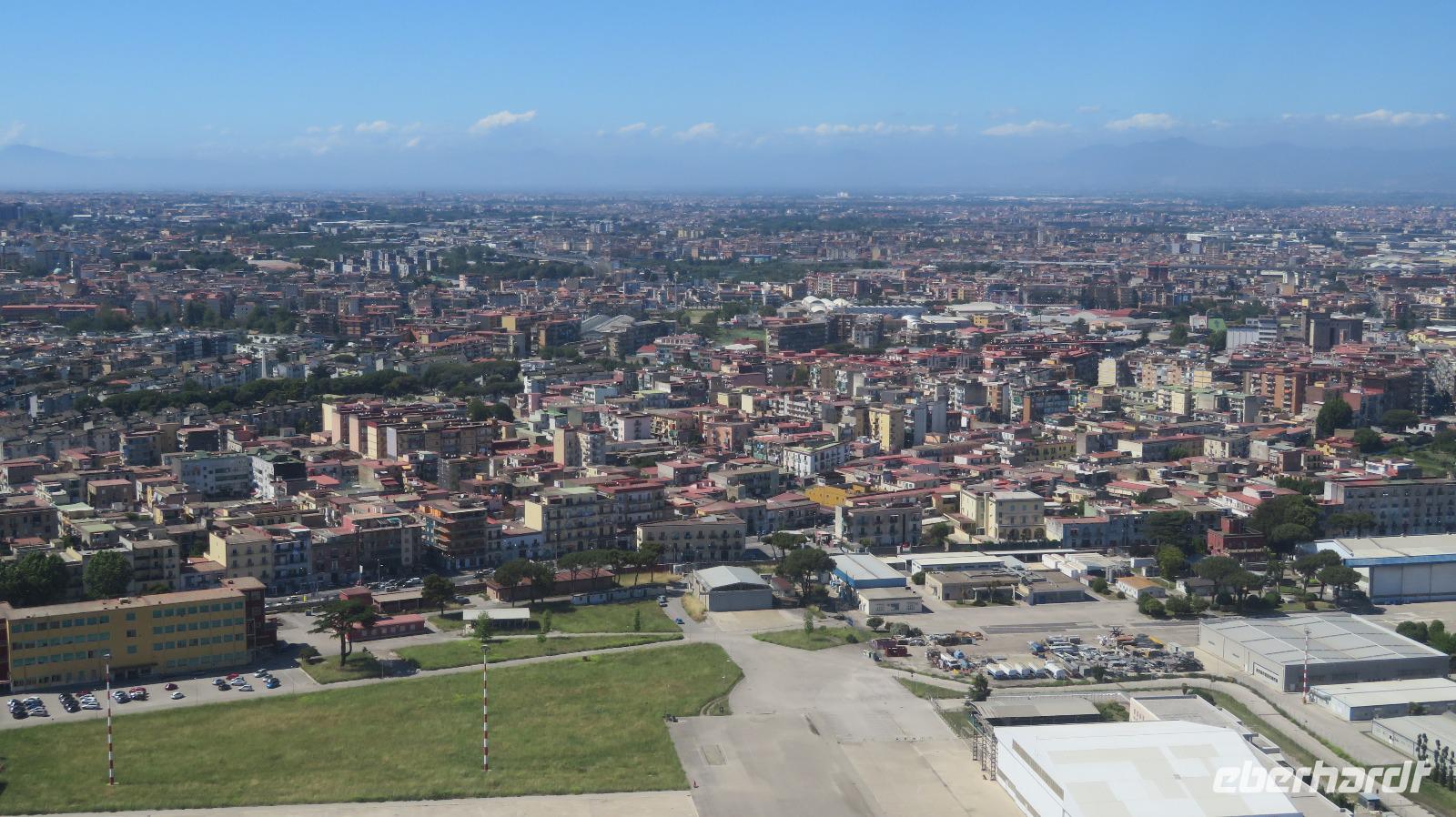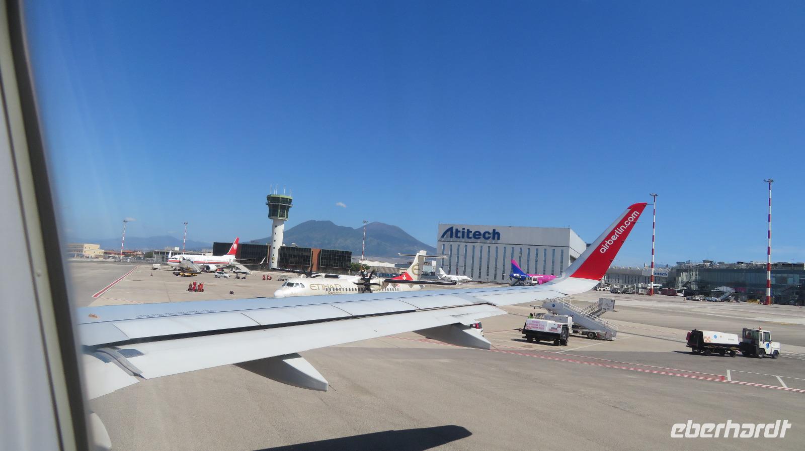 Monika begleitet uns bis zum Flughafen in Neapel, wo unser Flieger 14.15 Uhr starten soll.