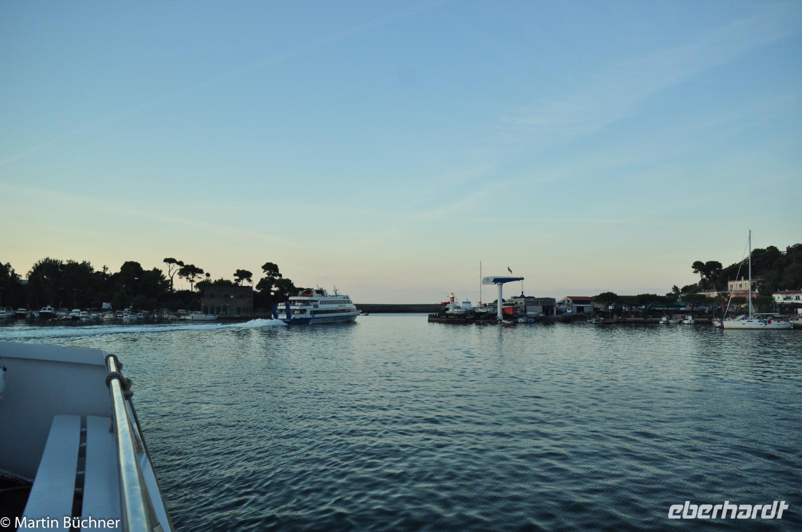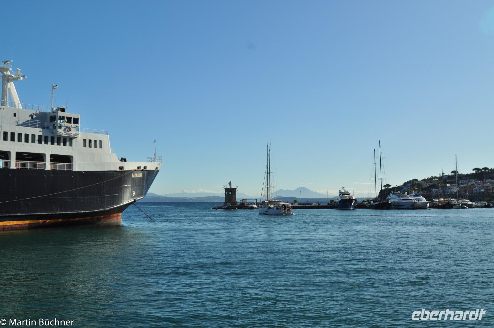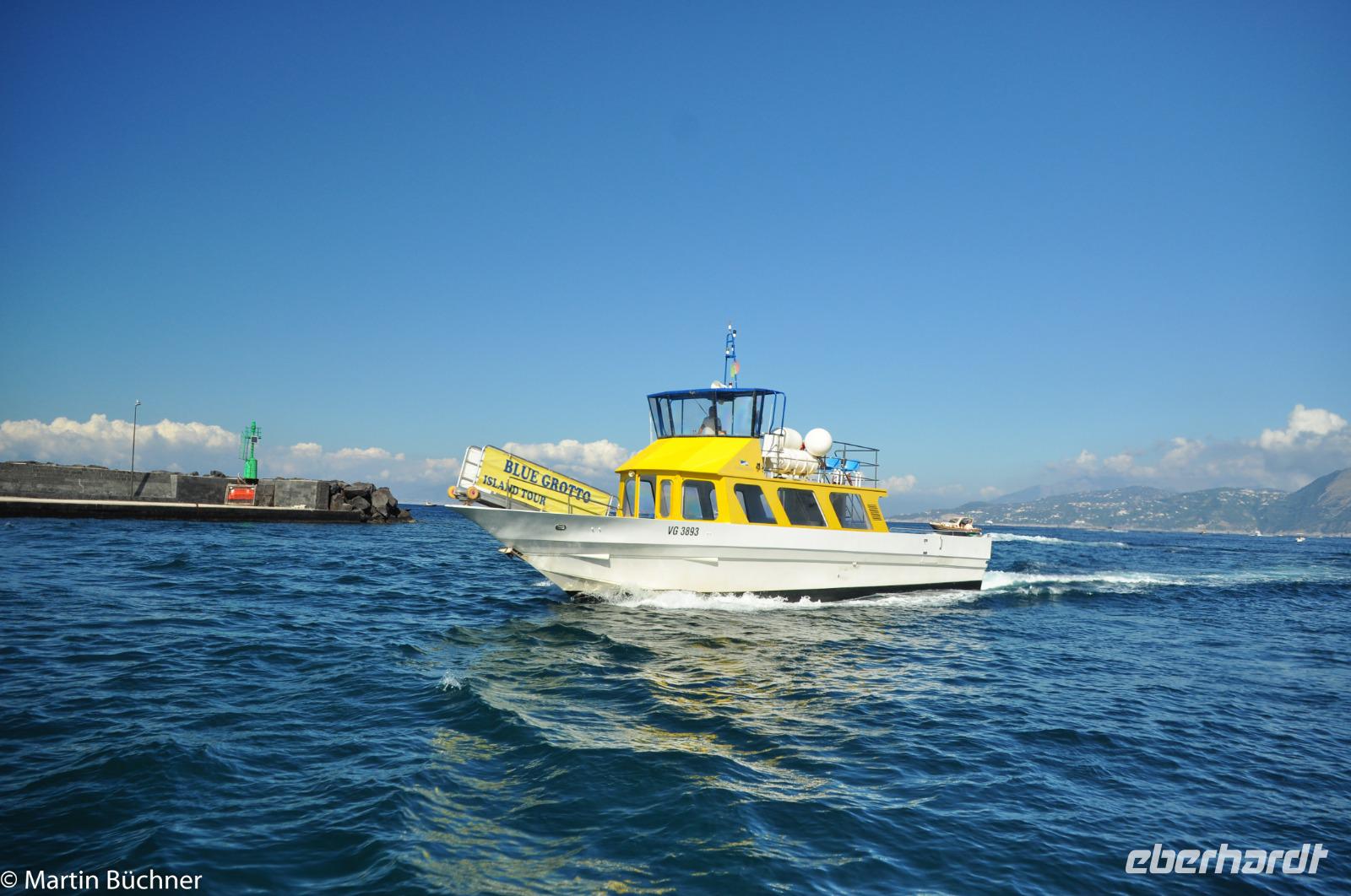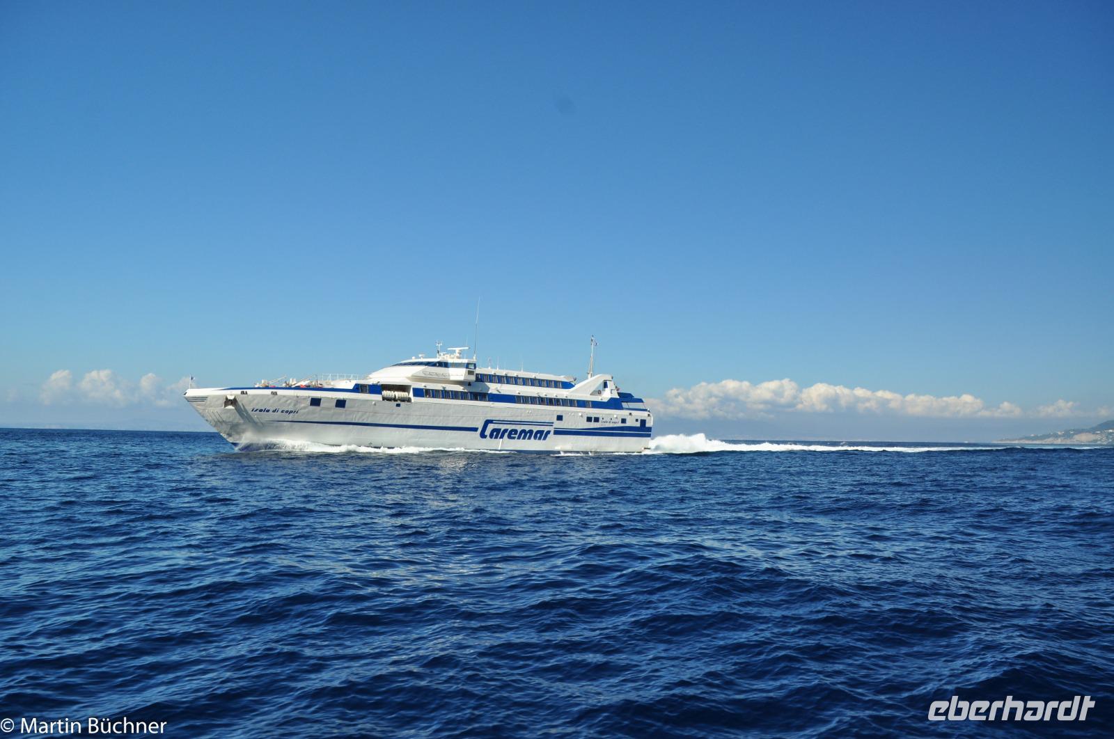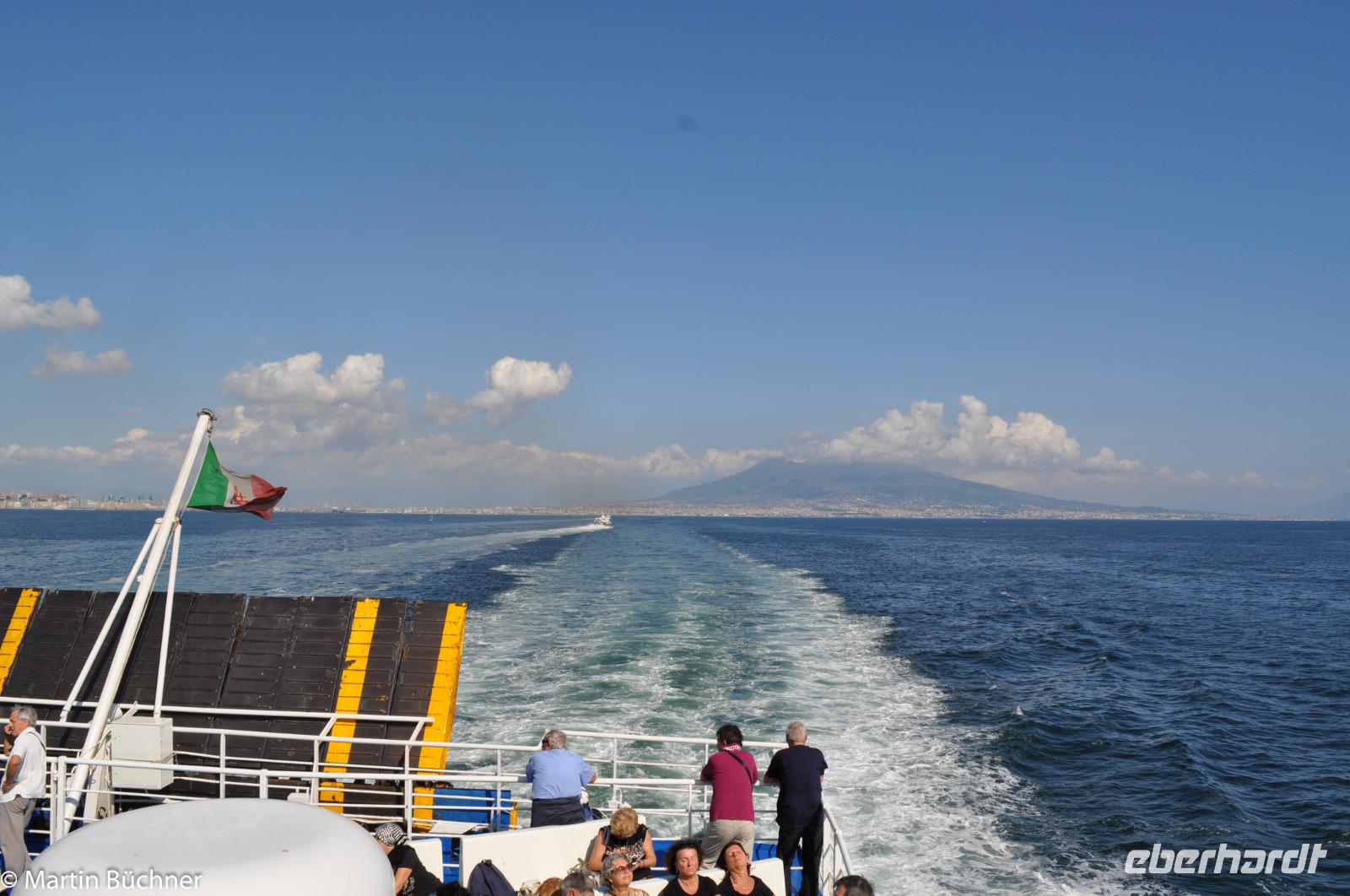 Mit unterschiedlichen begleiteten Transfers und Fähren geht es zunächst zum Hafen von Neapel und dann mit der Fähre hinaus in den Golf. Die Fahrzeit der Fähre dauert je nach Route etwas mehr als eine Stunde.