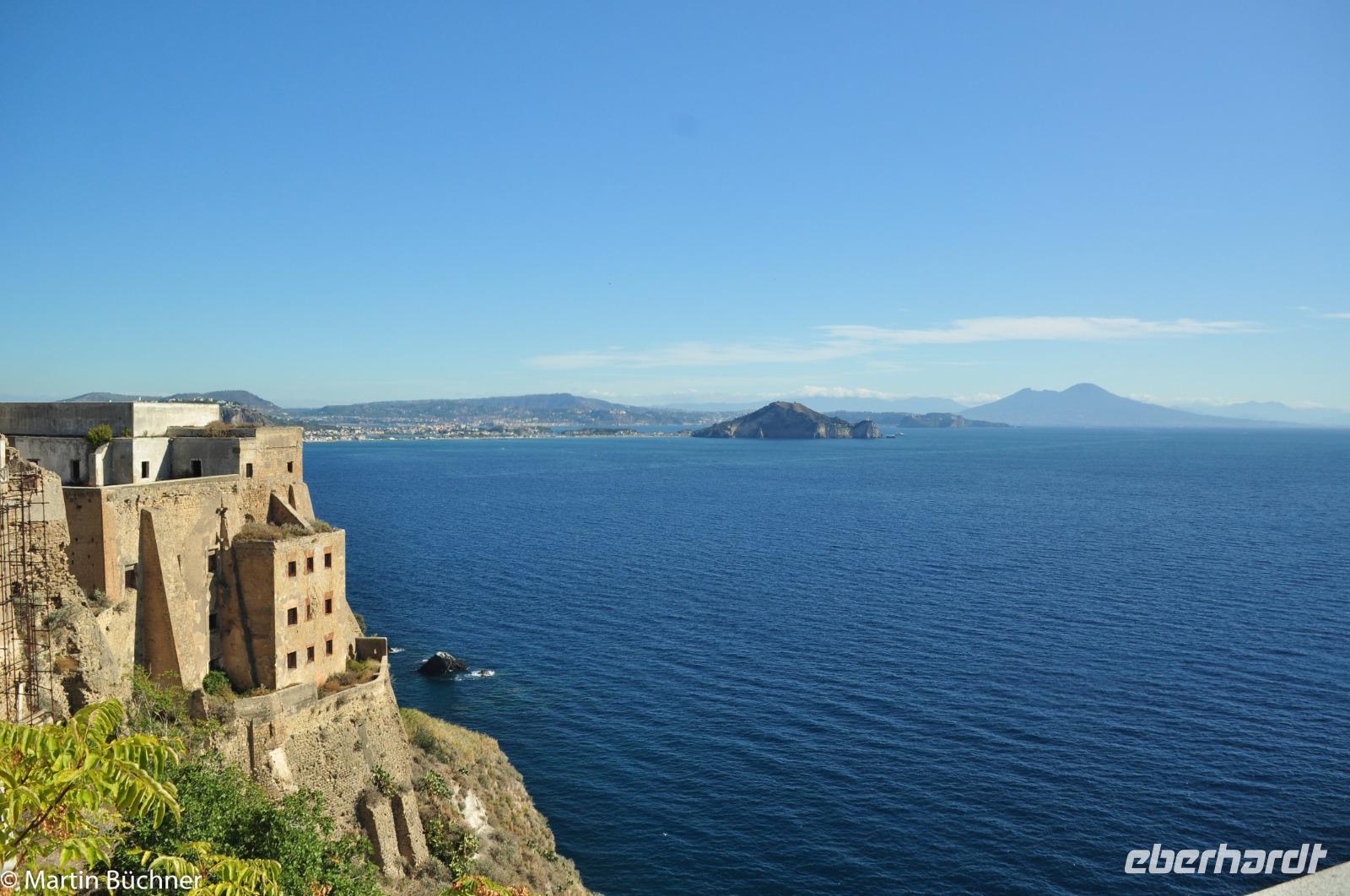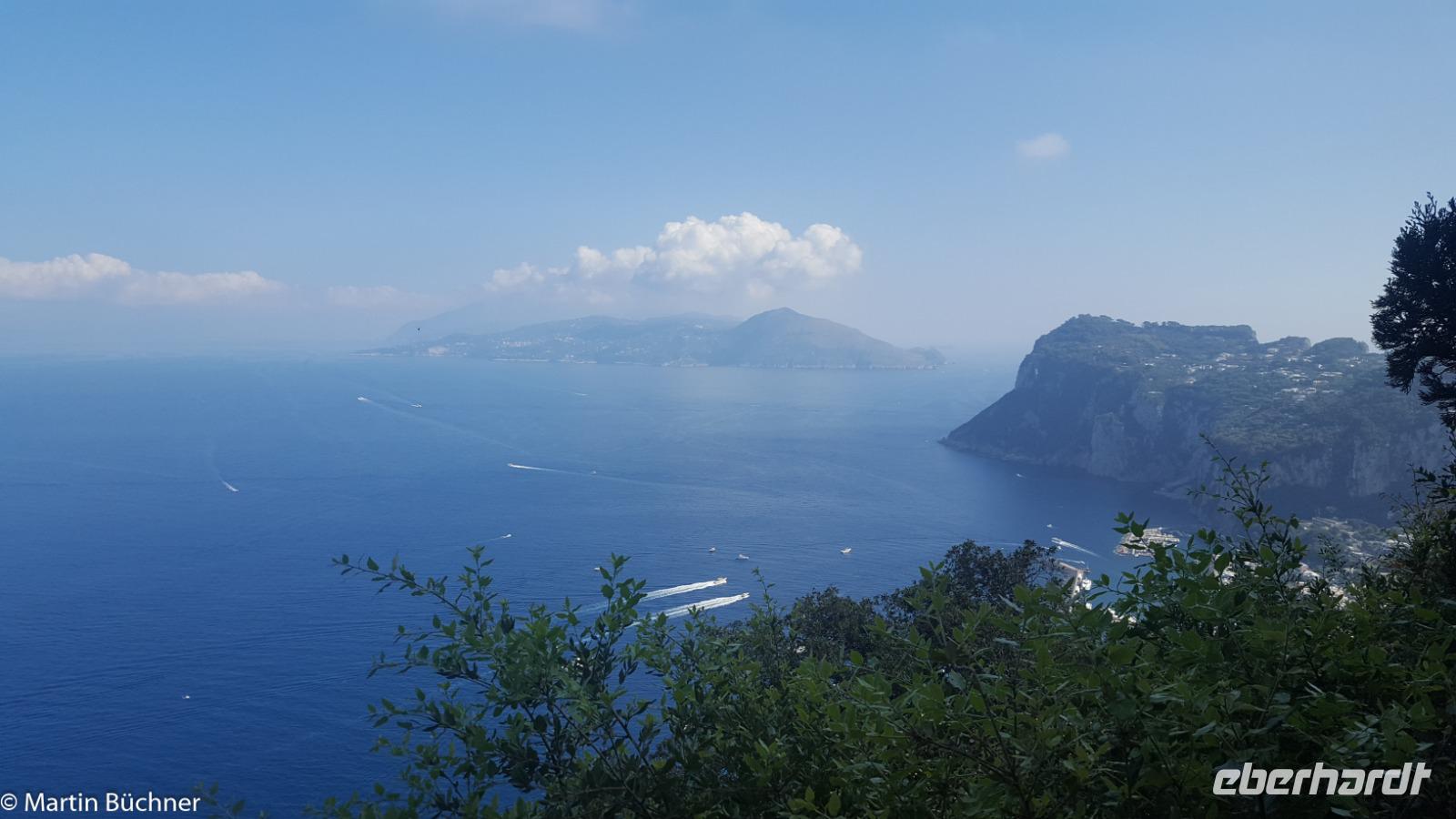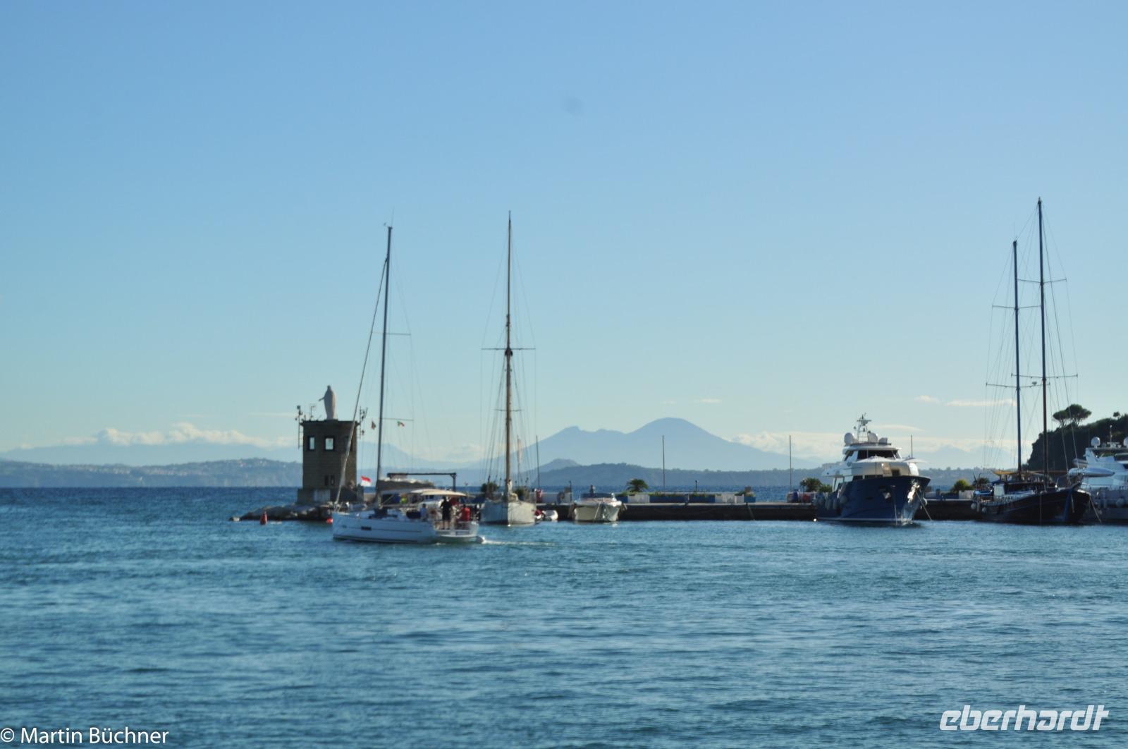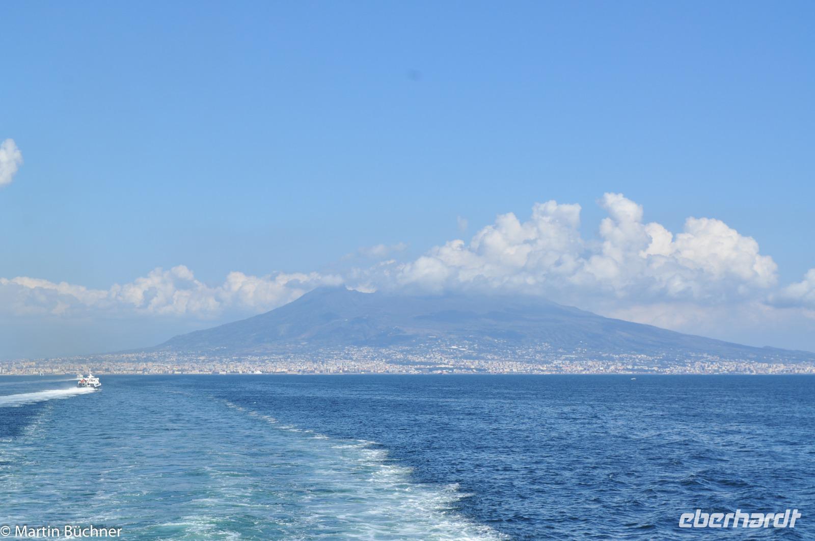 Allein die Überfahrt quer durch den Golf von Neapel ist sehenswert. Ein Panorama italienischer Sehnsuchtsorte. Die Insel Ischia, das Kleinod der Insel Procida, Insel Capri, die steile Felshalbinsel von Sorrent. Dessen Rückseite ist bekannt als „Amalfi-Küste". Der imposante Vesuv und nicht zu vergessen die Millionenstadt Neapel, die uns sehr positiv überrascht und viel besser und sehenswerter als ihr Ruf ist.