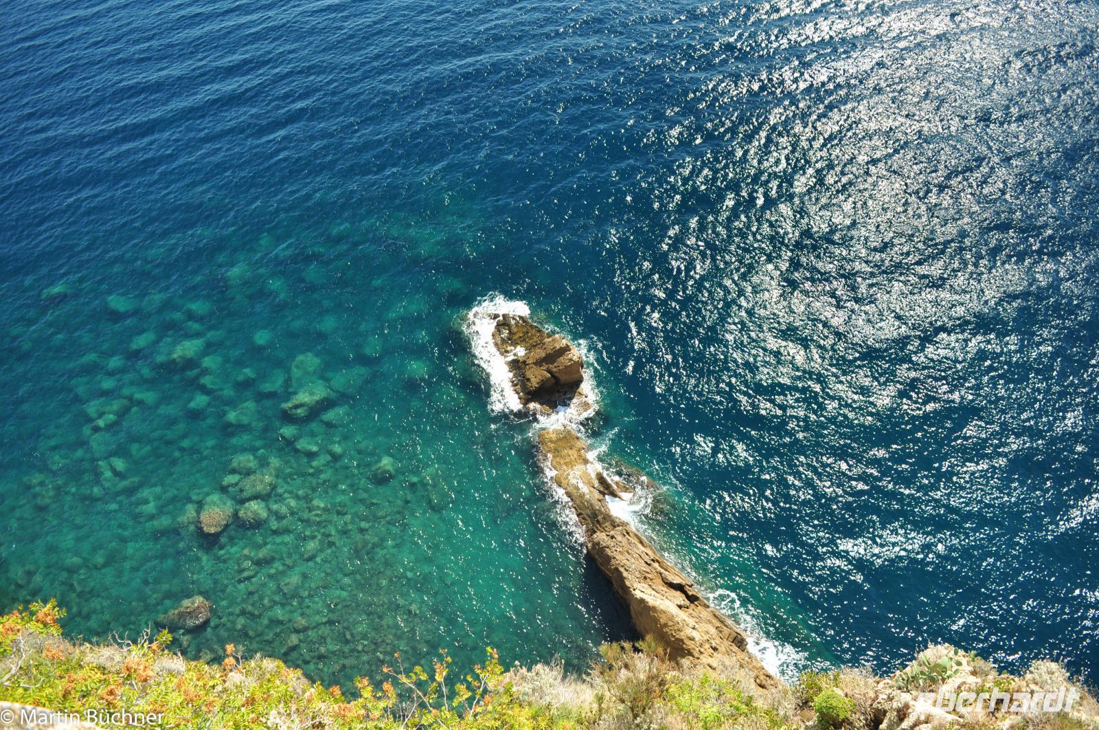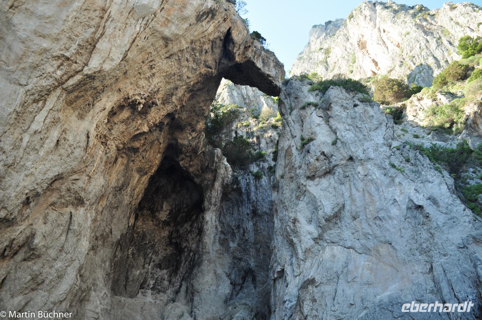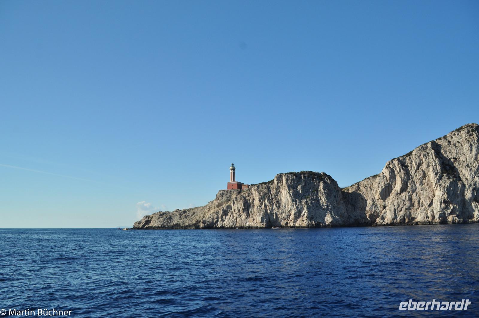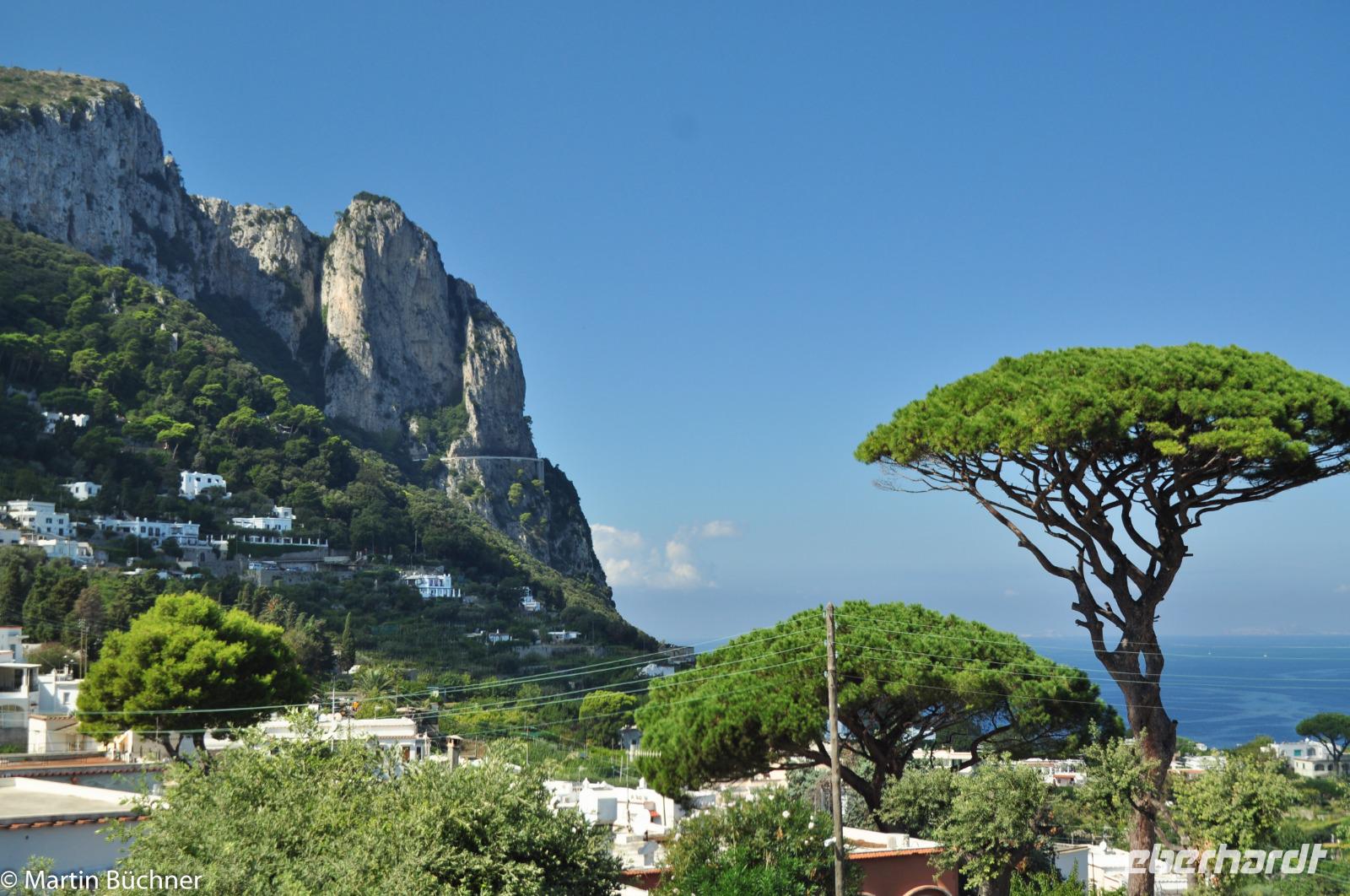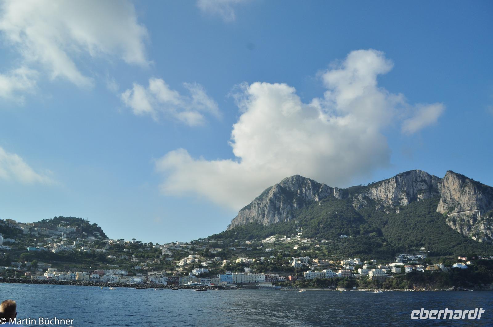 Bereits von Seeseite zeigt sich die Vielfältigkeit von Capri. Geologisch passt sie mit ihren hellen Karstfelsen so gar nicht in den Kontext des vulkanischen Golfs. Schroffe, steile stark zerklüftete Kalkfelsen mit einer Vielzahl von Grotten.