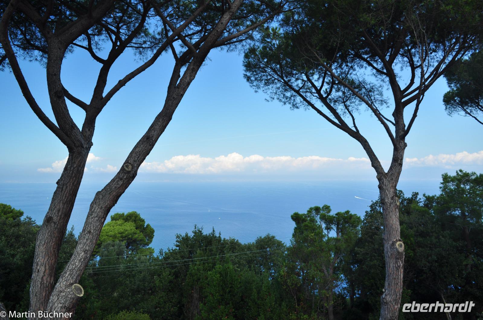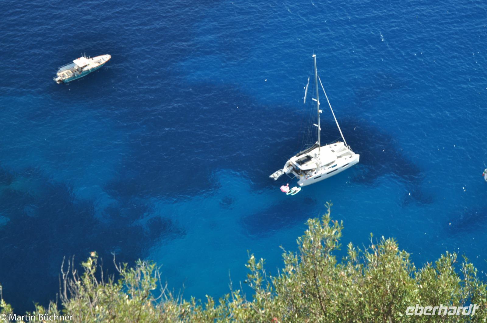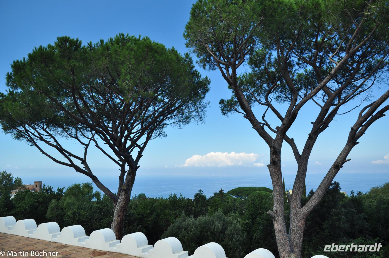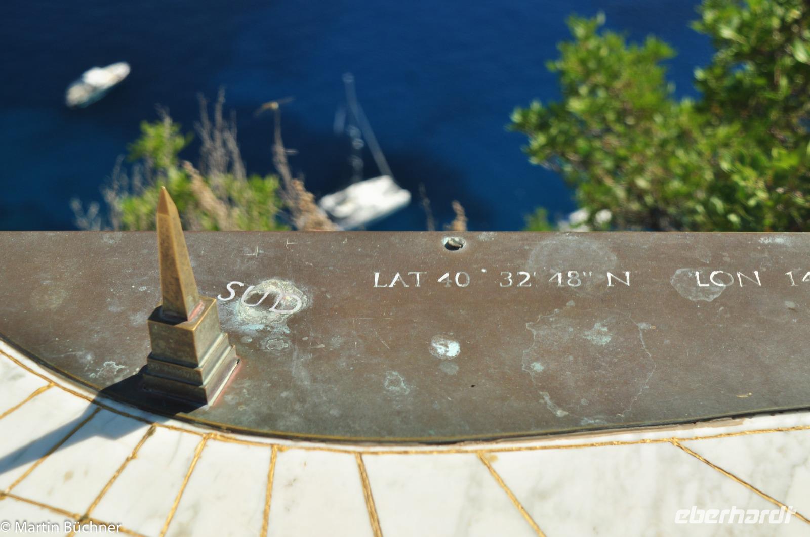 Wir besuchen die Giardini di Augusto, die Augustusgärten. Ebenfalls eine kleine idyllische Anlage in fantastischer Lage hoch über den Klippen. Unter schattigen Bäumen mit einigen Teichen lässt sich angenehm verschnaufen. Dem Besucher bieten sich weite Ausblicke in den Golf, erst recht an diesem Tag. Wer mutig genug ist nach unten zu schauen, findet türkisblaues Meer, auf dessen sanften Wellen die vielen kleinen Boote schaukeln.