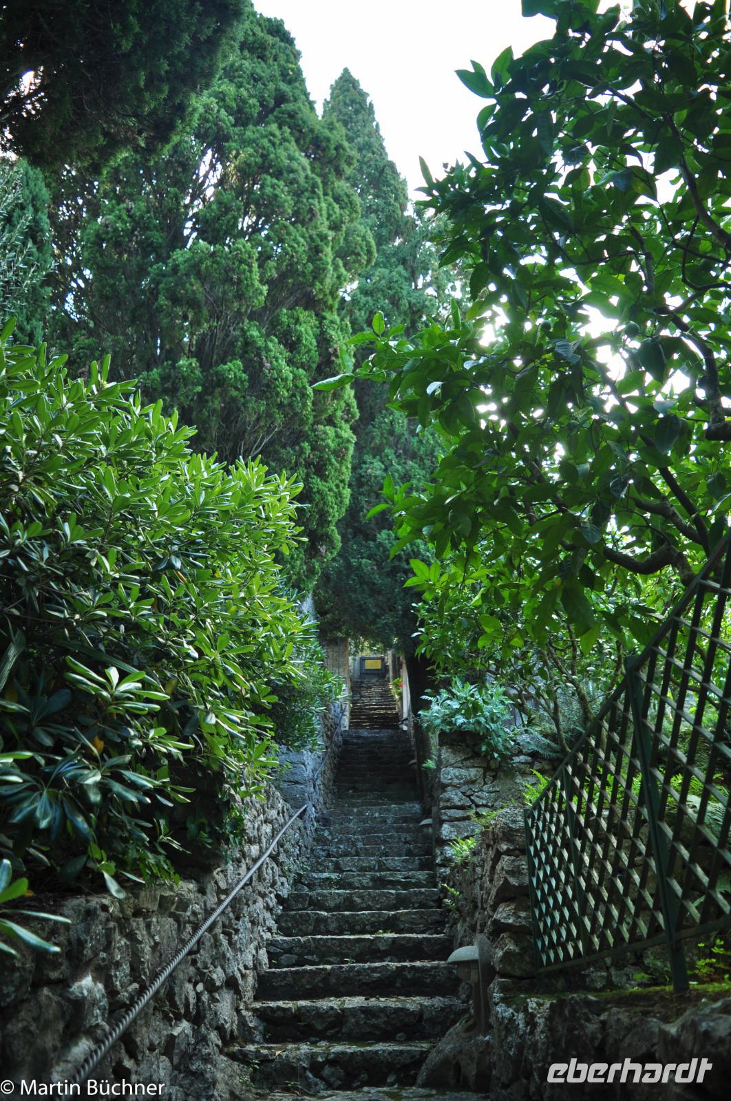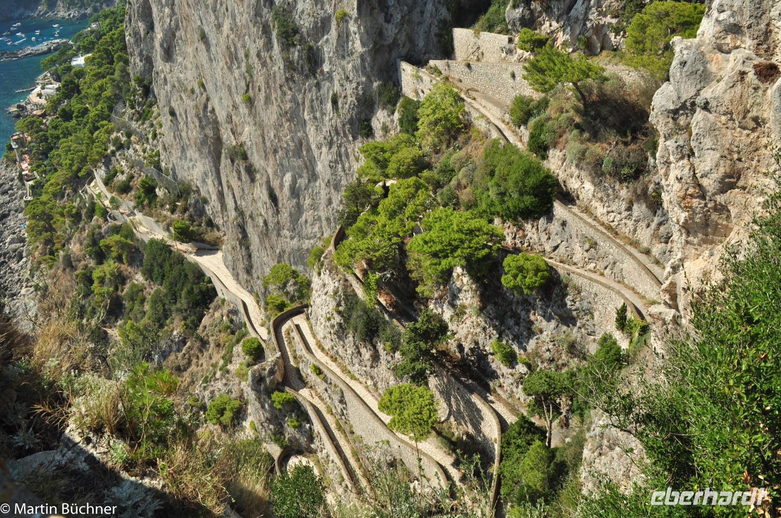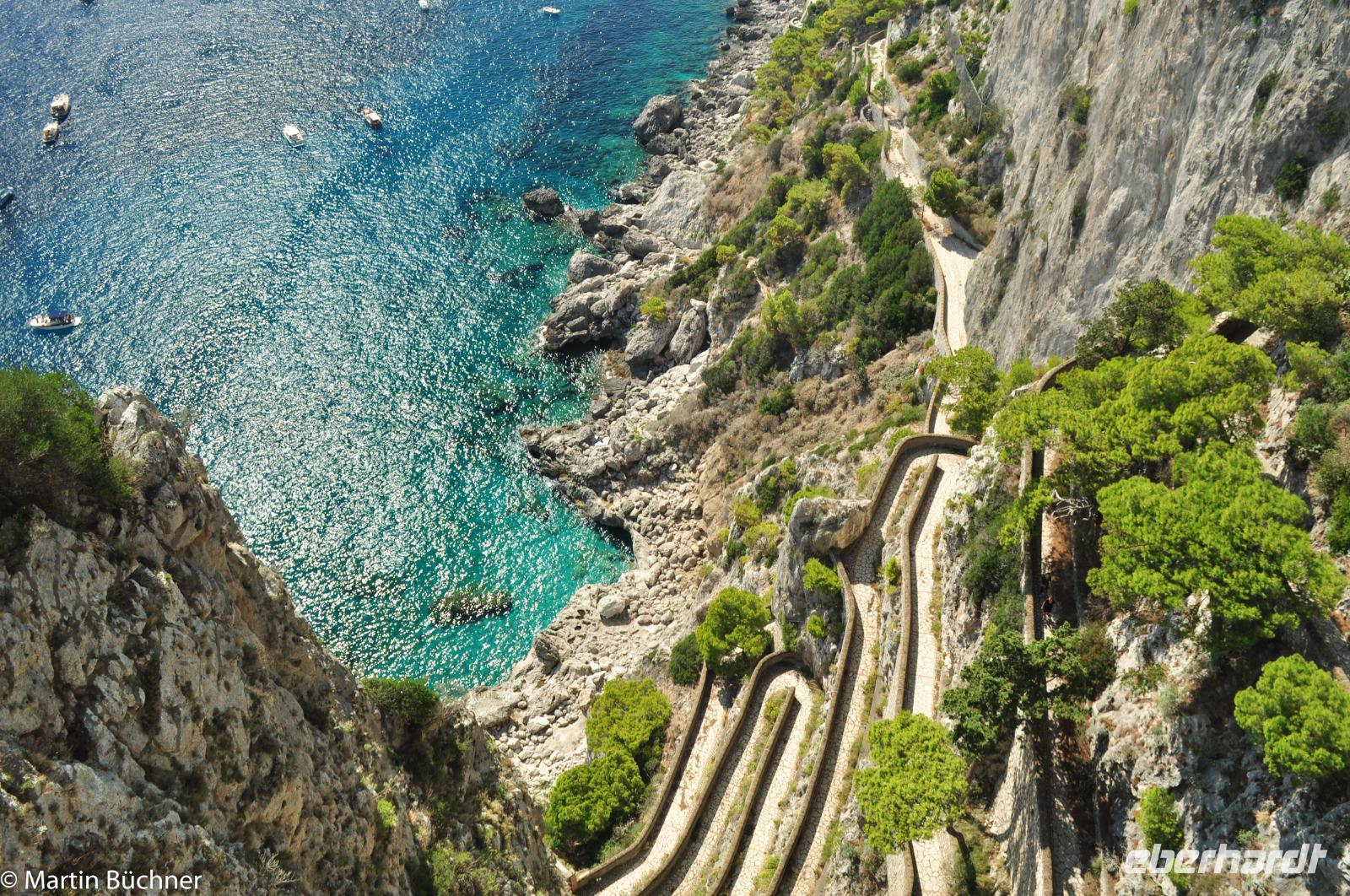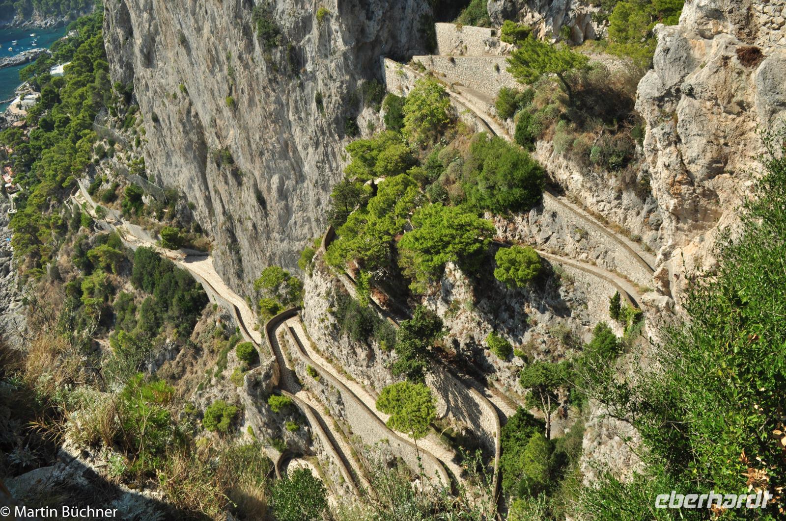 Von hier führt die berühmte Serpentinstraße Via Krupp hinunter ans Meer. Bedauerlicherweise ist dieser beliebte Flanierweg aufgrund von Steinschlaggefahr bis auf Weiteres gesperrt.