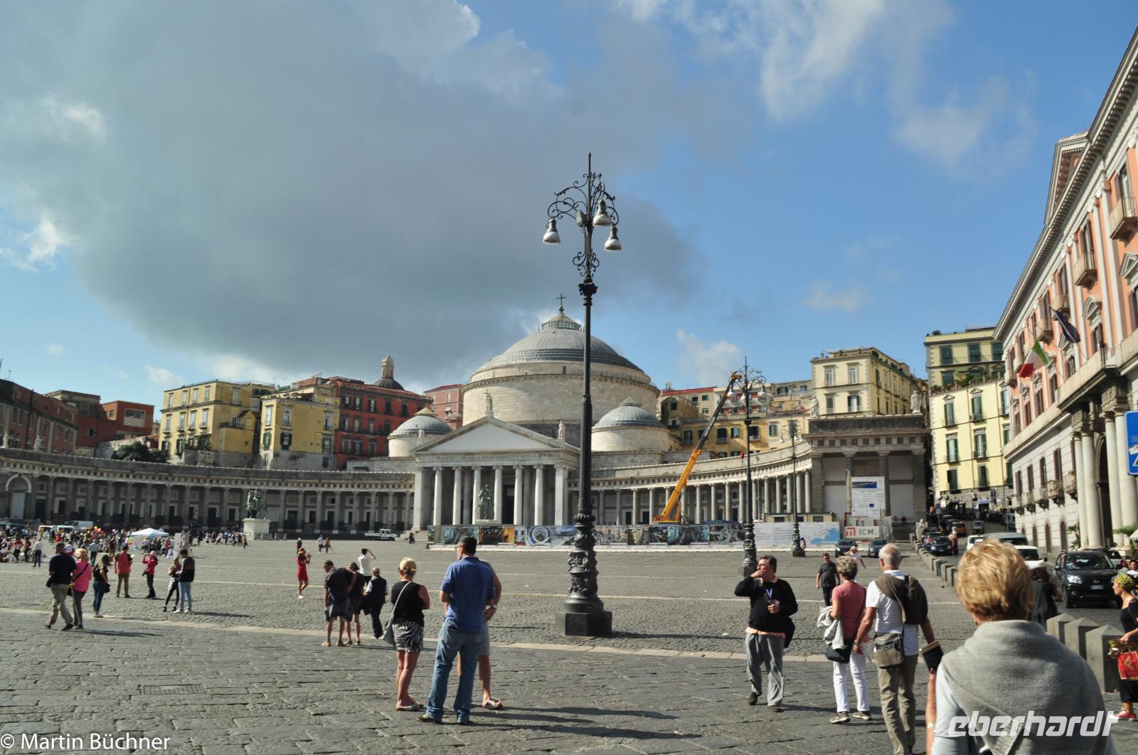 Unmittelbar hinter der Burg schließt sich die Piazza del Plebiscito an. Ein gewaltiger Platz umrandet vom Königspalast Palazzo Reale und dem Palazzo Salerno, sowie der Basilaca San Francesco di Paola mit ihren Kolonaden, eine dem antiken Pantheon in Rom nachempfundener Kirchenbau aus dem frühen 19. Jahrhundert.