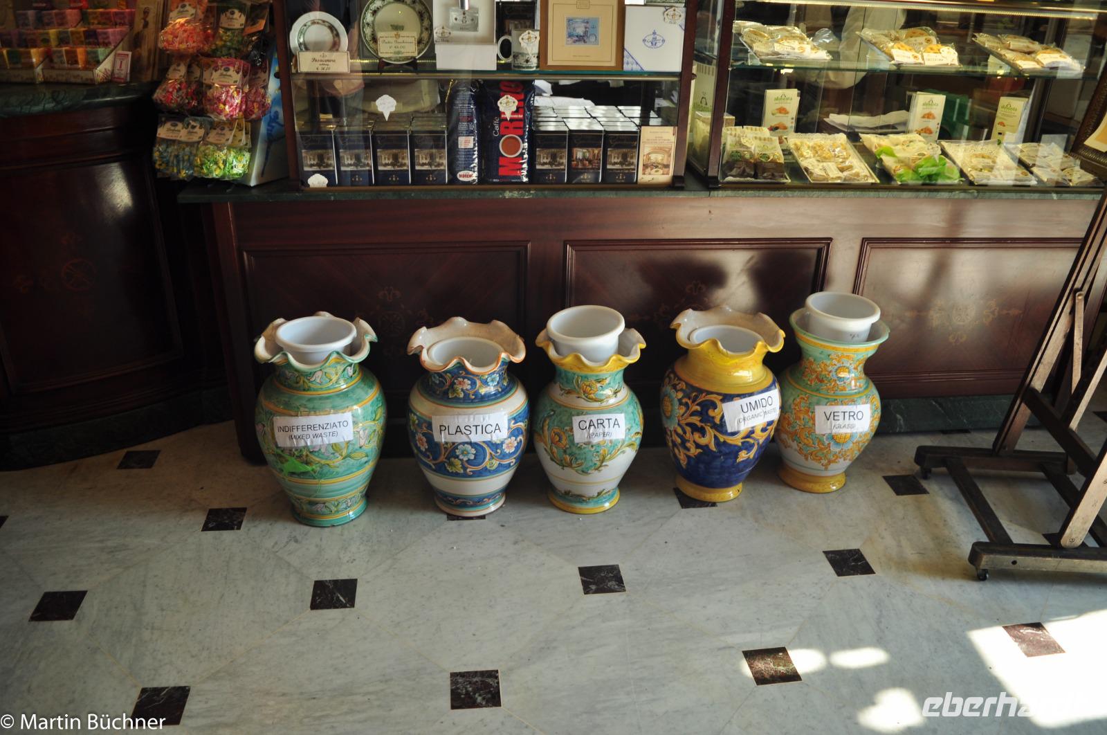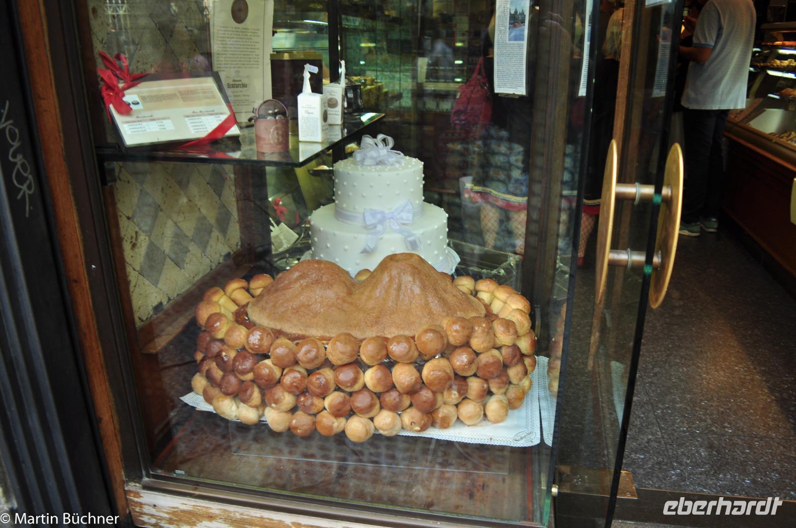 Wir erfahren, dass Pizza unbedingt Finger Food ist. Eine traditionelle Pizza wird geviertelt, dann jeweils in der Mitte zusammengeklappt und mit der Hand gegessen. Unser Guide Giovanni sagt, selbst die nobelsten Touristen der Welt werden ihm als waschechten Bewohner der Region niemals dazu bringen eine Pizza mit Besteck zu essen, er isst eine Pizza so, wie er es von seiner Oma gelernt hat! ??
