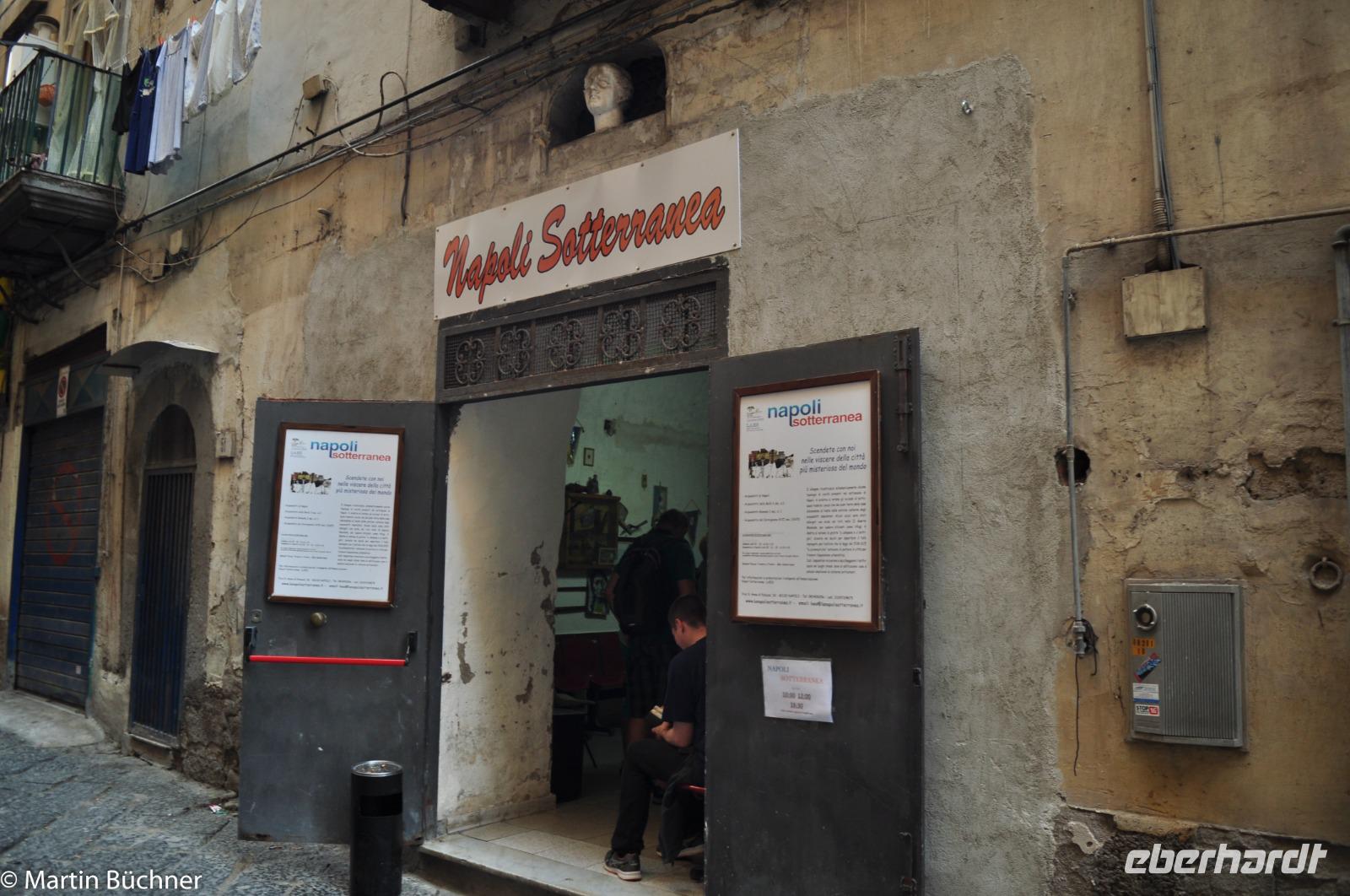 Durch typische schmale Straßen geht es zum Eingang in die antike neapolitanische Unterwelt.
