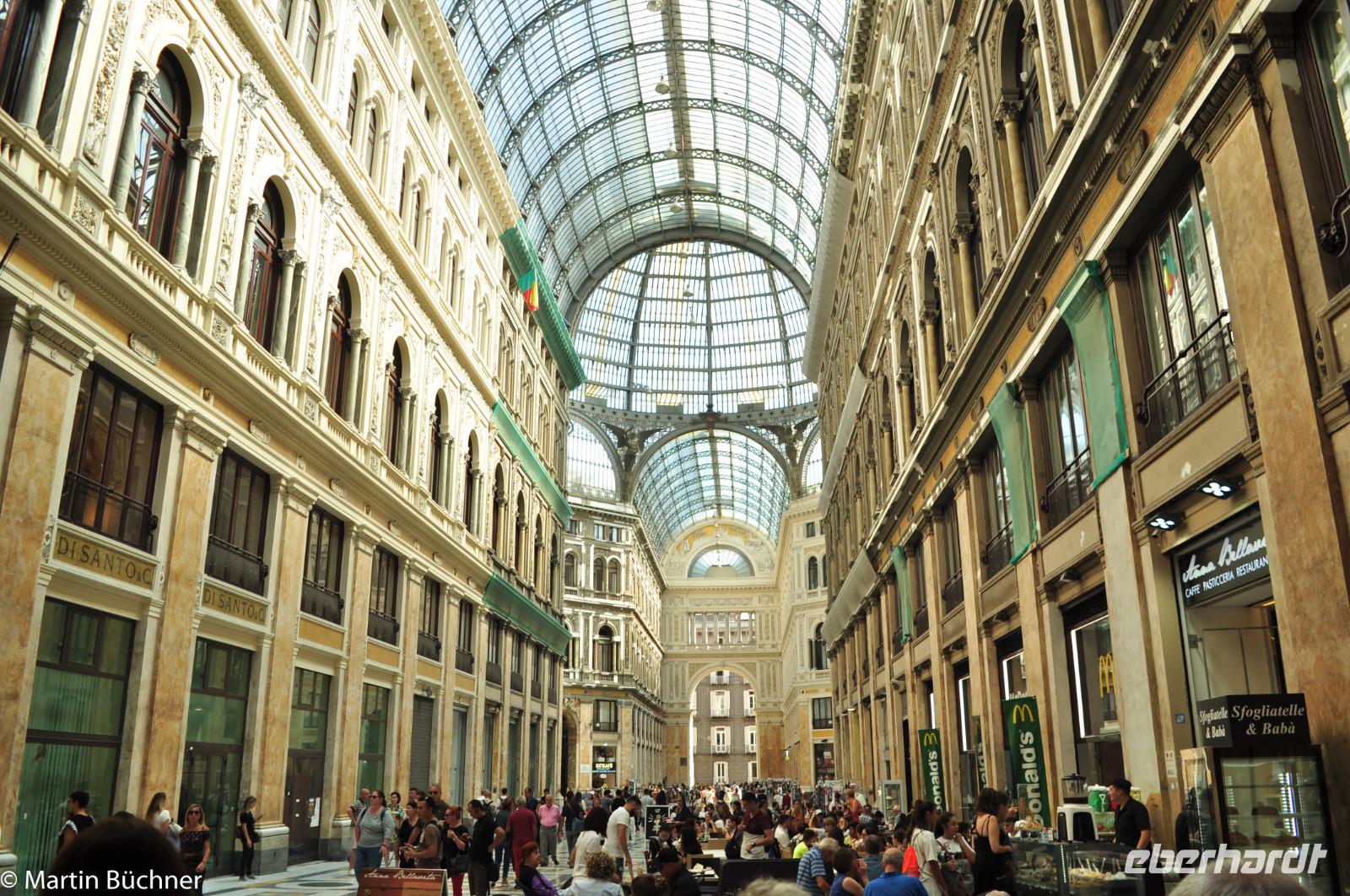 Ein völliger Kontrast zur Unterwelt bildet die lichtdurchflutete Galleria Umberto I., sie wurde 1884 erbaut. Dieser edle Konsumtempel befindet sich direkt gegenüber der Oper und unweit des königlichen Palastes.