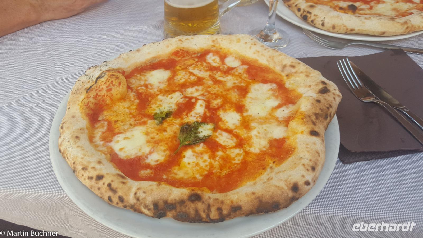 Anschließend stärken wir uns bei einer wirklich echten guten Pizza Margherita. Diese Pizza wurde hier in Neapel zu ehren der Königin erfunden, traditionell belegt mit den Farben des Königs bzw. Italien grün = Basilikum, weiß = Mozzarella und rot = Tomate.