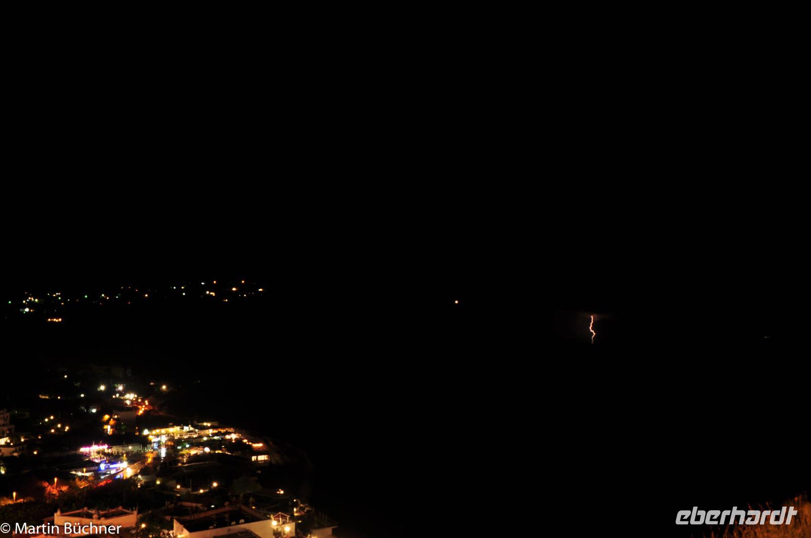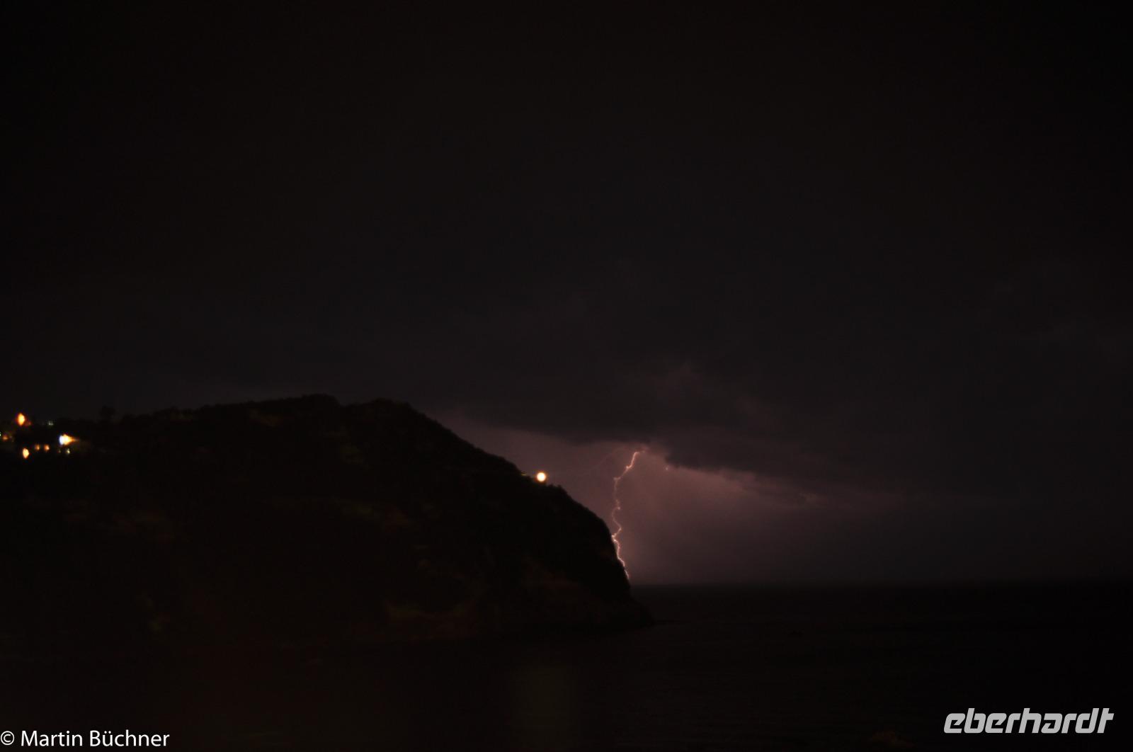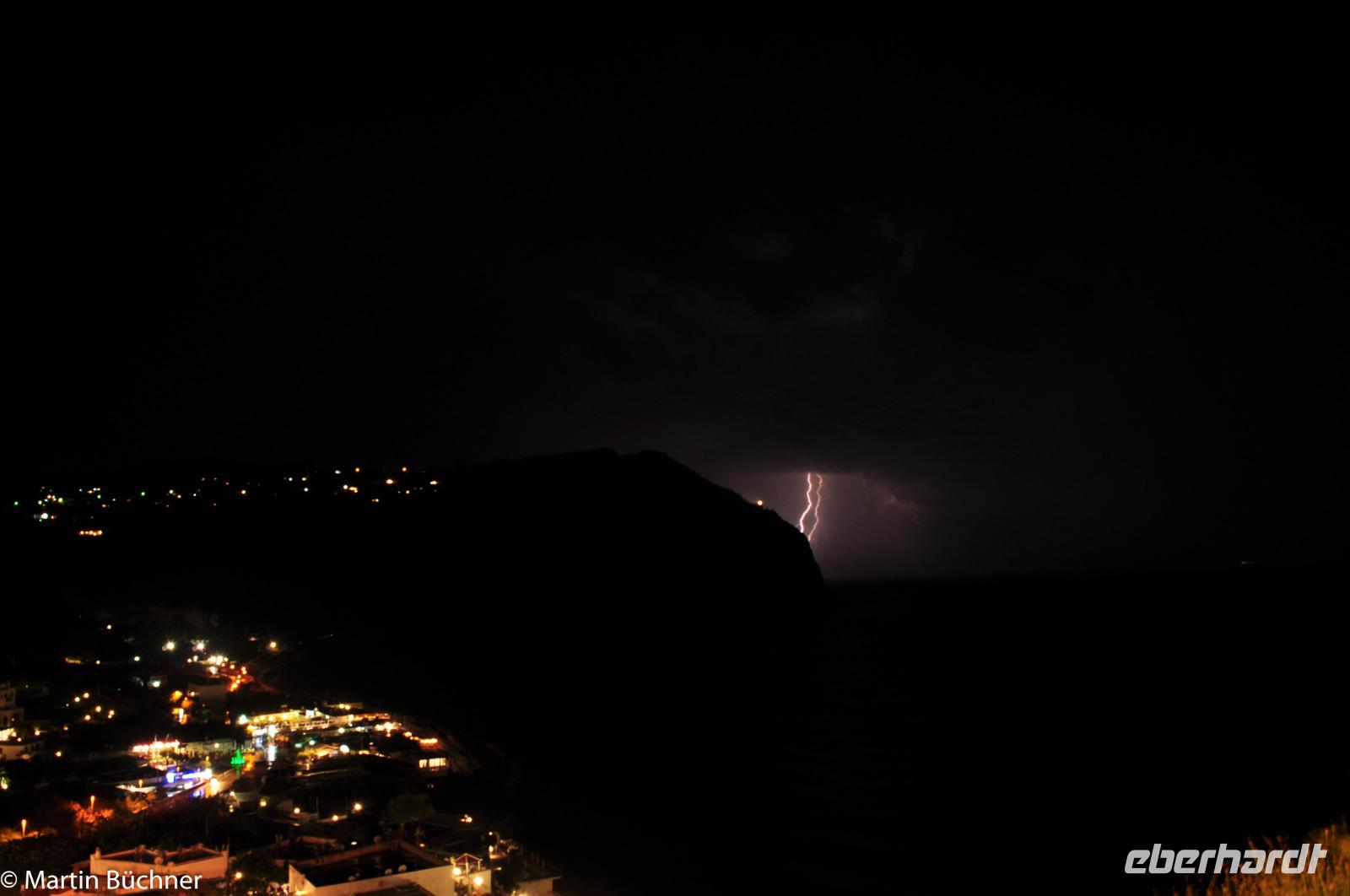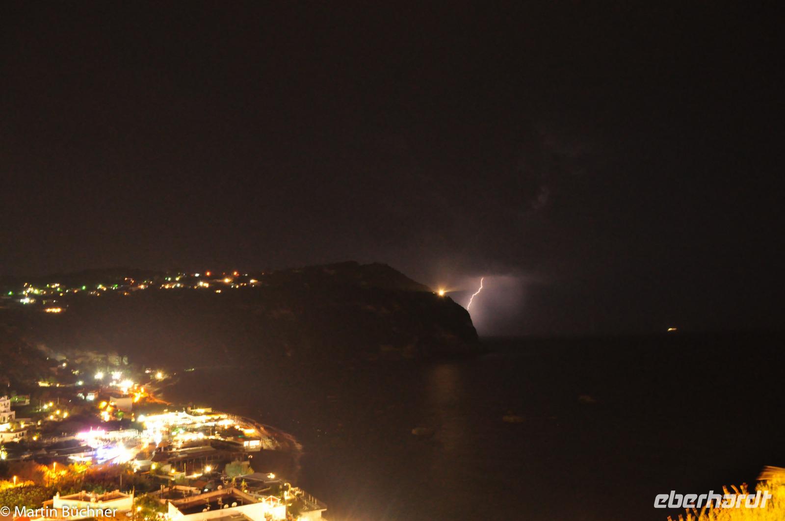 Am Abend brauen sich starke Gewitter zusammen, typisch für Süditalien im Oktober bringen sie in der Regel ersehnte meist ergiebige Niederschläge und sind oft verbunden mit spektakulären Blitzen. Uns wird ein fantastisches Lichtspektakel geboten.