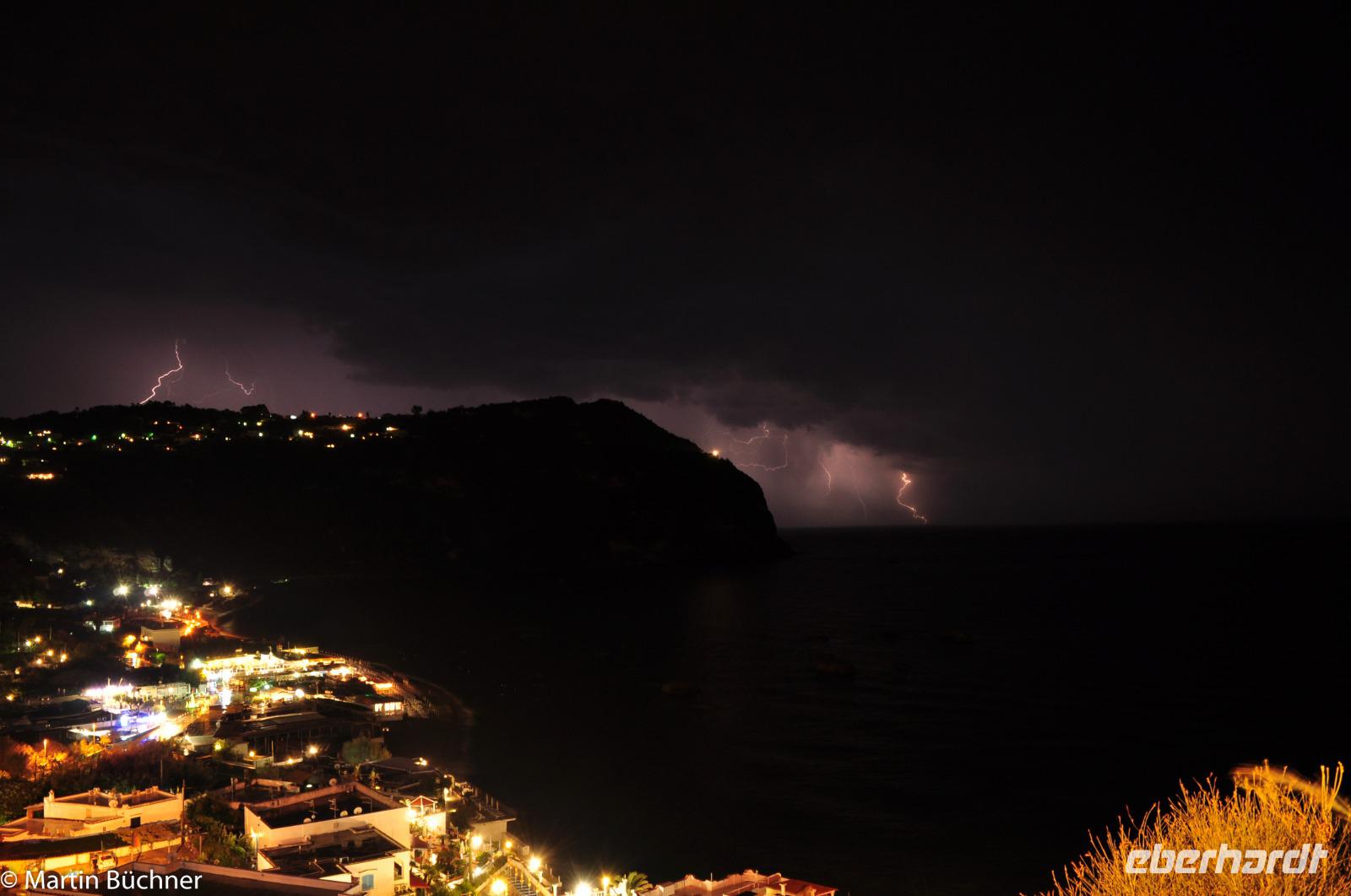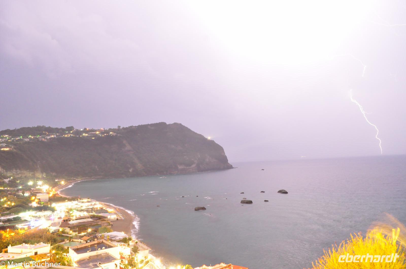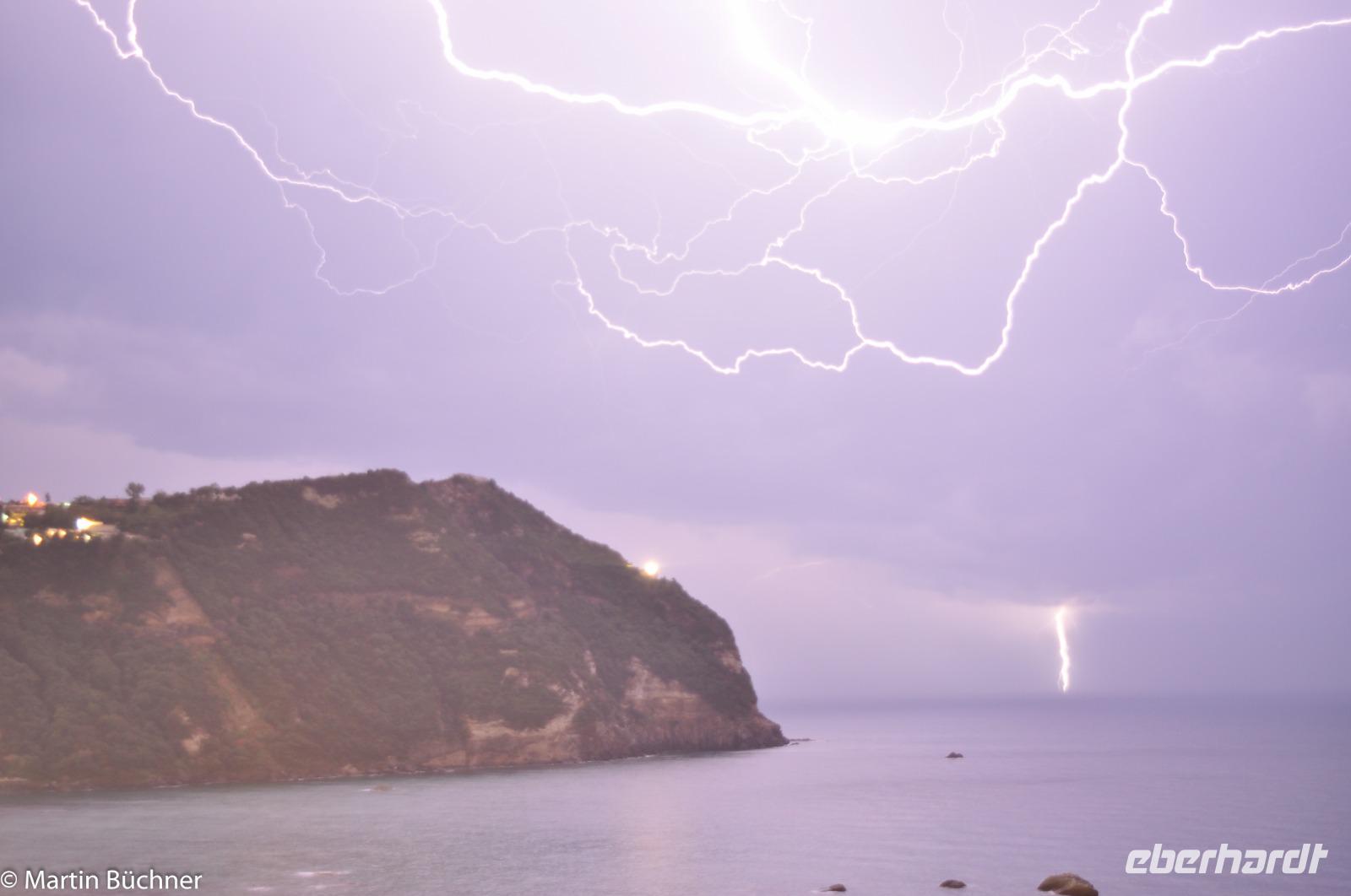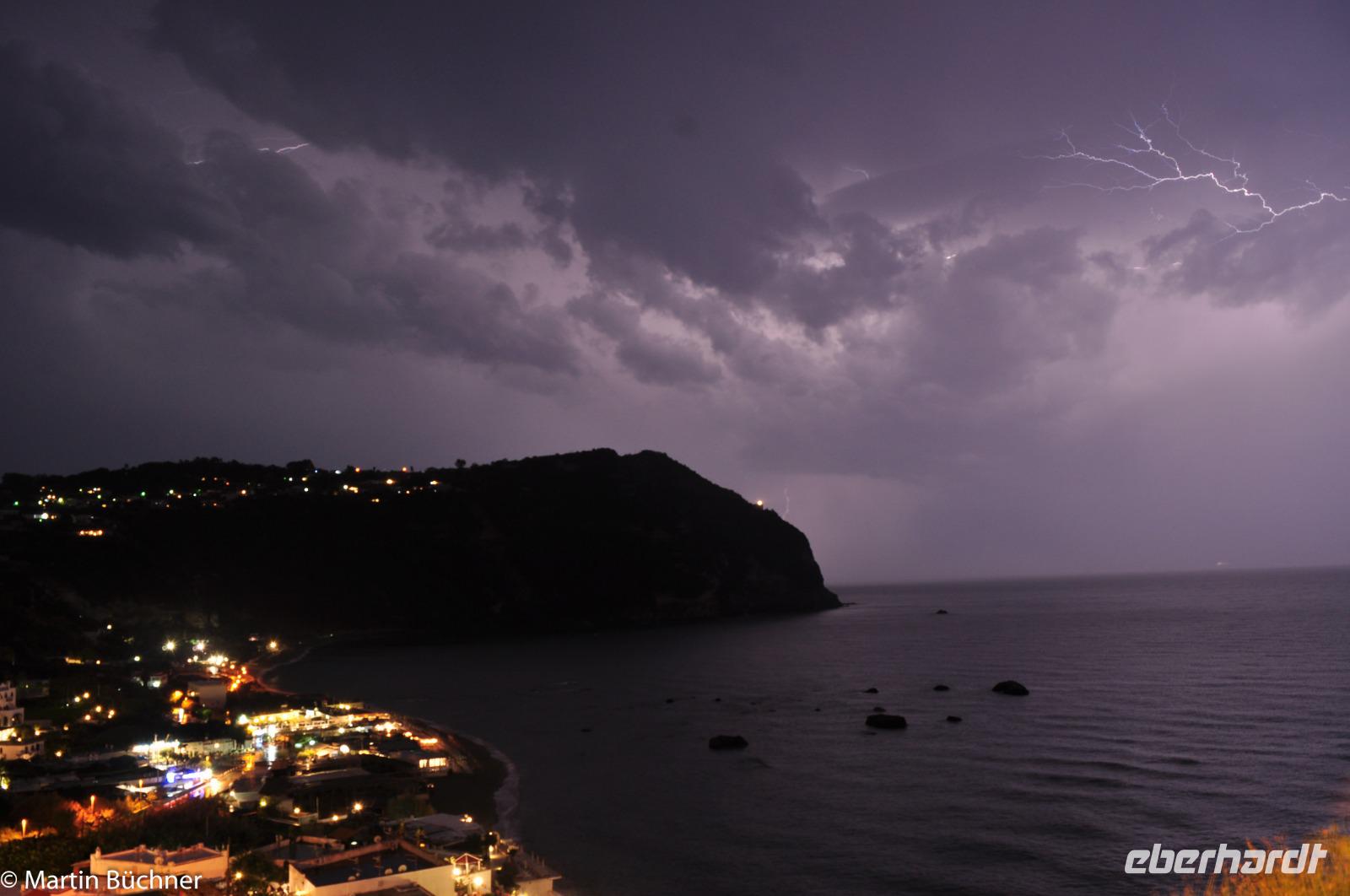 Am Abend brauen sich starke Gewitter zusammen, typisch für Süditalien im Oktober bringen sie in der Regel ersehnte meist ergiebige Niederschläge und sind oft verbunden mit spektakulären Blitzen. Uns wird ein fantastisches Lichtspektakel geboten.