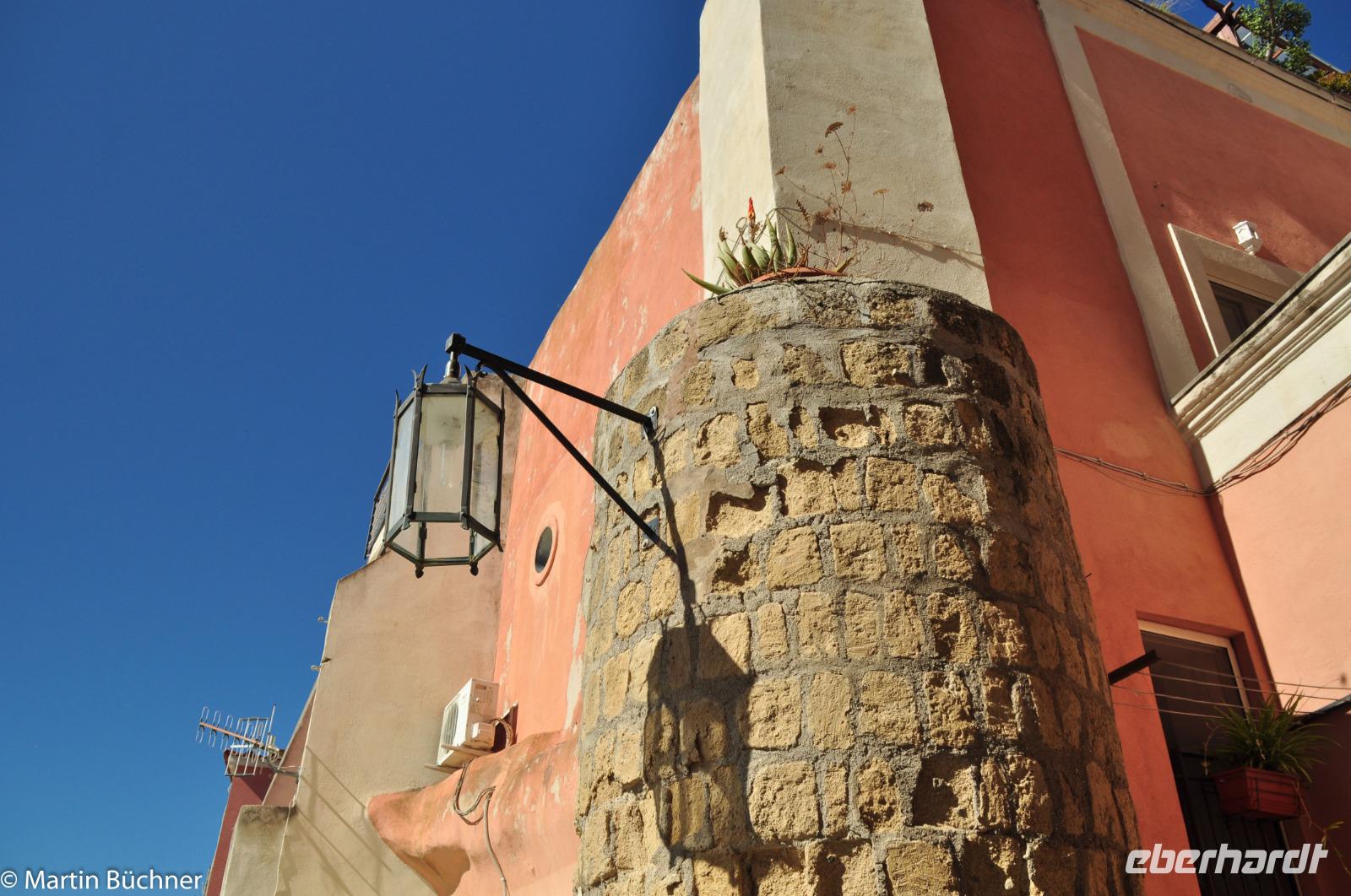 Auch in Forio steht noch so ein imposanter Signalturm als Zeitzeuge bereit. Unterhalb des Turms erwartet uns ein typisches Inselmittagessen.