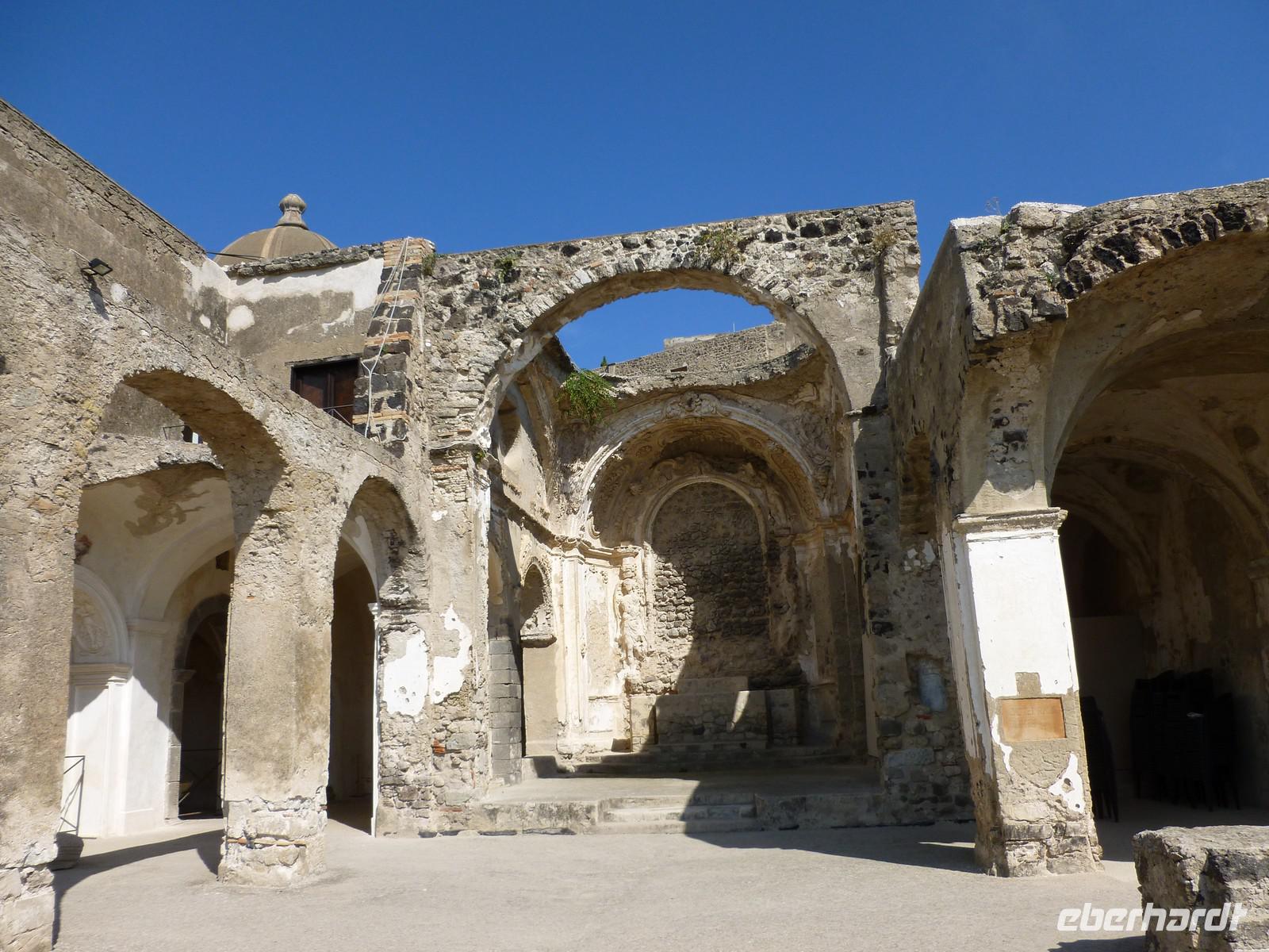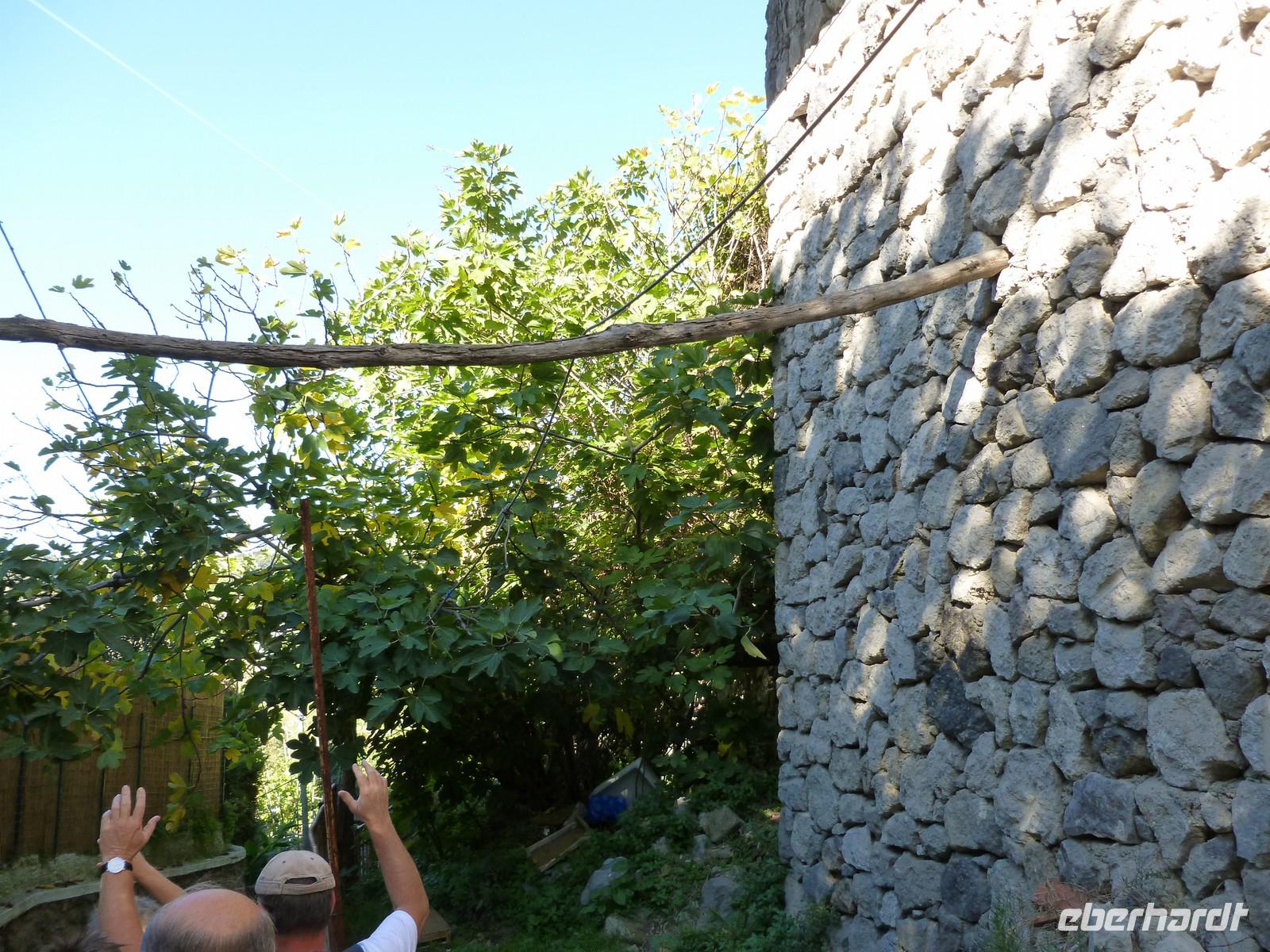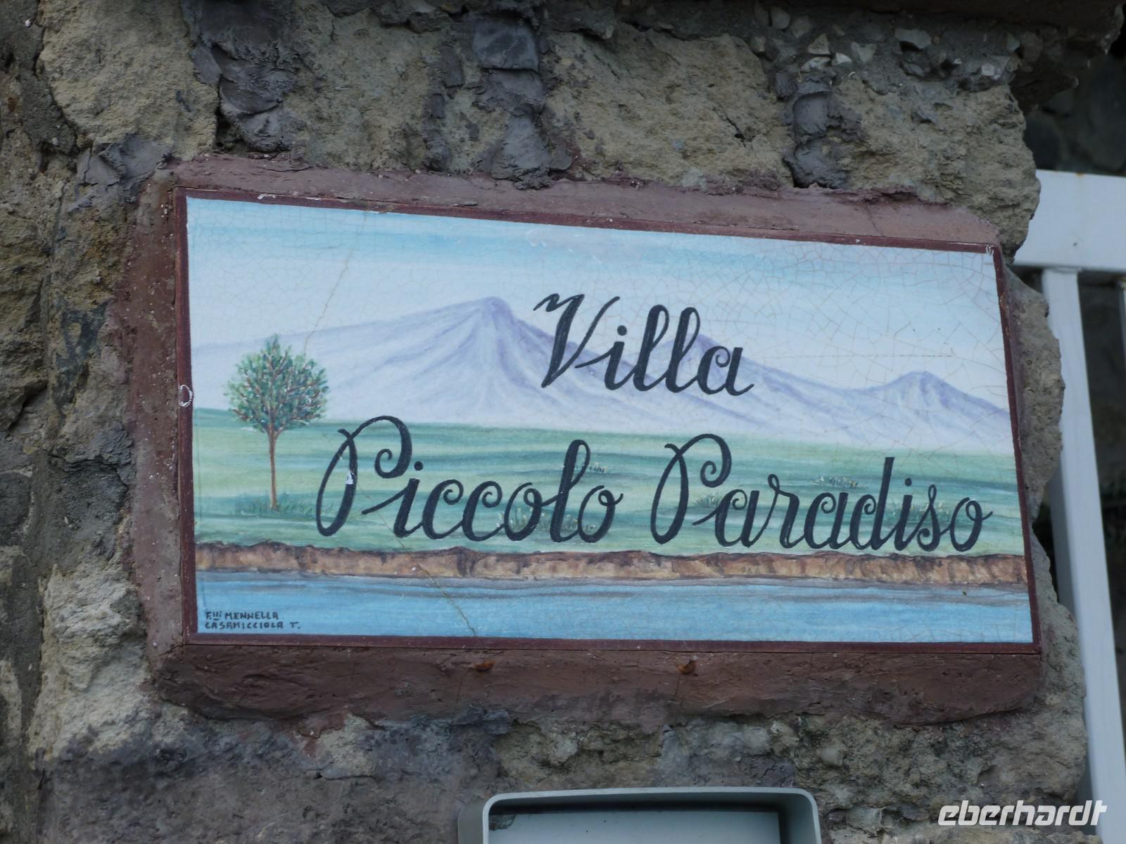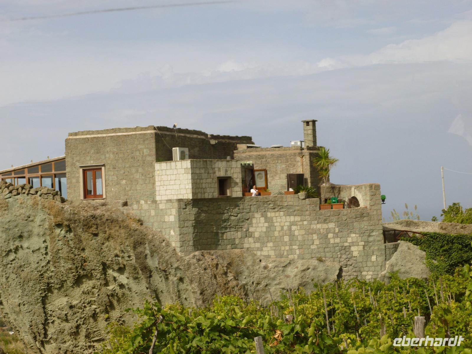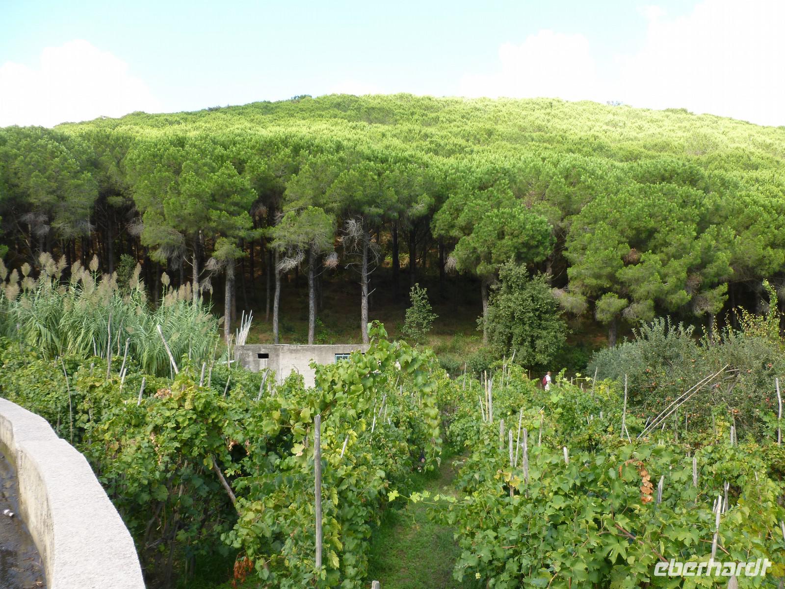 Zum Startpunkt unserer heutigen Wein-Wanderung brachte uns der Bus nach Vatoliere. Hier begann der Weg vorbei an Gärten, Feldern und Weinbergen. An der Wallfahrtskirche Santa Maria al Monte Vergine legten wir einen ersten kleinen (nahrhaften) Stopp ein. Die Sonne meinte es auch heute wieder sehr gut mit uns. Der weitere Weg hatte es in sich: ein steiler Aufstieg brachte uns hoch zur Scarrupata - die interessante Steilküste mit tollen Ausblicken. Auf dem Weg durch die teilweise wildromantischen Weinberge der Piano Liguori genossen wir den Blick auf Capri. Zur Mittagsrast auf der herrlichen Sonnenterrasse von Maria wurden wir bereits von Giro erwartet. Er führt jetzt die Gastwirtschaft seiner Eltern Maria und Guiseppe. Hier wurden wir mit vielen herzhaften „Schmeckerchen" und Wein aus eigener Herstellung überrascht. Unsere weitere Wanderung durch die Weinberge bot uns noch einige Aussichten auf den gesamten Golf von Neapel und die Sorrentinische Küste. Livio lockte uns in eine halbfertige Garage, die ein Weinbauer mit Wein-Utensilien ausstattete. Weil der Bauer selbst nicht da war, erklärte uns Livio Wissenswertes zum Weinanbau und -herstellung. Der Wein zum Probieren aber war reichlich vorhanden. Auf dem Rückweg nach Campagnano kamen wir dem Castello Aragonese am nächsten. Schon beachtlich, dass auf dieser kleinen Felsinsel so viele Leute gewohnt haben sollten. Aber dazu später Näheres. Wir verabschiedeten uns dankend von Livio und fuhren mit dem Bus zum Hotel zurück. Auch heute blieb noch Zeit für Strand und Pool.
