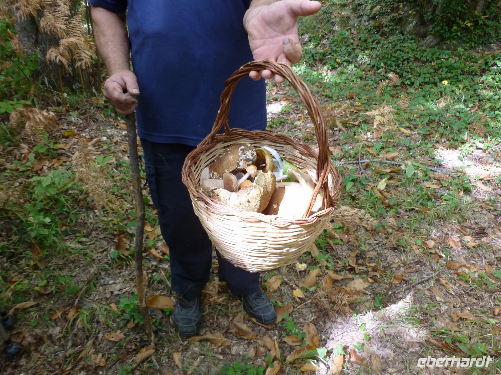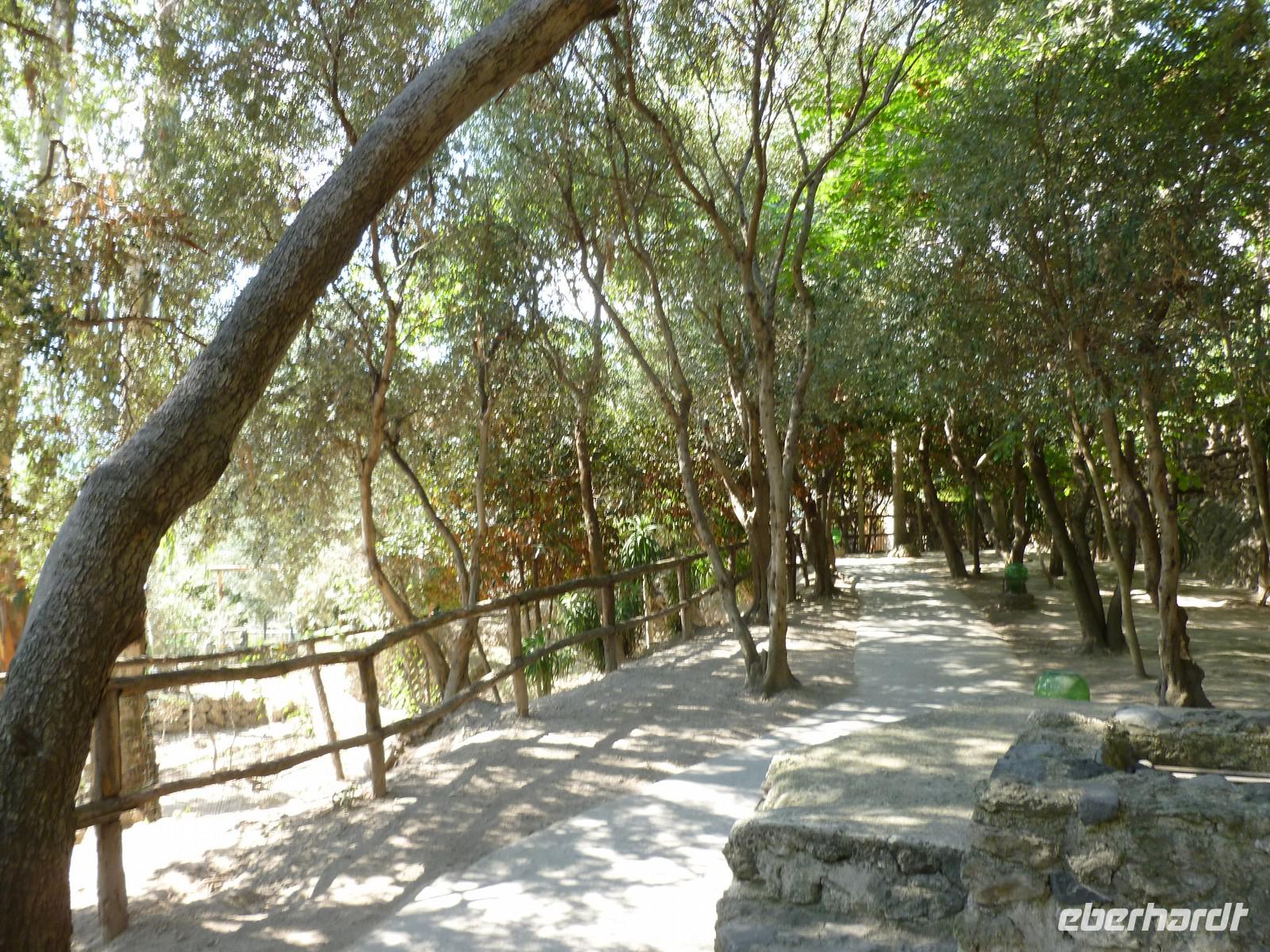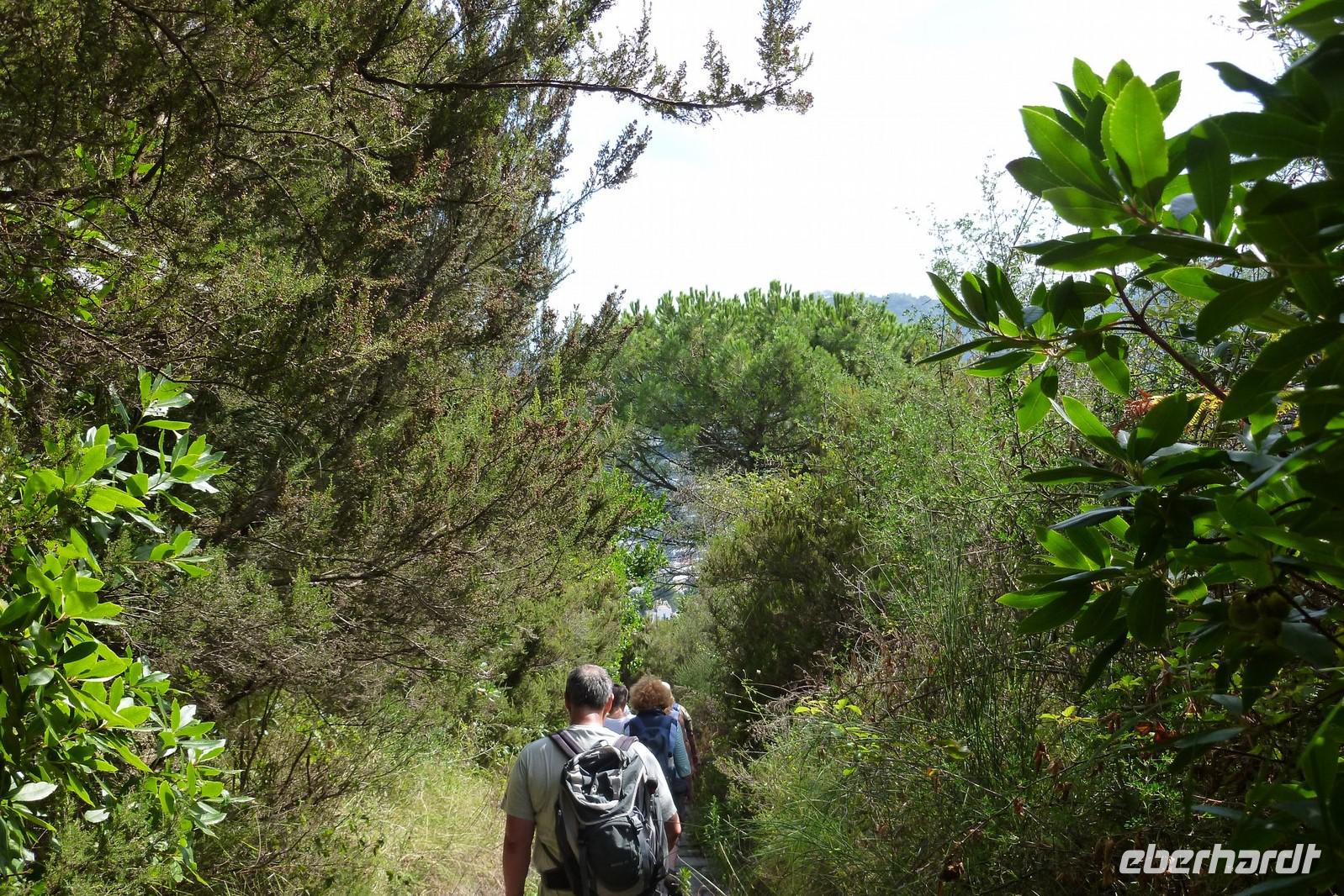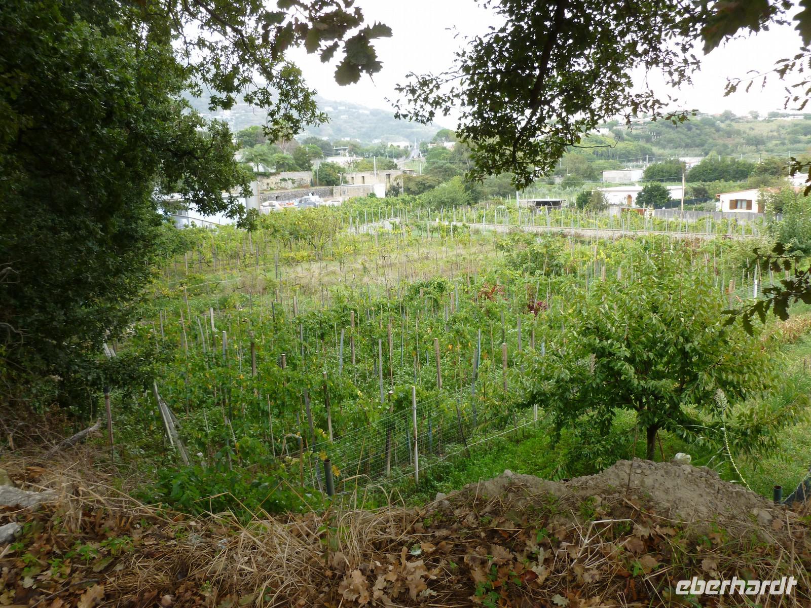 Dann liefen wir zum Wald-Restaurant „La Quieta" zur Mittagseinkehr. Ein großer Tisch war bereits für uns eingedeckt und der Wein stand bereit. Das typisch italienische Picknick bestand aus frischem Salat, Bruschetta und Spagetti. Das Meer glitzerte von fern in der Sonne. Auf unserem weiteren Weg kamen wir an Piano San Paolo vorbei. Auch zur Radarstation fand Livio ein paar Worte. Nun wanderten wir durch Wälder mit Maronen und Farnen bis zur Bucetoquelle, eine der wenigen Trinkwasserquellen auf Ischia. Immer wieder bekamen wir tolle Ausblicke auf das Meer, auf Procida und den Golf von Neapel. Da wir schnelle Füße hatten (ent-)führte uns Livio noch zum Wald der Maddalena, einem zauberhaften Pinienwald, und zum Fondo d' Oglio. Auch hier zeigte er uns Fumarolen. Am Ortseingang von Casamicciola wurden wir vom Bus abgeholt und zurück ins Hotel gefahren.