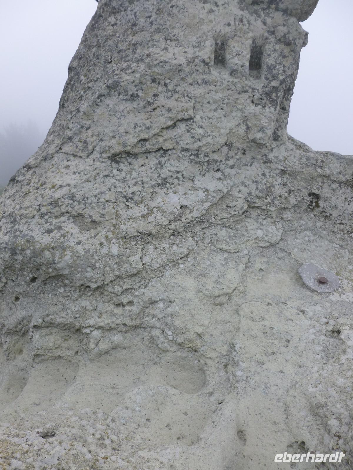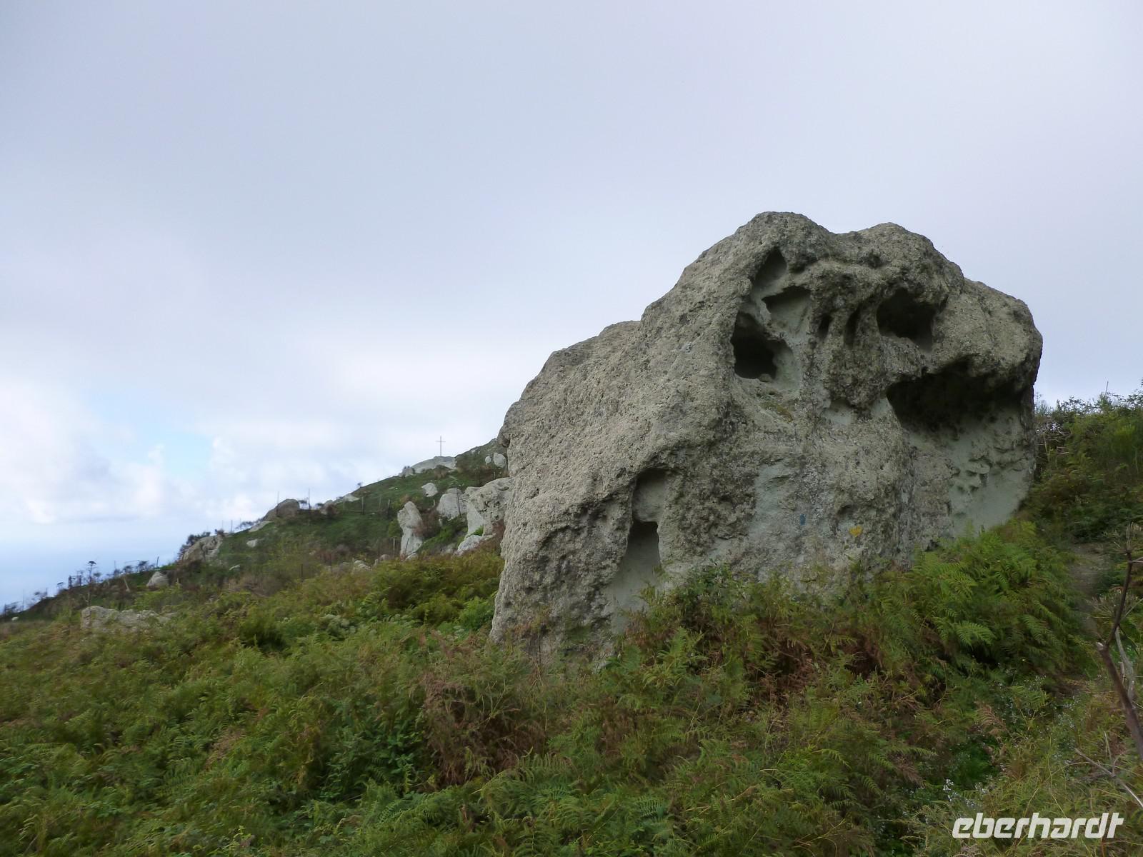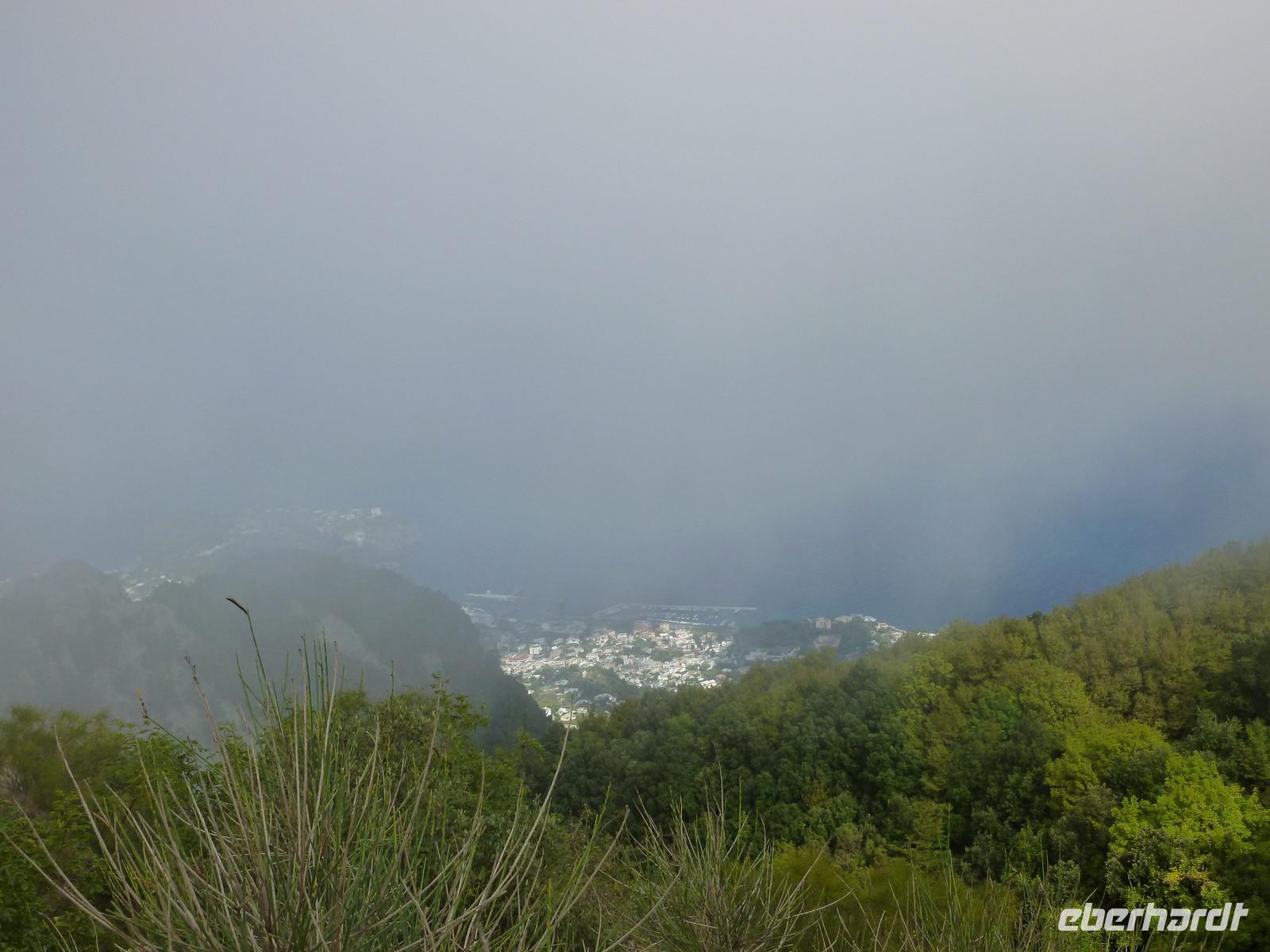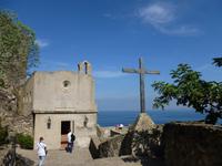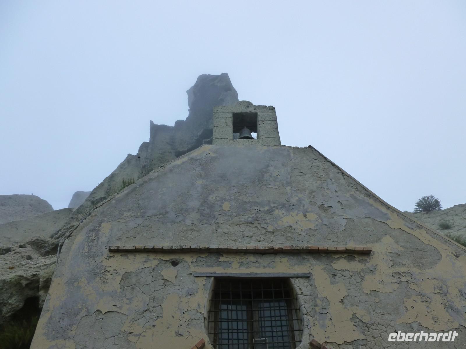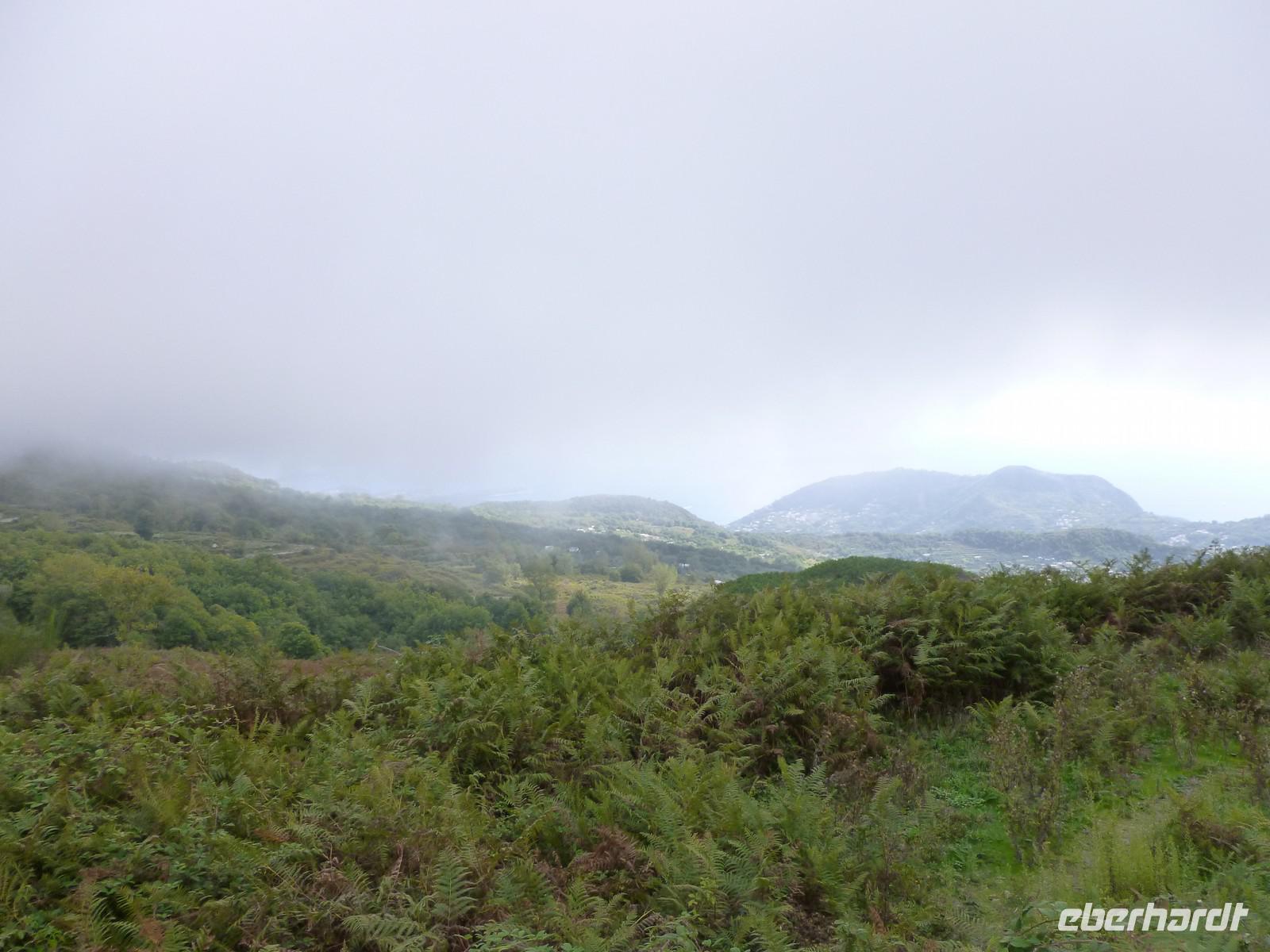 Livio holte uns am Hotel ab und zeigte seine Wanderschuhe, die man heute bräuchte, denn es geht auf den höchsten Berg der Insel. Wir fuhren mit dem Bus eine sehr steile Straße hinauf nach Kalimera, einem kleinen Örtchen oberhalb des Örtchens Serrara, und liefen den weiterhin steilen Weg hinan. Anfangs war es noch klar, aber je höher wir kamen umso mehr waren wir in den Wolken. An der Eremitenkapelle machten wir Halt und einige wagten den Aufstieg zum Gipfel des Monte Epomeo, heute eben leider ohne Aussicht...