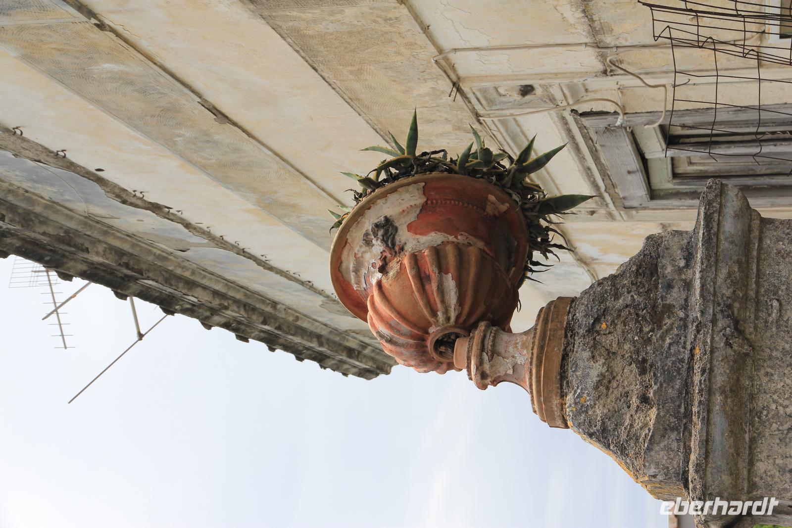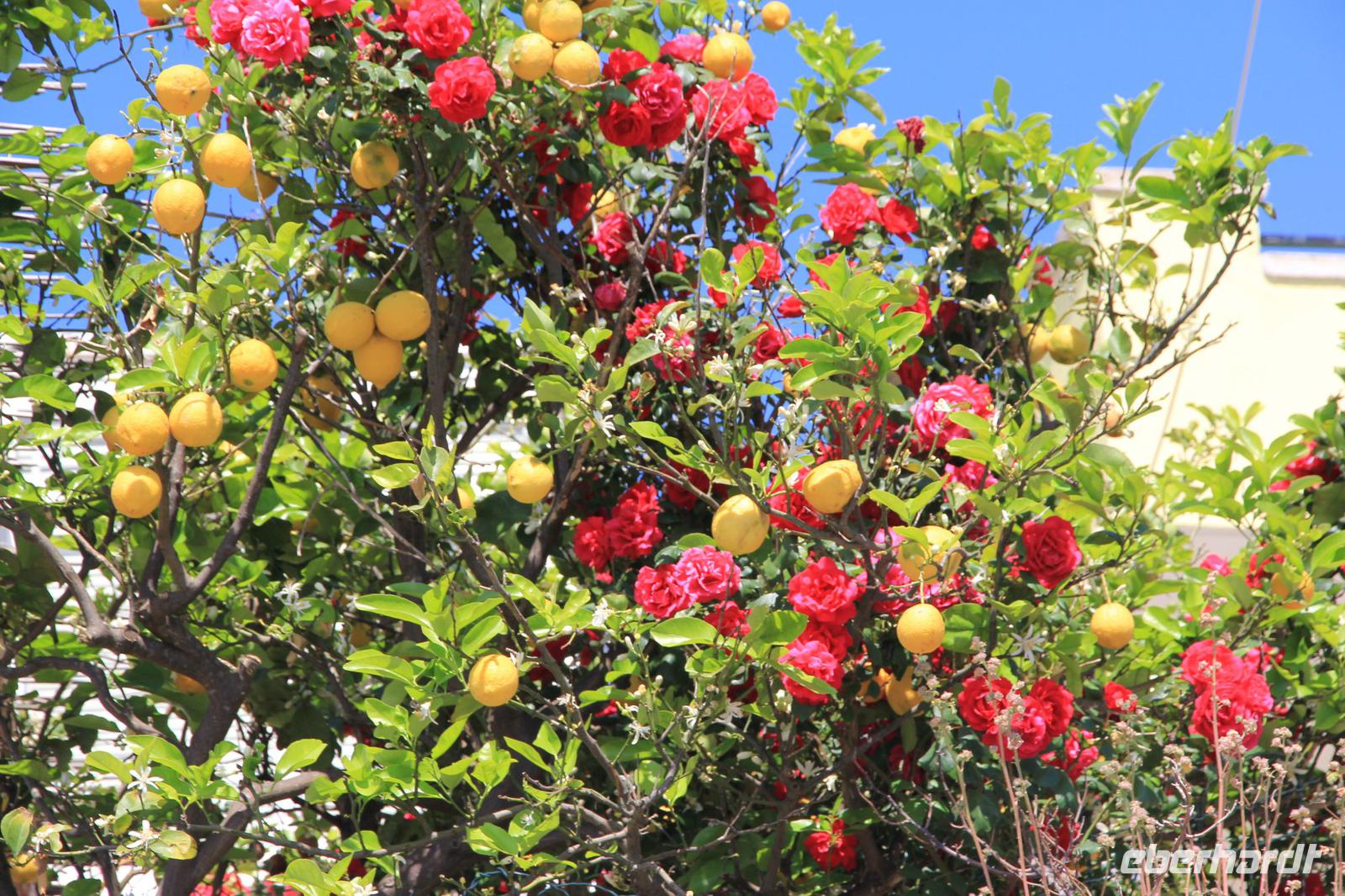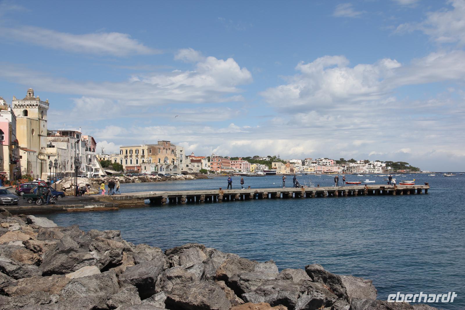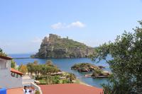 Wir haben es mit dem Aufstehen heute nicht eilig, frühstücken bis kurz vor 10 Uhr - und dann geht es los: mit dem Bus im Uhrzeigersinn um die Insel. An Forio vorbei gelangen wir zum ersten Fotostopp in Lacco Ameno, dann weiter über Casamicciola und Ischia Porto nach Ischia Ponte. In der Nähe des Torre del Guevara, in dem Michelangelo gewohnt und von da aus seine Geliebte Vittoria Colonna besuchthaben soll, blicken wir auf das Castello d"Ischia Aragonese, das Wahrzeichen der Insel. Dann kurven wir über Barano nach Fontana, dem höchstgelegenen Dorf der Insel. Unterwegs besuchen wir das groteske Casa Museo, eine bis vor wenigen Jahren bewohnte Felsenwohnung, die jetzt von dem Eigentümer als Privatmuseum betrieben wird. In Fontana machen wir Pause, genießen wir Cappuccino, Limoncello oder kaufen wir Obst. Weit unter uns liegen der Strand von Maronti und die Halbinsel Sant Angelo. Unser Reiseführer Alberto entpuppt sich als Cubanito, der viele Jahre in der ehemaligen DDR arbeitete und heute noch Sächsisch spricht. Wir fahren die Serpentinen hinab und machen einen Spaziergang an den Spiaggio S. Angelo mit seinen mondänen Restaurants, Boutiquen und Hotels. Sant Angelo wird jetzt von den Ischitanern Sant Angela genannt: nach seiner berühmtesten Besucherin Angela Merkel.