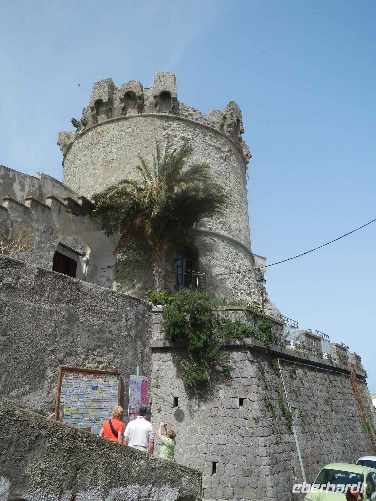 Am heutigen Vormittag erkunden wir mit unserer ortskundigen Reiseleiterin Heike die Schönheiten der Insel per Bus im Uhrzeigersinn. Sie erklärt, dass die Insel 46 qm groß ist und auf der Insel circa 60000 Einwohnern leben. Die Hauptstraße der Insel ist 31 km lang. In Lacco Ameno endecken wir ein ausgehöhltes Tuffsteingebilde, was sich aus Wasser und Wind gebildet hat. Dieser FUNGO (Pilz) ist zum Wahrzeichen des Ortes geworden. Unsere Schnuppertour führt uns weiter über Casamicciola und Ischia Porto nach Ischia Ponte. In der Nähe des Torre del Guevara, in dem Michelangelo gewohnt und von da aus seine Geliebte Vittoria Colonna besucht haben soll, blicken wir auf das Castello d'Ischia Aragonese, das Wahrzeichen der Insel. Dann kurven wir über Barano nach Fontana, dem höchstgelegenen Dorf der Insel. Wieder erleben wir einen tollen Ausblick über die im Meer gelagerten Inselgruppen und genießen bei ein Glas frisch gepressten Orangensaft oder Cappuccino das Leben, das Wetter und die einzigartige Landschaft. Nach einem leckeren Mittagsimbiss in einer Taverne in Forio führt uns Heike nun durch die Blütenpracht des Botanischen Garten La Mortella. Dieser wurde von dem englischen Komponisten Sir William Walton und seiner Frau Susana mit viel Liebe zum Detail angelegt. Im tropischen Treibhaus bestaunen wir die Vielfalt der Orchideen, Brumelien und Rankpflanzen und genießen den wunderschönen Blick auf die Bucht von Forio.