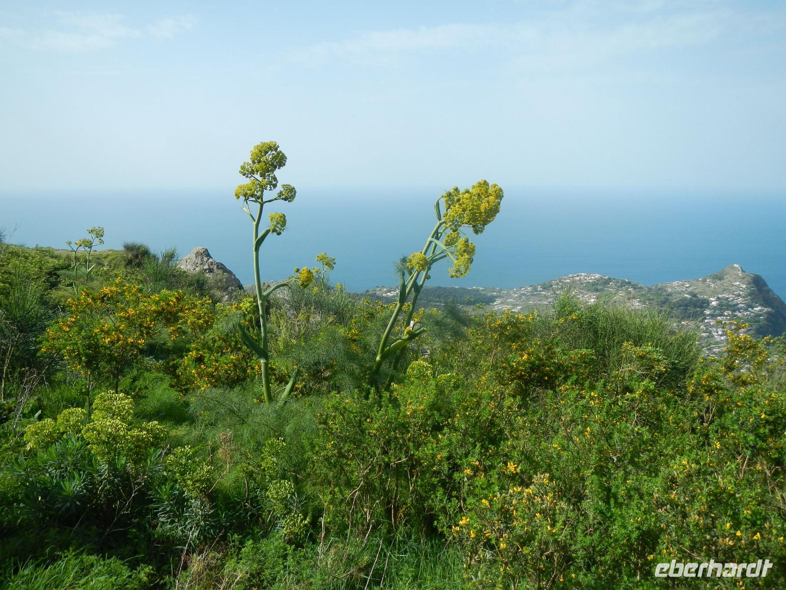 Heute steht die Besteigung des 789 Meter hohen Gipfels Monte Epomeo auf dem Etappenziel. Mit einem Kleinbus werden wir bis in das Bergdorf Kalimera gefahren. Von da aus wandern wir steil aufwärts durch eine Tuffsteinklamm bis zum Panoramaweg. Wir bestaunen die uns umgebende Blütenpracht und halten immer wieder inne um in die Fern zu blicken. Stolz und gut gelaunt klettern wir bis zum Gipfel - auf dem es recht stürmisch zugeht. Doch die Neugierde auf den 360 Grad Rundblick ist größer als die Bedenken vom Wind weggetragen zu werden. Wir sehen die sorrentinische Halbinsel, Capri und den Vesuv. Durch den Falanga- Wald steigen wir hinab und sind froh als wir einen passenden windgeschützten Picknickplatz erreichen. Die vor der Wanderung in die Rucksäcke verteilten neapolitanischen Köstlichkeiten werden nun aufgetafelt und von allen mit viel Appetit verzehrt. Der von einem Weinbauern abgefüllte Wein hat es in sich ... mit viel Spass übersetzt uns singend Livio die alten italienische Schlagerschnulzen. Nach diesem „Felicità" begeben wir uns weiter auf unserem langen Abstieg bis zur Buceto-Quelle. In Cretalo nimmt uns unser Kleinbus wieder auf und bringt uns zurück zum Hotel. Hier erholen wir uns weiter bei Sonnenschein im Thermalwasserbecken der Hotelanlage.