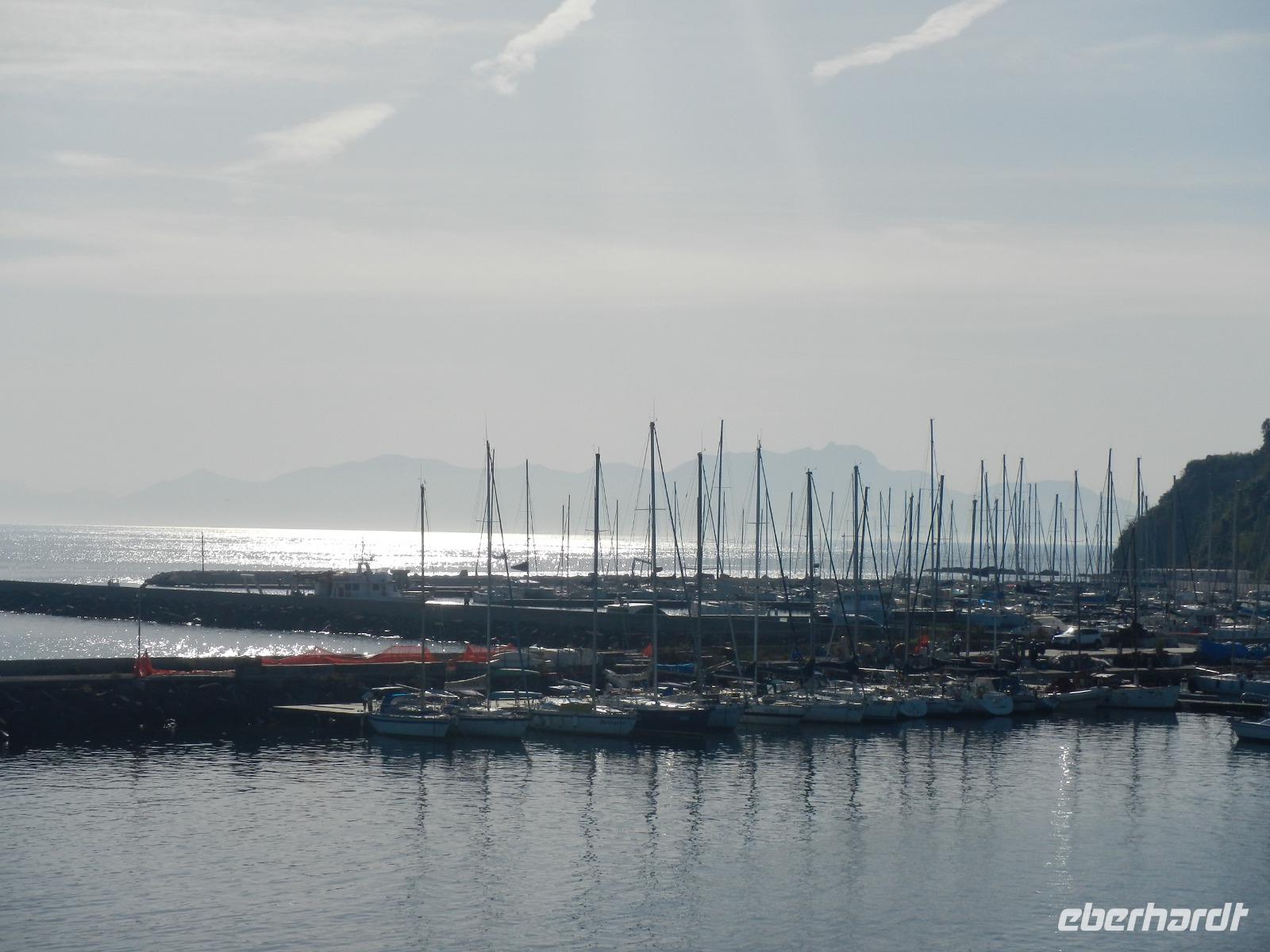 Ein Großteil der Gäste lernt sich bereits am Flughafen Tegel kennen, alle weiteren Wanderfreunde aus Leipzig, Dresden und Stuttgart stießen im Laufe des Tages zur Gruppe dazu. Die Fluganreise verlief reibungslos. Während der Überfahrt mit der Fähre von Pozzuoli nach Ischia Porto riss auch die Wolkendecke auf und wir fühlten uns sofort in den frühlingshaften warmen Gefilden wohl.