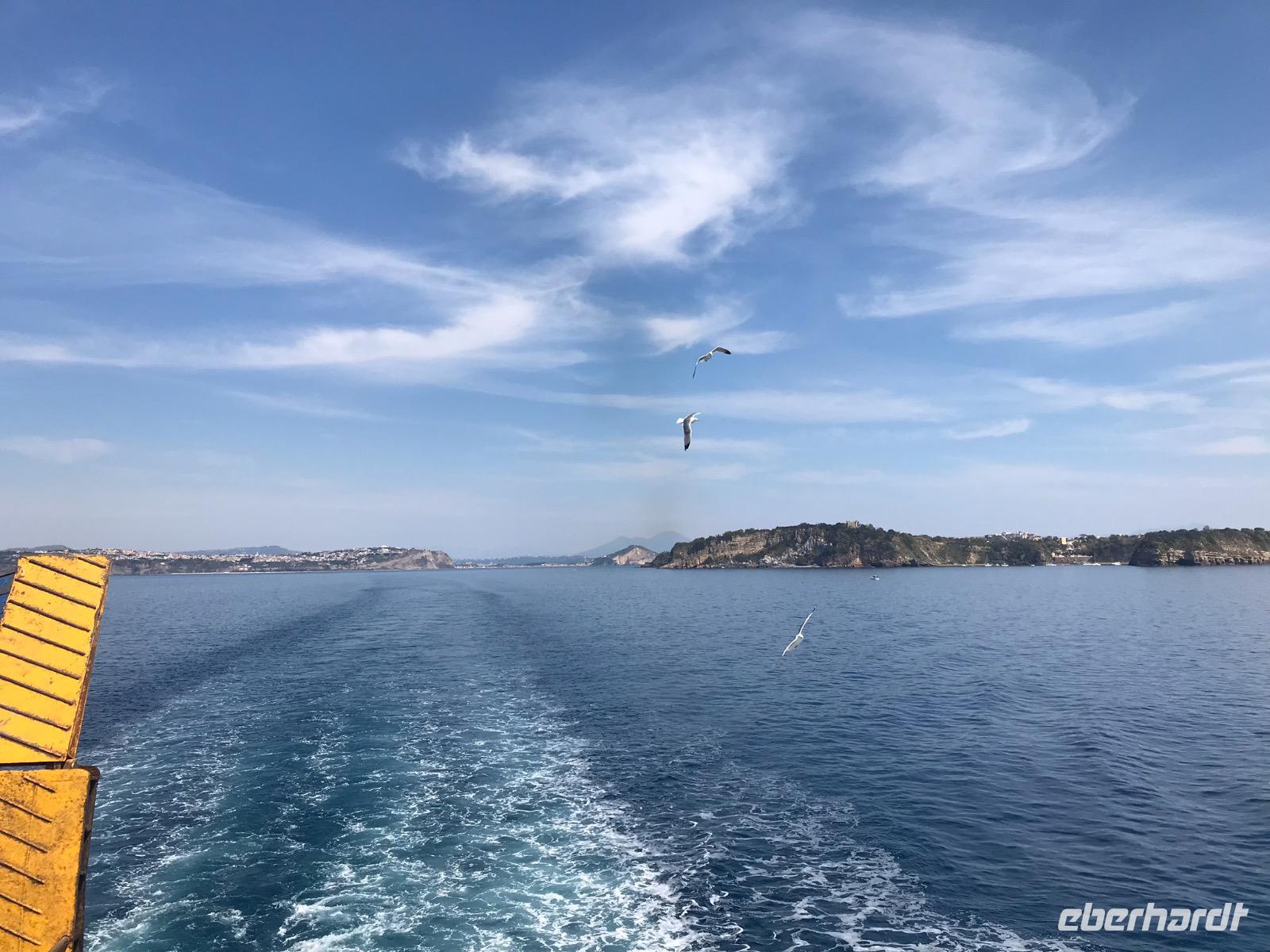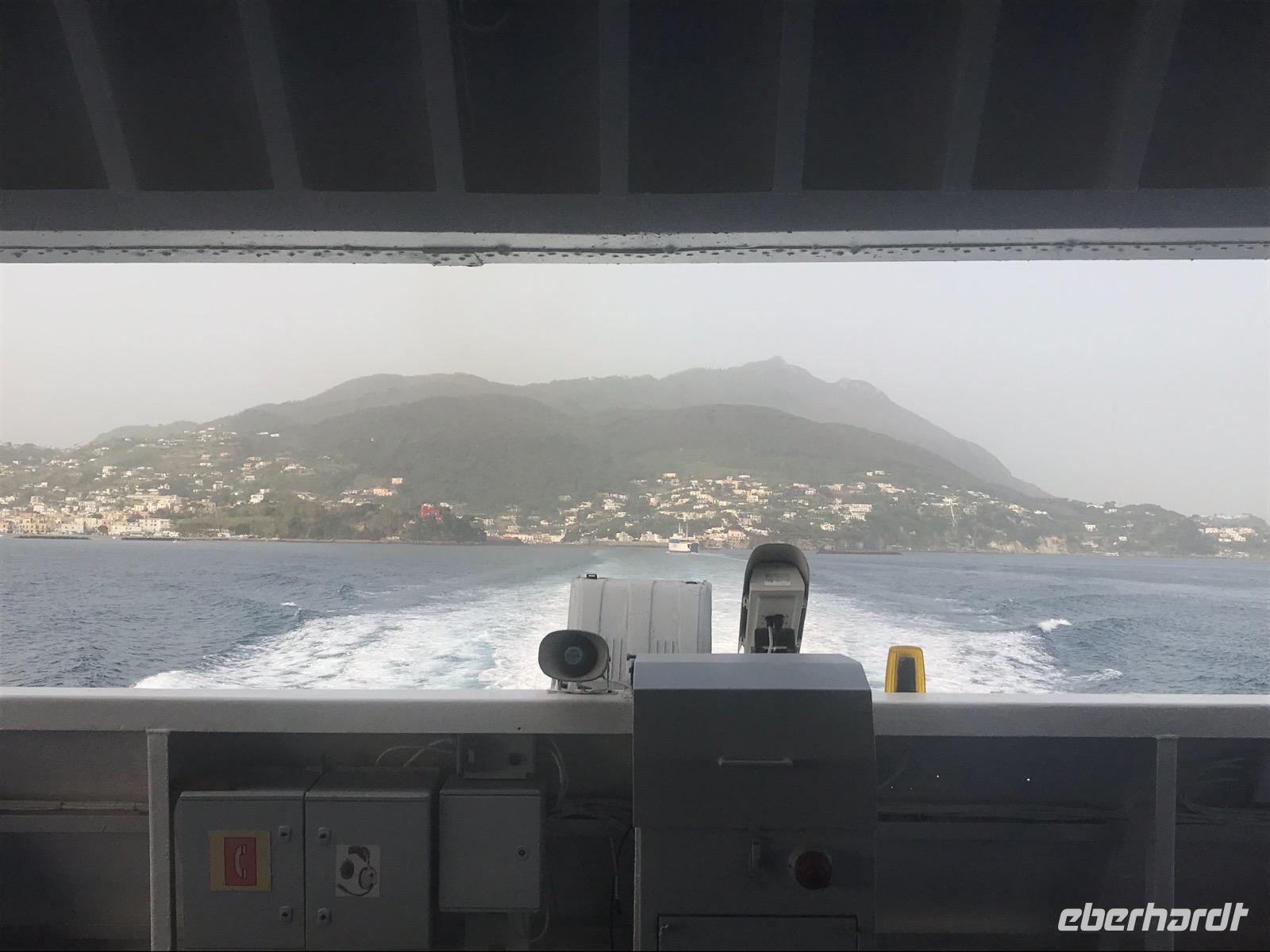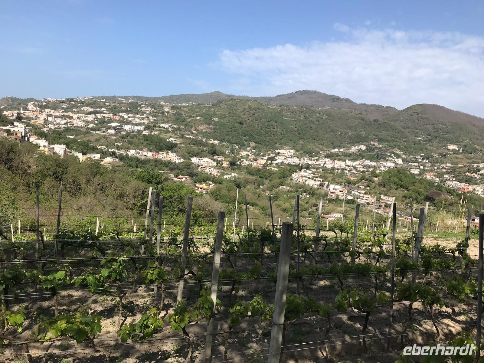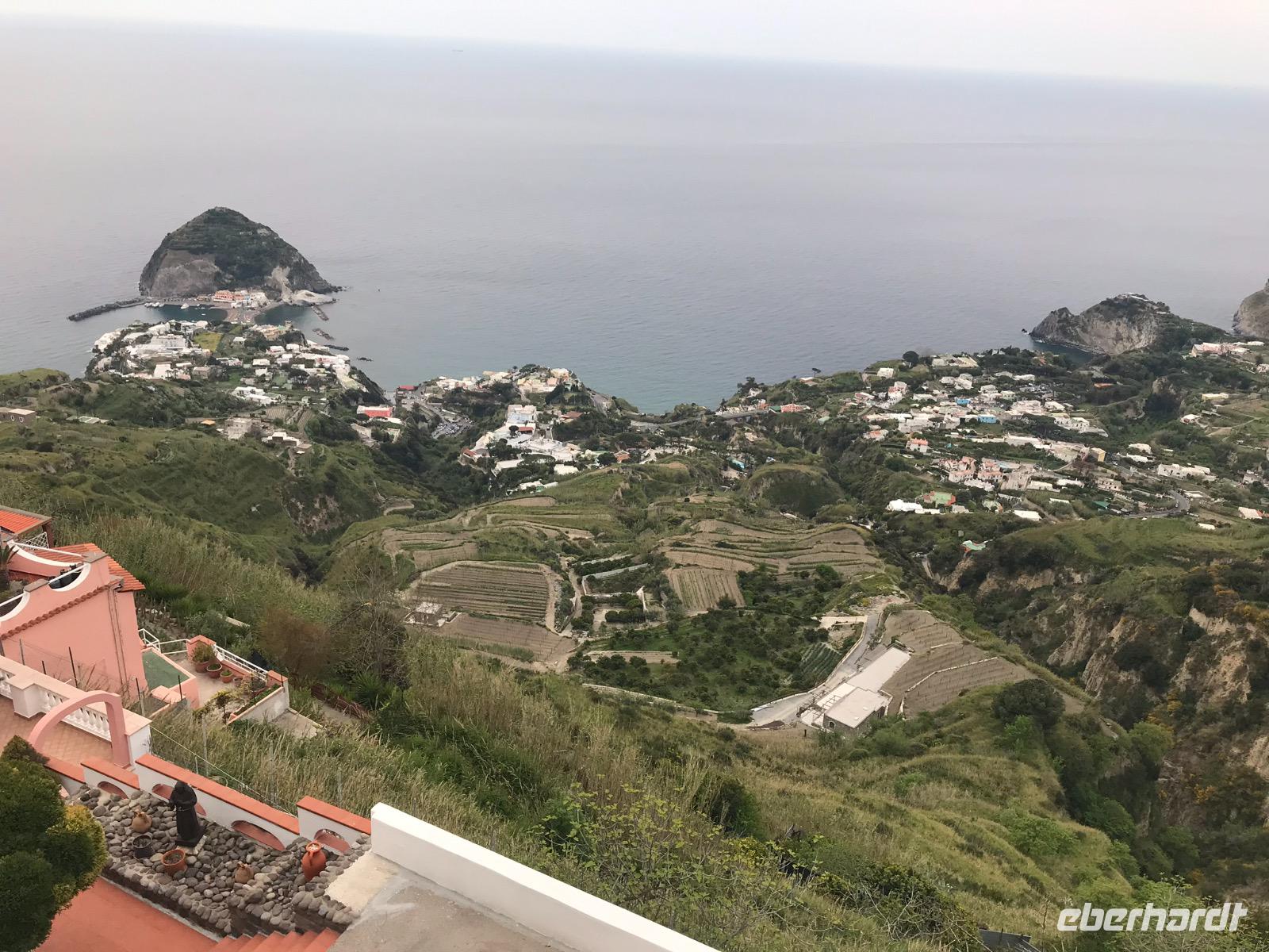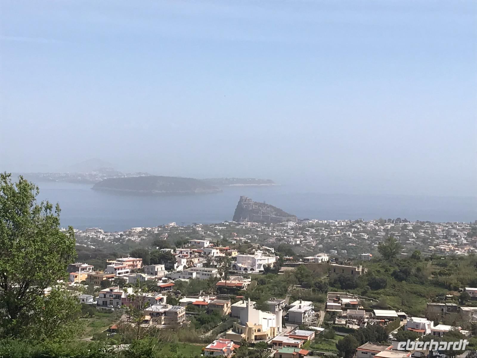 Es sollte die letzte Wanderung werden und ein klein wenig Wehmut war schon mit am Start. Wir waren eine eingeschworene Truppe/Gruppe geworden und es wurde manchmal mehr gelacht als gewandert - Erholung pur. Es wurde eine gemütliche Wanderung durch die Weinberge, vorbei an Kratern (der letzte Ausbruch auf der Insel geht aufs Jahr 1301 zurück), Zitronen- und Orangenbäumen mit traumhaften Ausblicken und einer sehr schönen Rast bei Maria, wo wir von der Terrasse aus Delfine im Meer beobachten konnten. Die Sicht erlaubte es uns heute gut, die umliegenden Inseln im Thyrrhenischen Meer, wie Capri und unser morgiges Ziel Procida zu bewundern. Auch der Vesuv und die Südausläufer der Amalfiküste waren zu sehen. Den Abschluss des Tages bildete der Besuch bei einem Weinbauern, der uns einen kleinen Einblick in seine Arbeit gab und uns natürlich von seinem Wein kosten lies. Auch der Limoncello mundete...