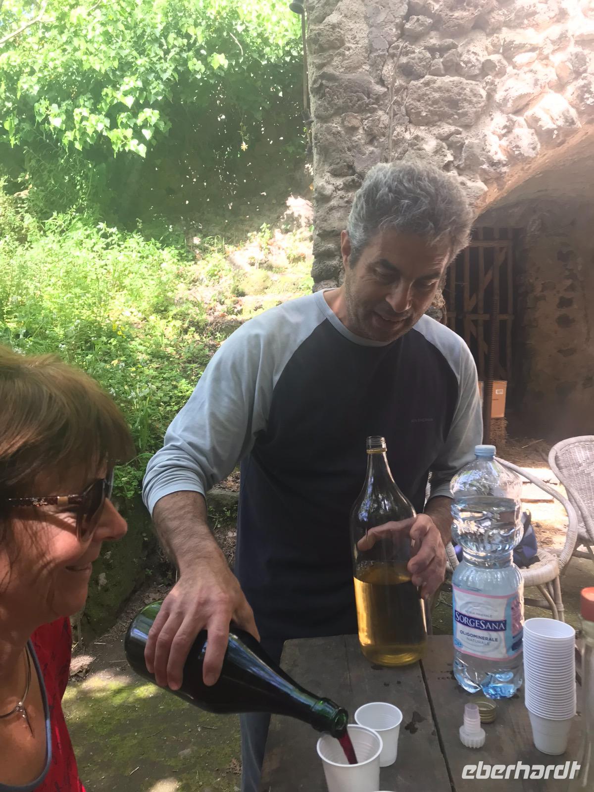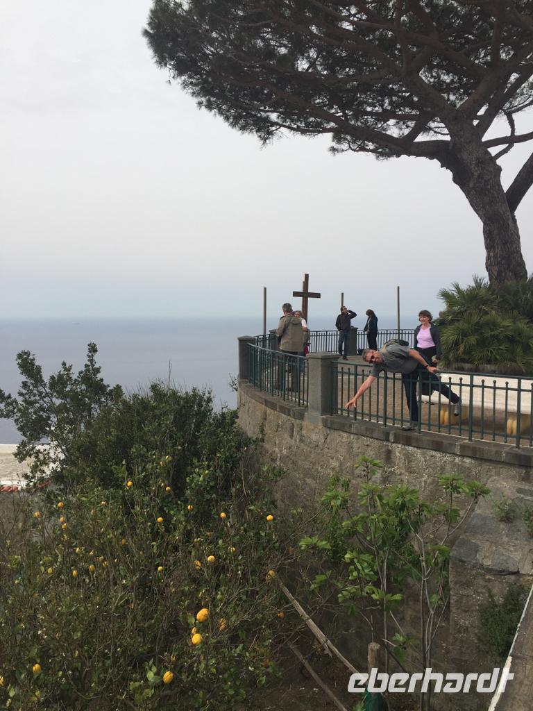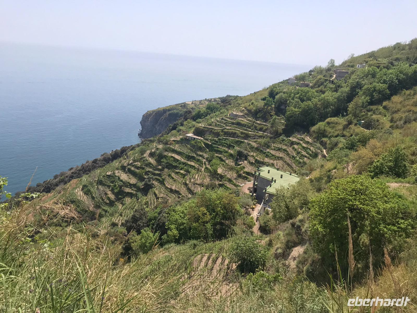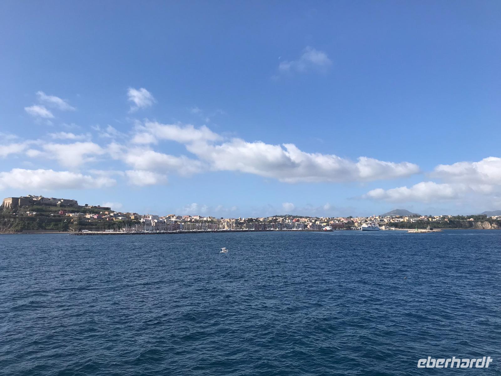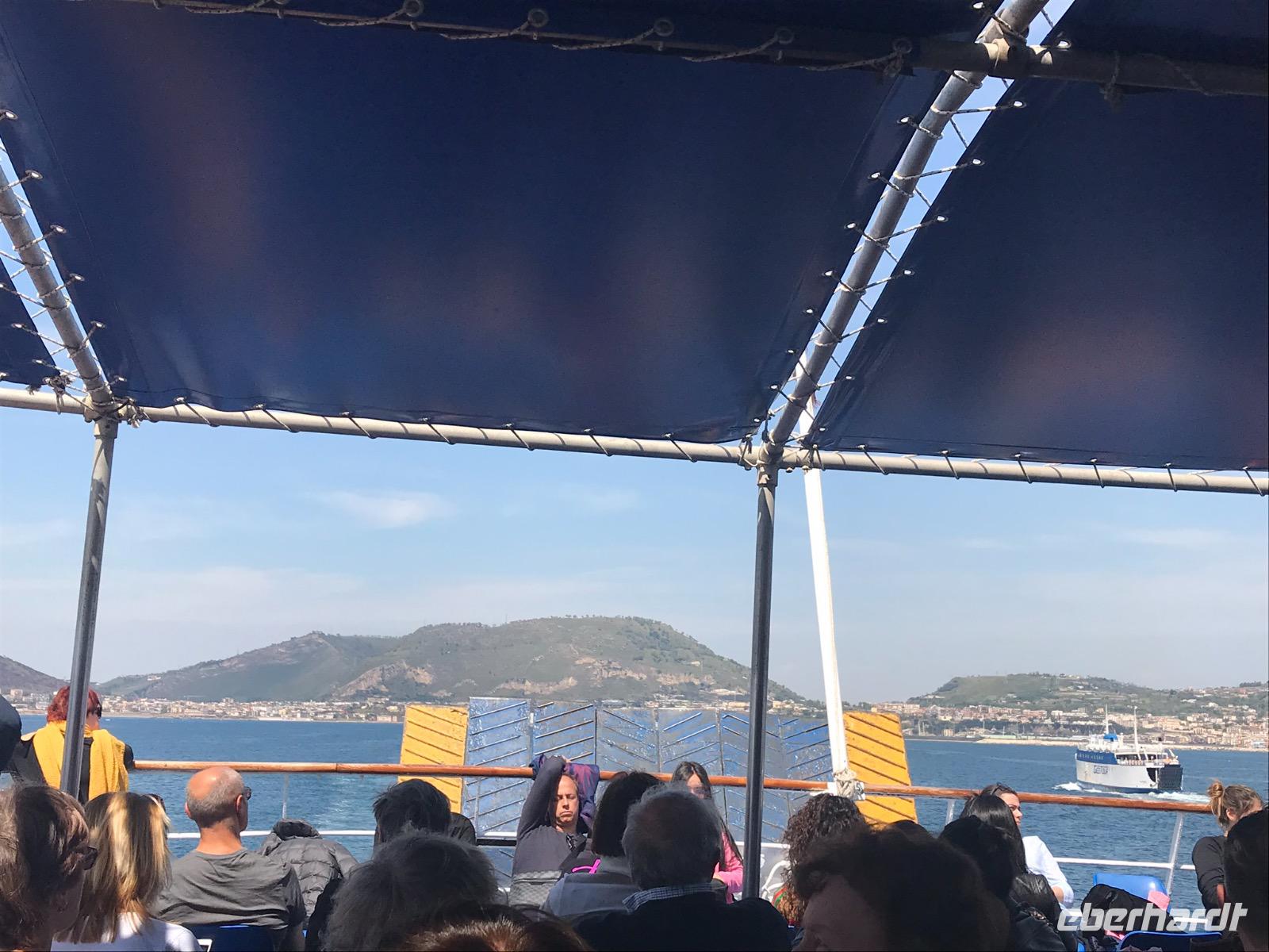 Es sollte die letzte Wanderung werden und ein klein wenig Wehmut war schon mit am Start. Wir waren eine eingeschworene Truppe/Gruppe geworden und es wurde manchmal mehr gelacht als gewandert - Erholung pur. Es wurde eine gemütliche Wanderung durch die Weinberge, vorbei an Kratern (der letzte Ausbruch auf der Insel geht aufs Jahr 1301 zurück), Zitronen- und Orangenbäumen mit traumhaften Ausblicken und einer sehr schönen Rast bei Maria, wo wir von der Terrasse aus Delfine im Meer beobachten konnten. Die Sicht erlaubte es uns heute gut, die umliegenden Inseln im Thyrrhenischen Meer, wie Capri und unser morgiges Ziel Procida zu bewundern. Auch der Vesuv und die Südausläufer der Amalfiküste waren zu sehen. Den Abschluss des Tages bildete der Besuch bei einem Weinbauern, der uns einen kleinen Einblick in seine Arbeit gab und uns natürlich von seinem Wein kosten lies. Auch der Limoncello mundete...
