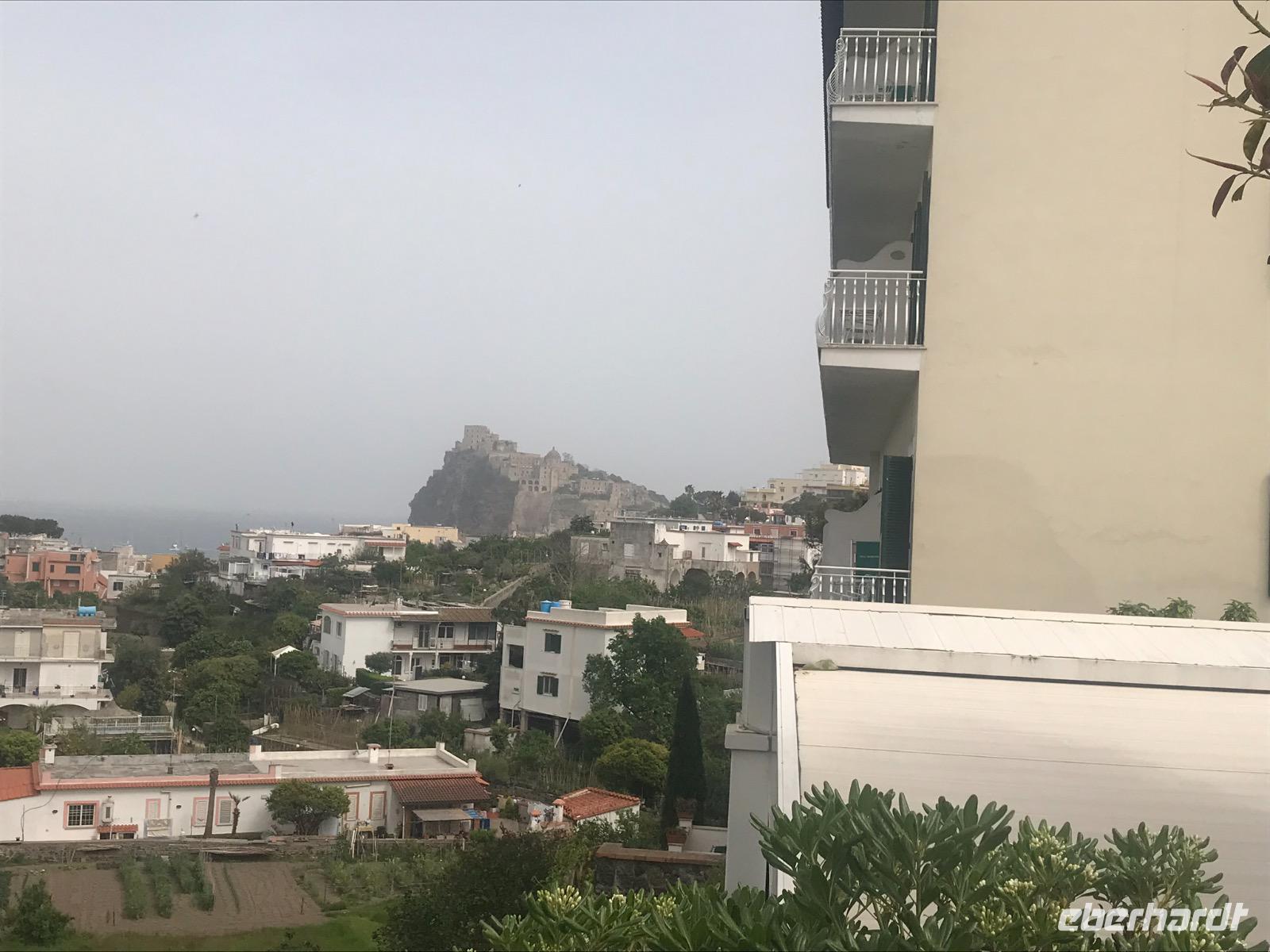 Ein Stück abwärts gelaufen bot sich ein traumhafter Blick auf den Ort und Fischereihafen Corricella. Nach einem Stück köstlicher Zitronentorte und einem Bummel durch die Gassen kehrten wir mit unserem heutigen Reiseleiter Alberto, der uns mit vielen Informationen versorgte, nach Ischia zurück. Es blieb uns an diesem Tag noch genügend Zeit das Castello Argonese in Ischia Ponte zu besuchen, einem ehemaligen Fluchtort von 2.000 Inselbewohnern.