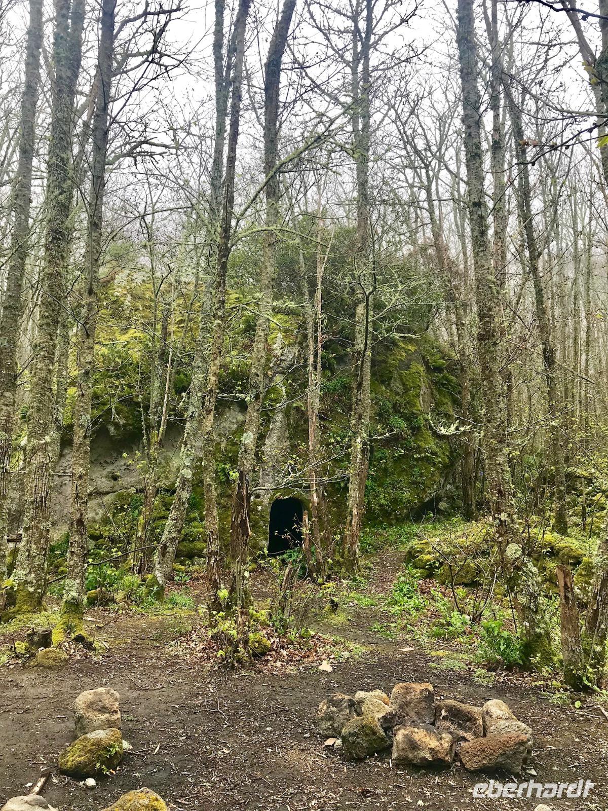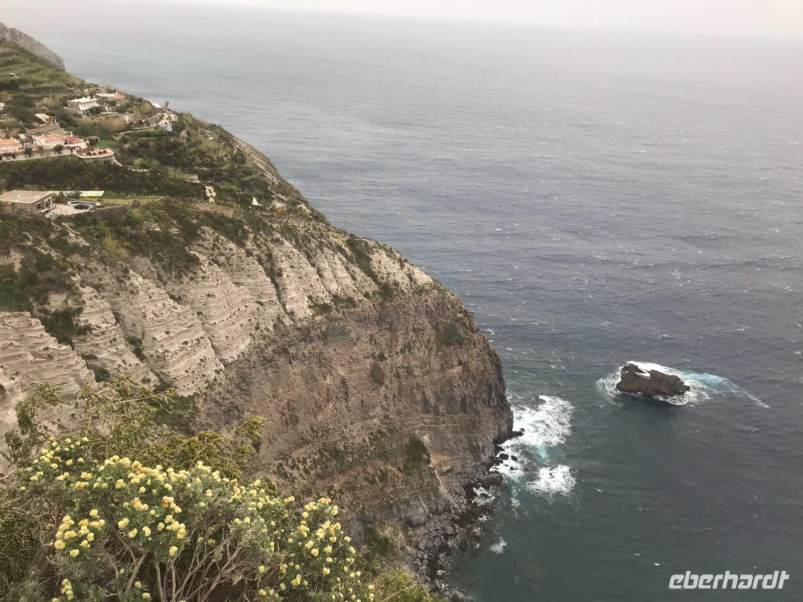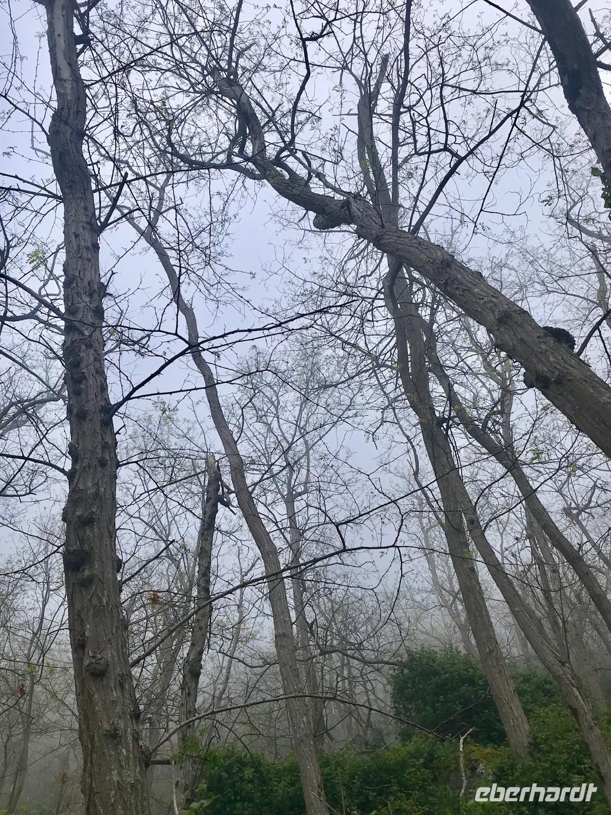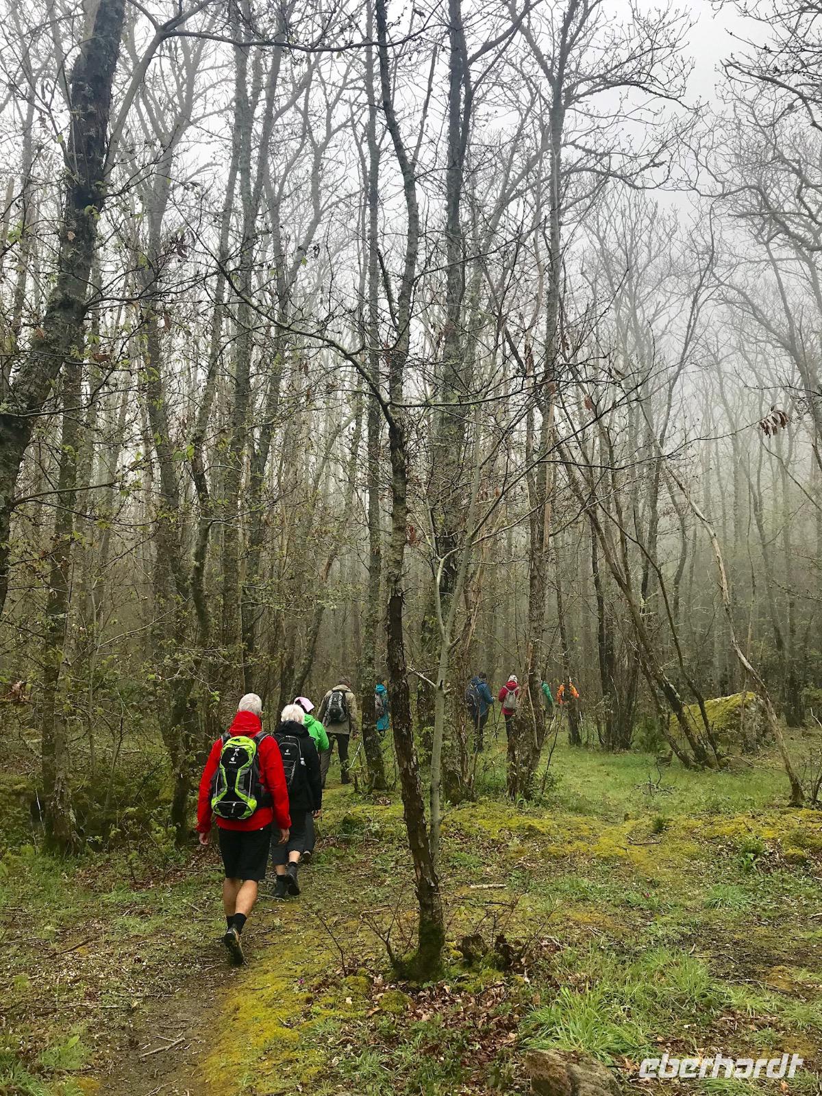 Es sollte der stimmungsvollste Tag werden. Wir starteten im Nebel und durchquerten Wälder der verschiedensten Vegetationen, bestaunten Fels- und Tuffsteinbehausungen in den Bergen, die einst als Fluchtorte vor den Piraten, den Sarazenen dienten. Auch erfuhren wir so manch wundersame Geschichten. So zogen die Frauen früher in die Berge um Kastenblätter in großen Mengen zu sammeln. Im Tal bekamen sie ein Laib Brot dafür von den Bauern. Die Blätter wurden als Einstreu für die Kühe benötigt, da in Ermangelung von Getreideanbau es auf der Insel kein Stroh gab.