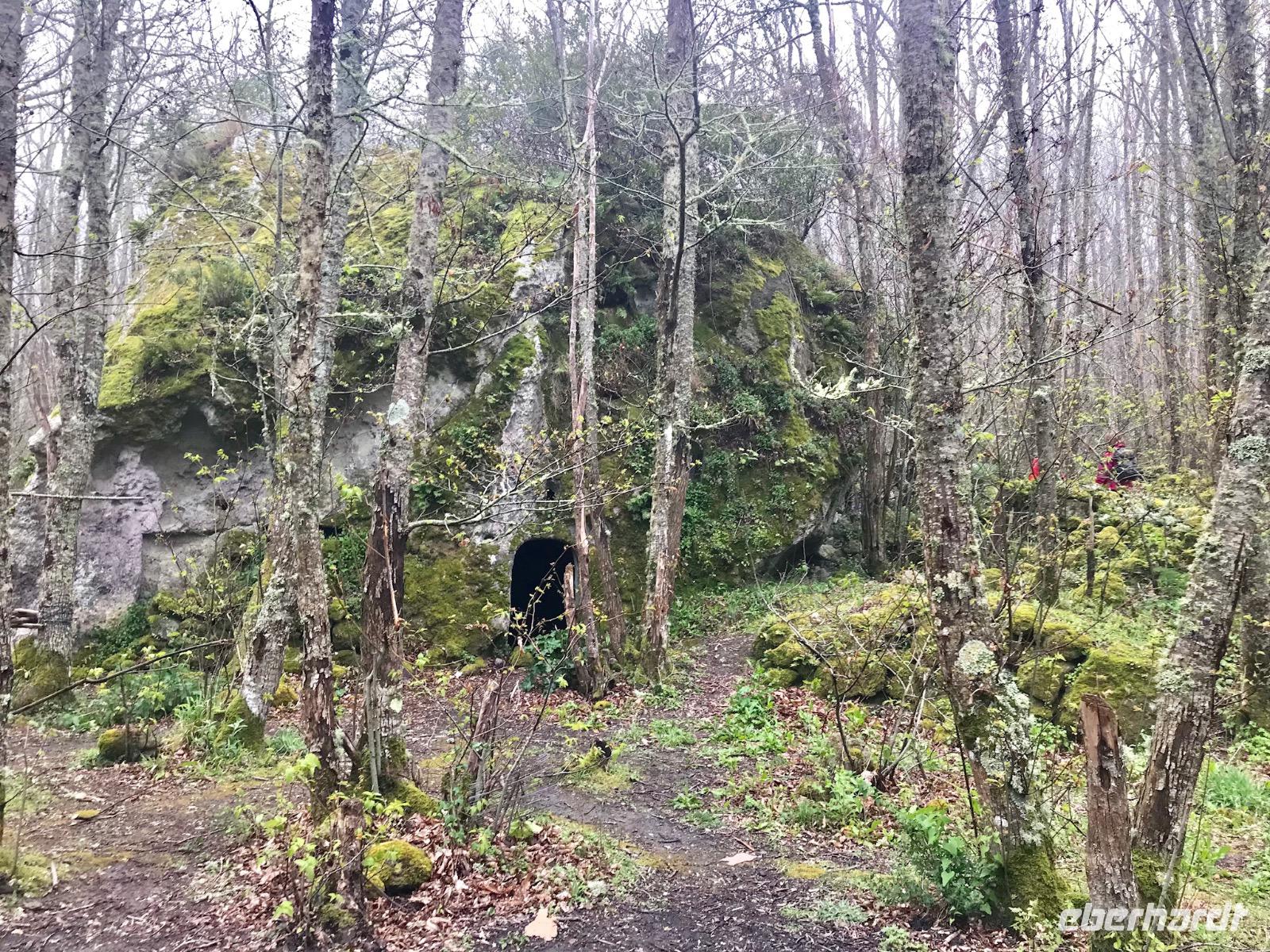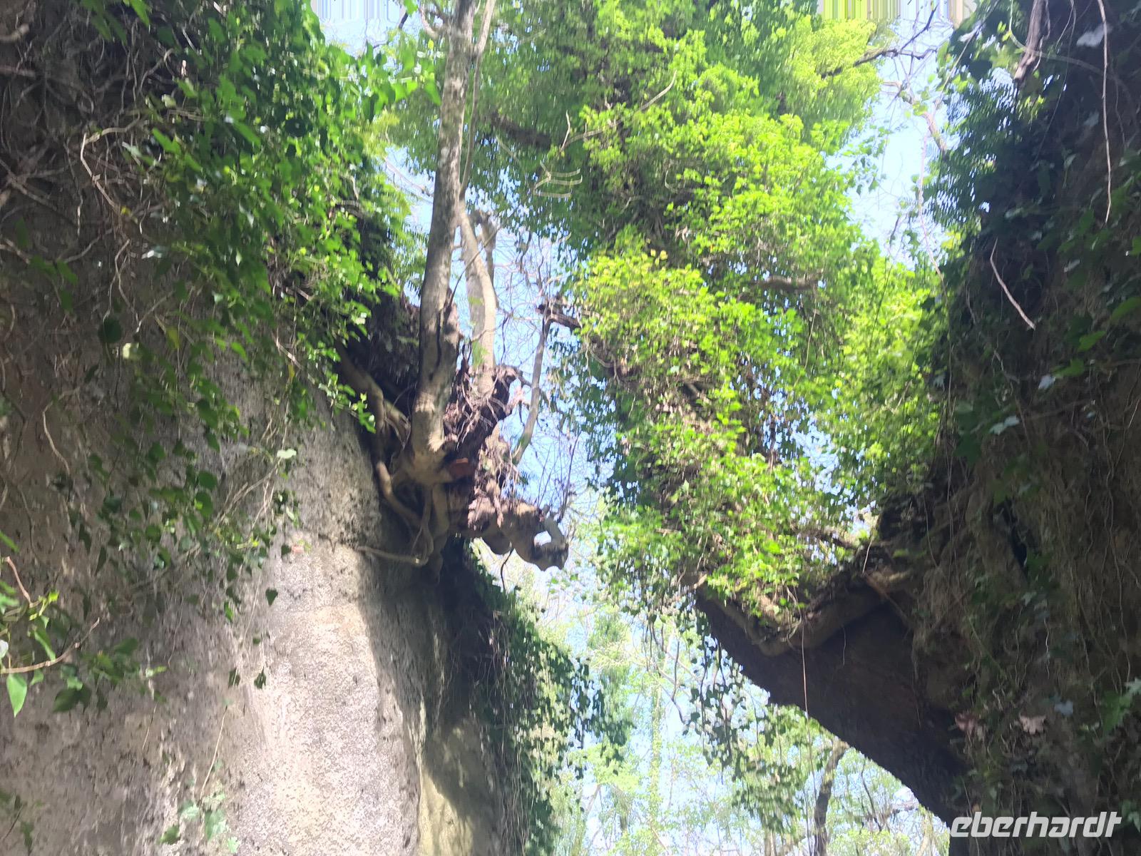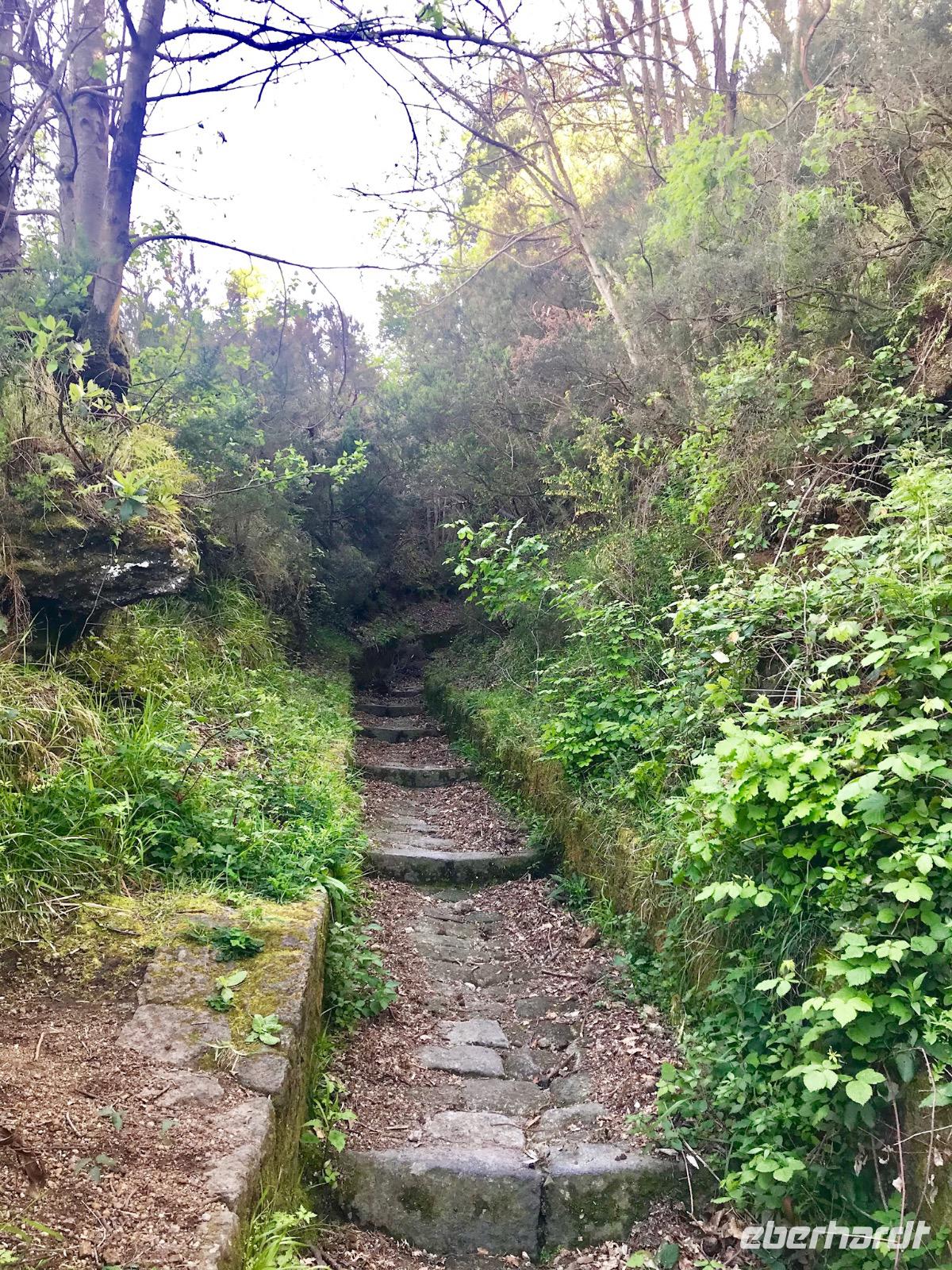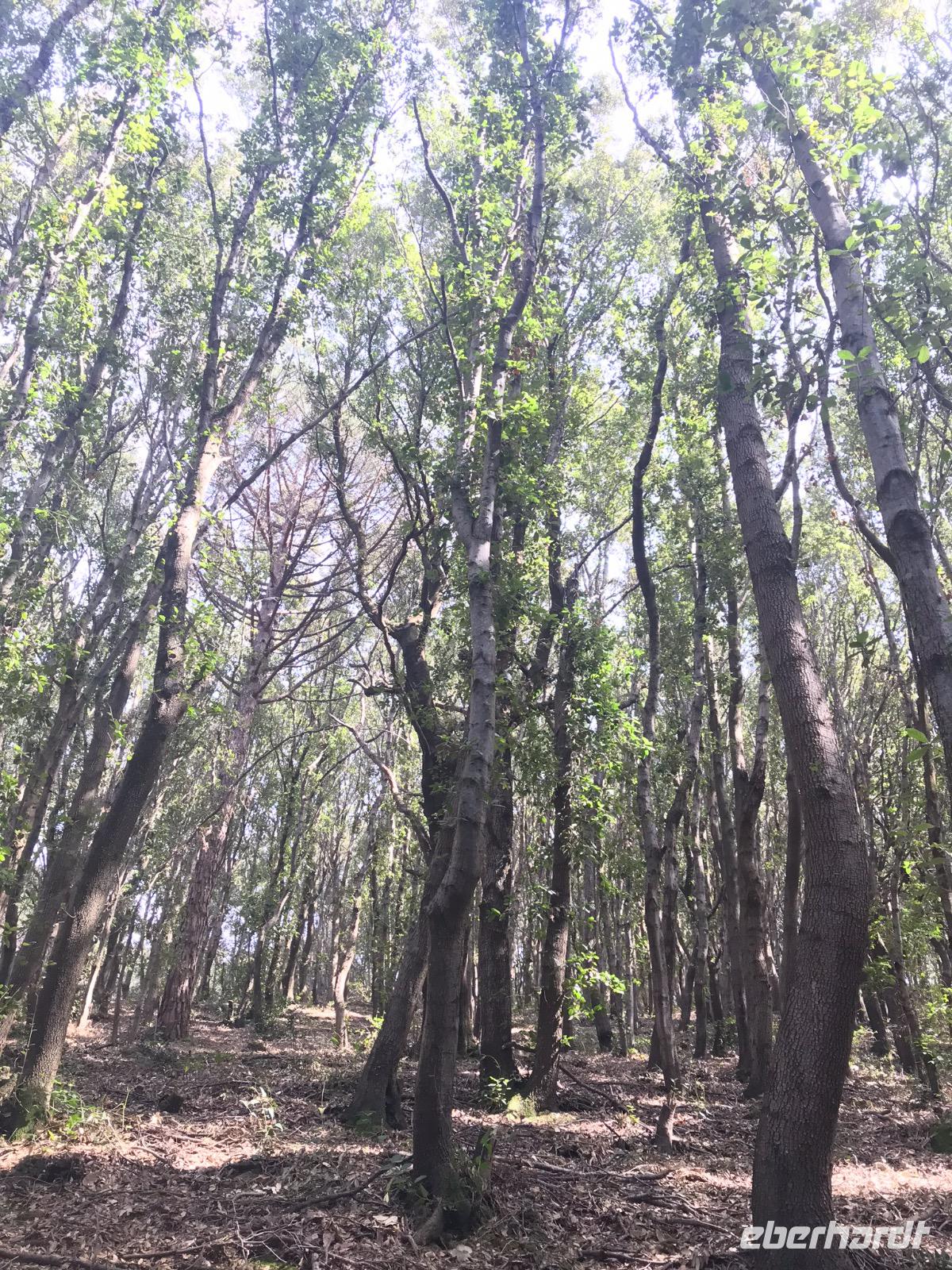 Es sollte der stimmungsvollste Tag werden. Wir starteten im Nebel und durchquerten Wälder der verschiedensten Vegetationen, bestaunten Fels- und Tuffsteinbehausungen in den Bergen, die einst als Fluchtorte vor den Piraten, den Sarazenen dienten. Auch erfuhren wir so manch wundersame Geschichten. So zogen die Frauen früher in die Berge um Kastenblätter in großen Mengen zu sammeln. Im Tal bekamen sie ein Laib Brot dafür von den Bauern. Die Blätter wurden als Einstreu für die Kühe benötigt, da in Ermangelung von Getreideanbau es auf der Insel kein Stroh gab.