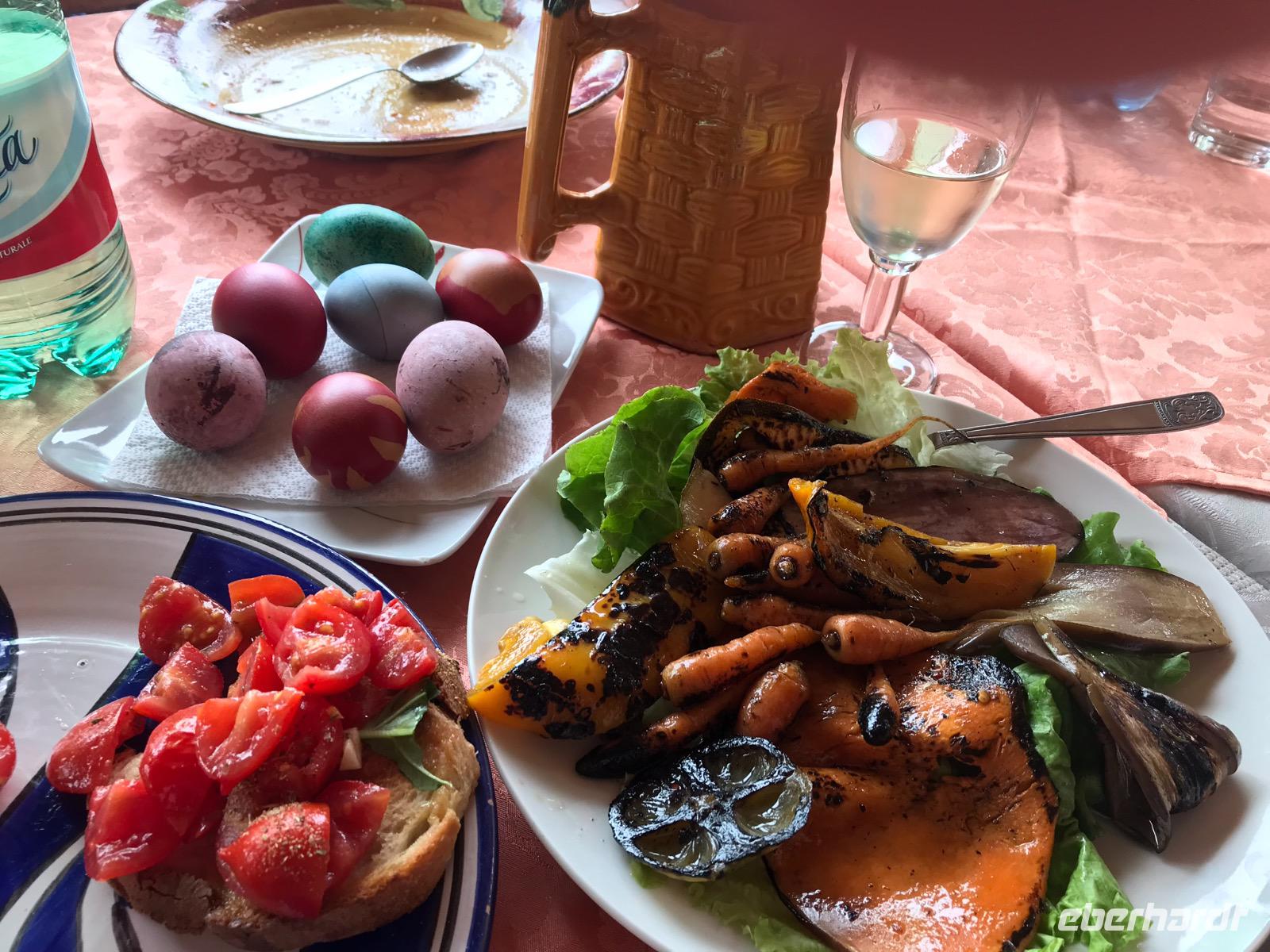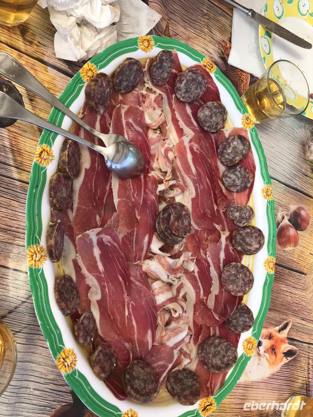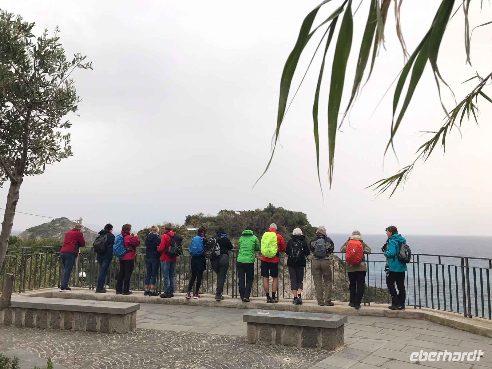 Auf dem Monte Epomea (787 m hoch) angekommen zeigte sich pünklich die Sonne und wir wurden neben dem traumhaften Ausblick auf die Küste und auf die Insel mit köstlichem Essen verwöhnt. Das Berglokal La Grotta da Fiore erinnerte ein wenig an Berghütten des Deutschen Alpenvereins der 90er Jahre, sehr urig jedenfalls. Der Abstieg fiel uns leicht und wir wurden immer wieder mit wunderschönen Ausblicken belohnt. An diesem Nachmittag war dann das Thermalbecken im Hotel besonders gefragt, als vorbeugendes Mittel gegen Muskelkater.