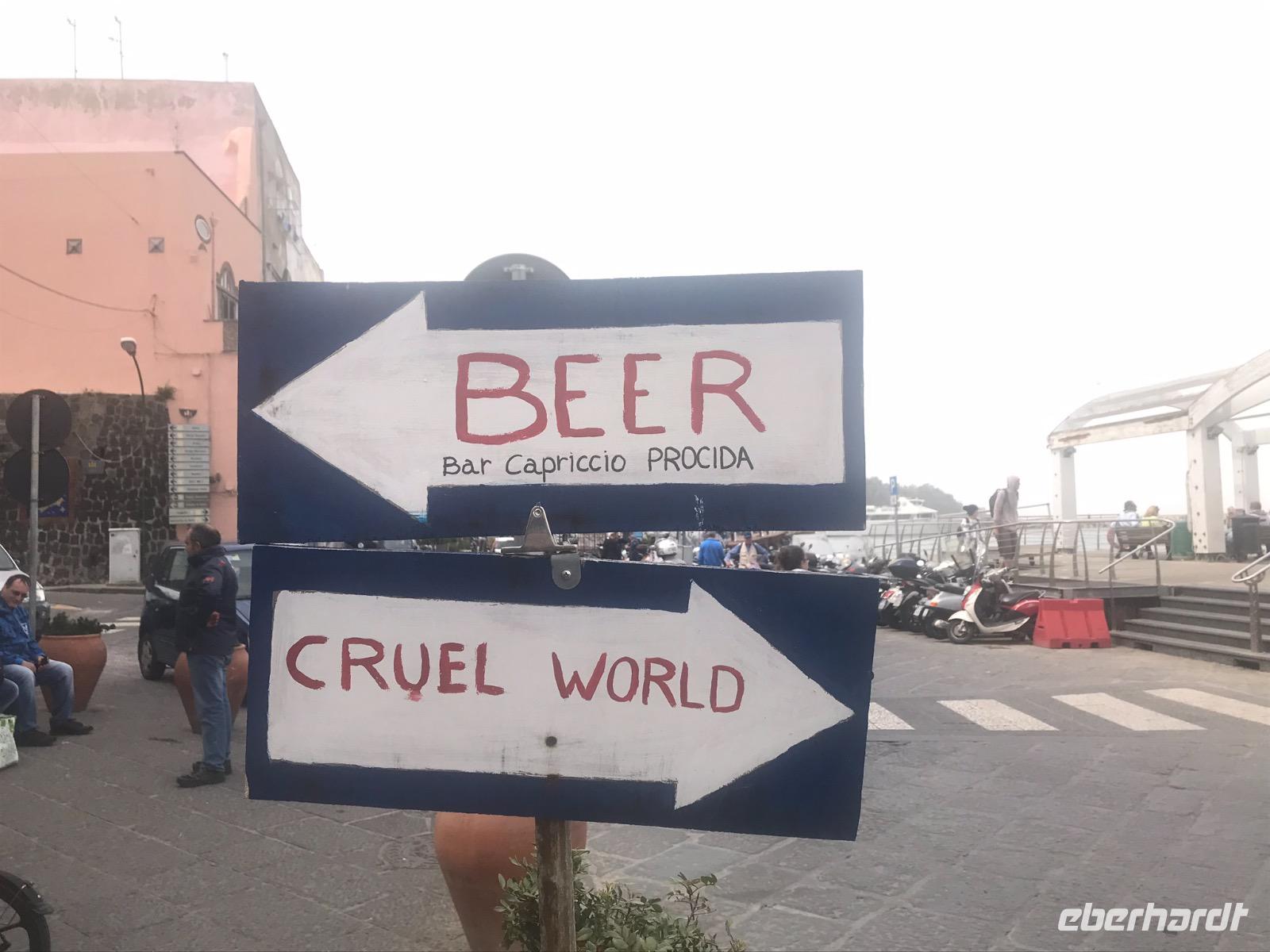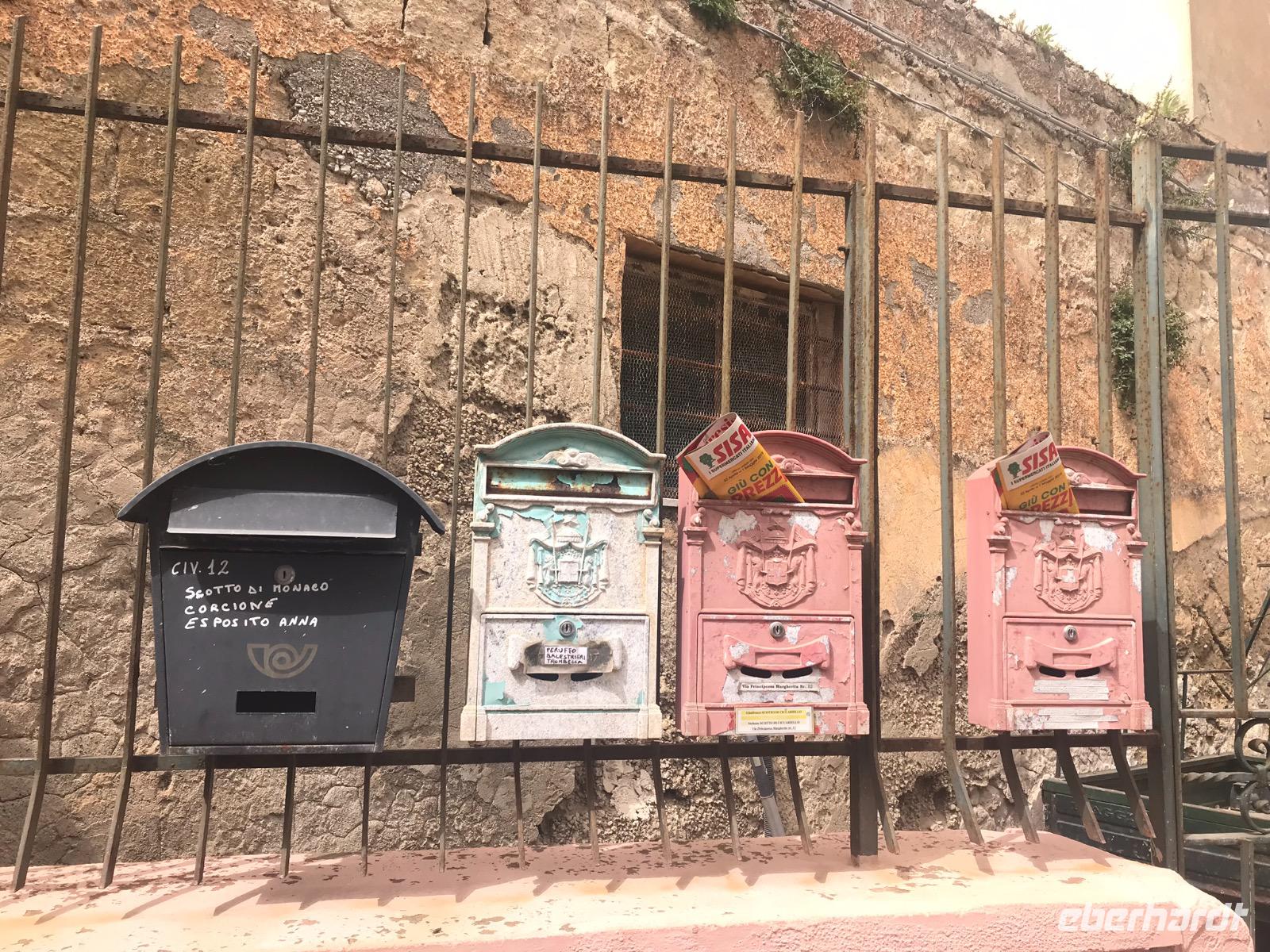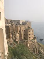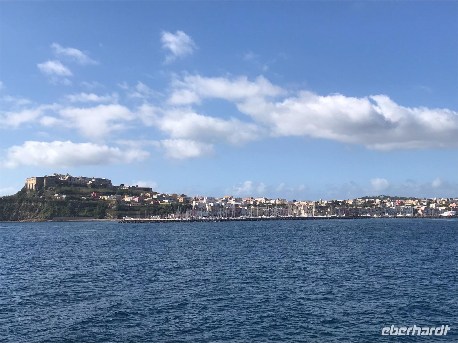 Spektakulär ist die Inselrundfahrt mit den Microtaxen, die zumeist nur mit eingeklappten Spiegeln durch die engen Gassen passen. So verwundert es nicht, dass das e-Bike in der Fatbikevariante hier das Haupfverkehrsmittel darstellt. Natürlich war für uns die Fahrt auf die Burg mit einem der 3 PS Mobile eines der Highligts des Tages. Dort besuchten wir die Abtei Abbazia San Michele Arcangelo und konnten anschließend einen Blick auf das ehemalige Gefängis werfen, dass sich von 1830 bis 1988 hier im ehemaligen Palast auf der Terra Murata befand.