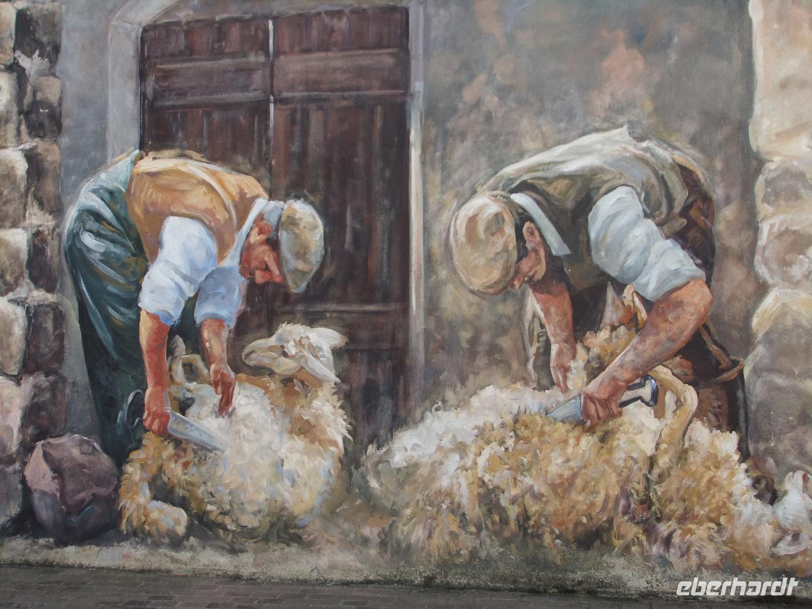 Wir fahren an der Küste entlang nach Tharros. Schon die Phönizier aus dem Libanon und die Punier aus Karthago fanden hier im Windschatten der langgezogenen Halbinsel einen sicheren Hafen. Sie schufen eine Stadt, von der noch Reste vorhanden sind. Ihre Grabbeigaben aber haben wilde Ausgräber vor allem nach Großbritannien gebracht. Die Sieger in den 3 punischen Kriegen, die Römer, übernahmen die Stadt und bauten sie zu einer Metropole auf Sardinien mit 10.000 Einwohner aus. Franco zeigt uns vor allem die Technik, deren Stand oft erst im 19.Jahrhundert wieder erreicht wurde. Gepflasterte Straßen, Wasserversorgung über Süßwasserbrunnen-Aquädukt-Wasserschloss und Zisternen, Abwasserkanäle unter den Straßen, Thermen mit Heizanlagen für Fußboden, Wände und Wasserbecken. Auf dem Rückweg fotografieren wir die Murales in Flussio. Sie sind ganz andres als die von Orgosolo, realistisch, künstlerisch und zeigen das Leben in Sardinien von gestern und heute.