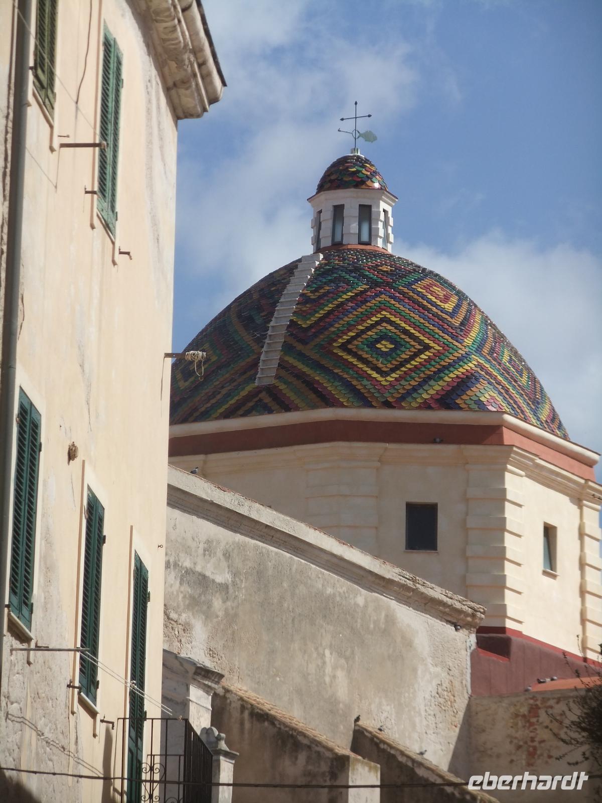 Marcella führt uns vom Hotel über die Uferpromenade zur Altstadt von Alghero. Fast 400 Jahre aragonesich - katalanische Besetzung haben die Stadt geprägt: durch die Festungsanlagen, den gotisch-katalanischen Stil der Kathedrale und der Profanbauten, durch die katalanische Sprache, die noch gepflegt wird (und auf den Straßenschildern erscheint) und alten Bräuchen, die die Katalanen aus Spanien in das „barcelonetta", dem kleinen Barcelona, reisen lassen. Die Altstadt ragt in das Meer hinein, aber die Seeluft fordert auch ihren Tribut, die Ornamente der Fassaden zerbröseln. In den alten Bürgerhäusern haben sich viele Geschäfte niedergelassen, man bietet vor allem Korallenschmuck an, bei Alghero wird heute noch, allerdings in kleinen Kontingenten, die dunkelrote Koralle durch Taucher geerntet. Von den Bastionen aus ist das markante Capo Caccia, das Jagdgebiet der Savoyer Herrscher, zu sehen. Aber ein scharfer Wind hat das Meer aufgewühlt, die Schiffe laufen nicht aus, um zur berühmten Neptungrotte zu fahren.