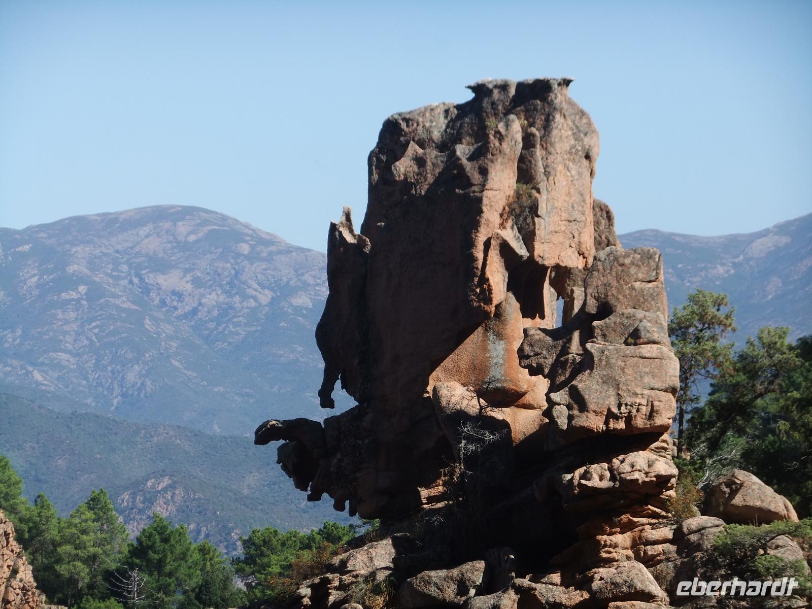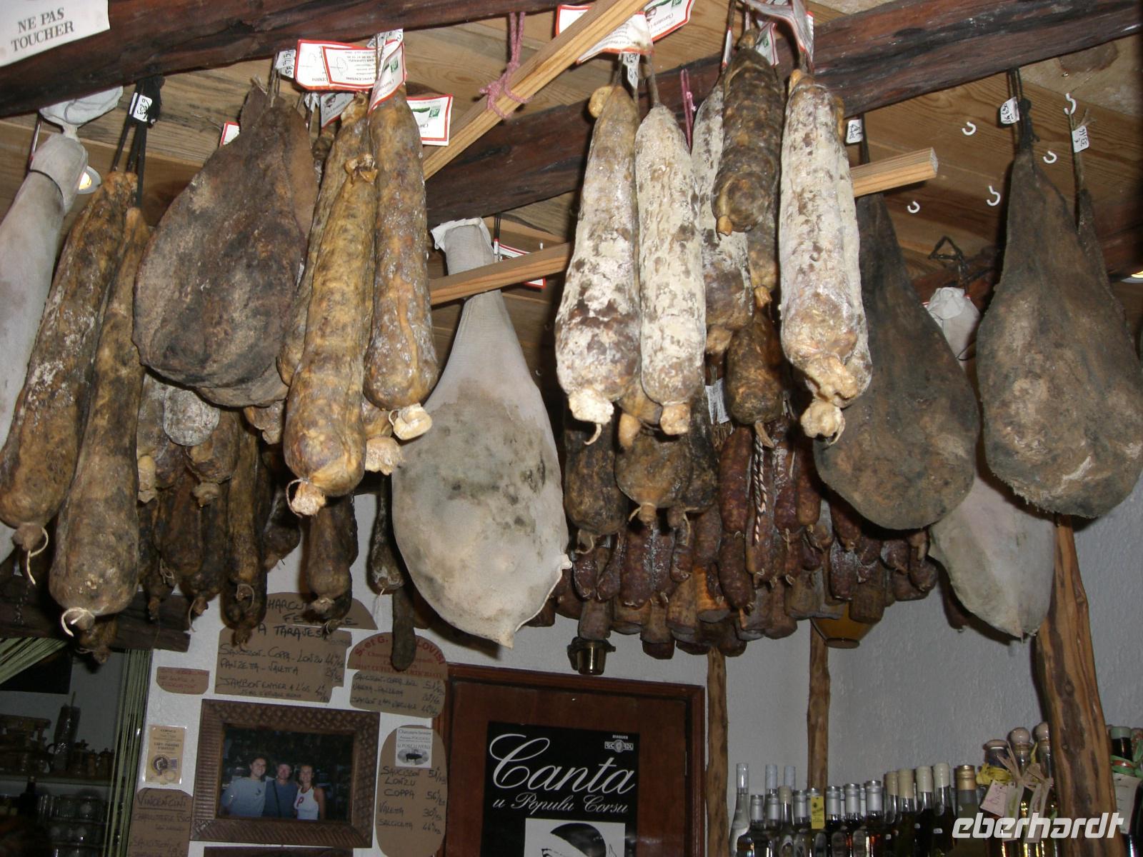 Am Morgen schauen wir uns erst einmal die Hauptstadt der Region Korsika an. Ajaccio hat einen großen Fährhafen, auch Kreuzfahrschiffe legen hier an, dazu einen Fischereihafen und etwas weiter Sandstrände. Auch hier errichteten die Genueser eine Zitadelle. In der Nähe steht die Kathedrale in der Napoleon beinahe geboren wurde, (vielleicht) getauft wurde und nach seinem Wunsch begraben sein wollte (den er offensichtlich später geändert hat). Wir gehen die wenigen Schritte zu seinem Geburtshaus, betrachten ehrfürchtig das zur Straße hin schlichte Haus und den kleinen Park mit der Büste seine Sohnes, des „Aiglon", des kleinen Adlers. Dann streifen wir durch die Reihen des Marktes mit seinen köstlichen regionalen Produkten, den Würsten, den nach alter Tradition gefertigten Käse, Wein und Likören. Wir wären schon länger geblieben, aber auf uns wartete die Insel mit seinen Naturschönheiten. Die bizarre Landschaft der Calanque, unter Patronat der UNESCO stehend, die enge Specluncaschlucht mit seinen freilaufenden Schweinchen, der Forst von Aitone mit seinen bis zu 60 m hohen kerzengeraden korsischen Schwarzkiefern, der Pass Col de Vergio (1467 bis 1477 m, je nachdem, welchen Reiseführer man liest) und dann das Niellu, ein abgelegenes Hochtal mit 5 Weilern. Hier ahnten früher viele Menschen gar nicht, dass sie auf einer Insel leben. Der Weg nach Osten wurde durch die tiefe Schlucht des Golo