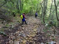 Es folgt ein fast dreistündiger Abstieg nach San Giaccomo, also zur See abgewandten Seite. Herr Schmidt merkt als erster, dass ein Gewitter aufzieht und läuft nicht die geschotterten Serpentinen, sondern steilere Pfade herunter, die sehr anstrengend sind, aber den Weg erheblich verkürzen. Er will die Gruppe aus der Gefahrenzone bringen, denn oberhalb der Baumgrenze ist man selbst der bete Blitzableiter. Schon ist der erste Donner zu hören. Es regnet leicht, als wir bewaldetes Gebiet erreichen.