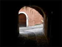 Gegen Mittag wird das Dorf Campo erreicht. Zunächst wird die Kirche mit den alten Fresken besucht. Danach machen wir Brotzeit im Garten der einzigen Bewohner, die Herr Schmidt kennt. Von diesen werden noch 2 Flaschen roter Bauernwein besorgt zu je 2 Liter und alle fühlen sich zufrieden.