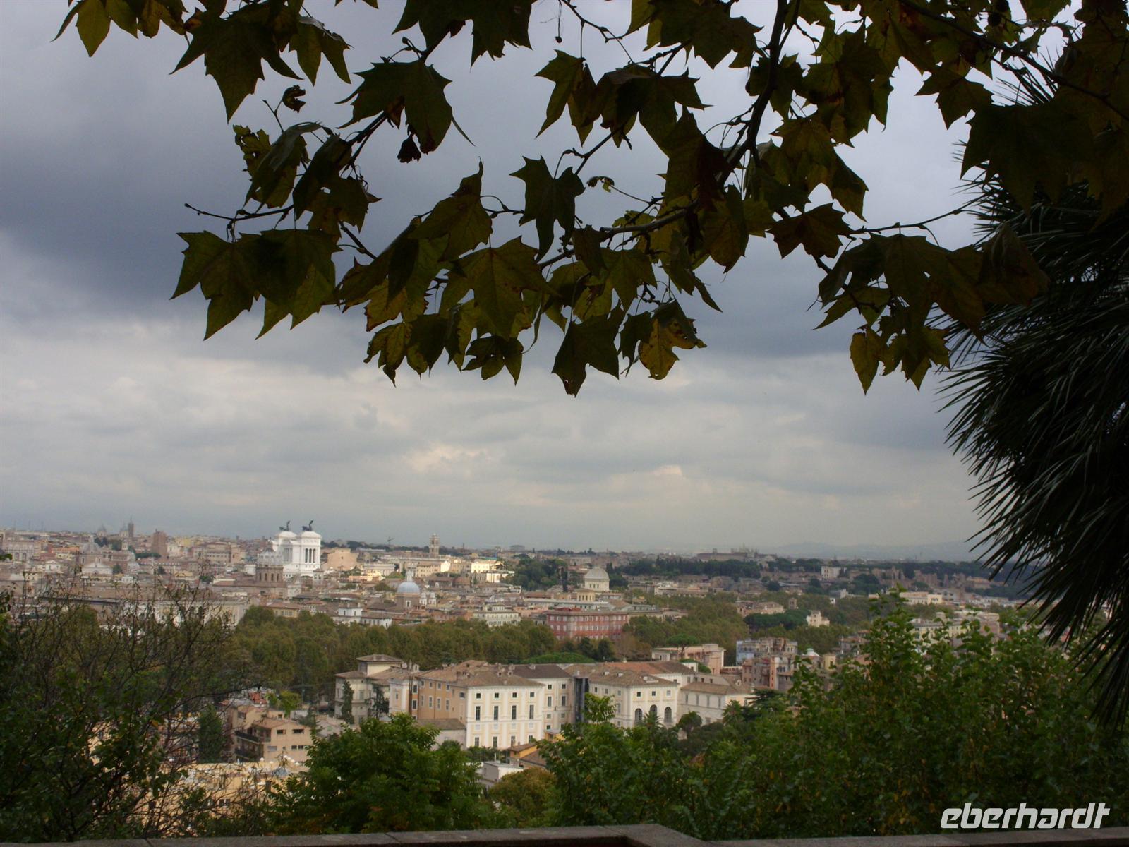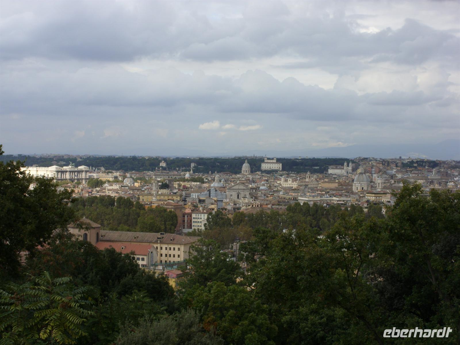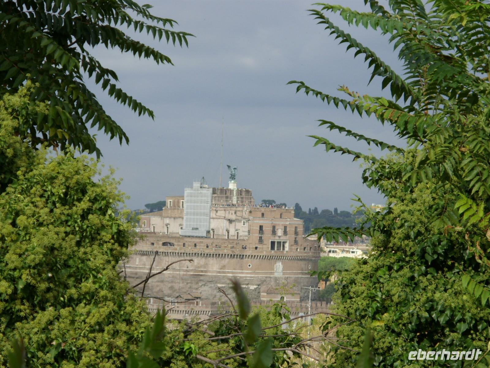 Doch was war das? Schon während unser kleinen Mittagsrast fielen immer wieder ein paar Tropfen Regen zu Boden ... Leider sollten es die Wolken tatsächlich nicht gut mit uns meinen, denn als wir den Gianicolo-Hügel erklommen hatten, begann es fein und leider auch anhaltend zu regnen. So verschwanden also die Stadtgrenzen und zahlreichen Gebäude im tristen Grau. Nachdem wir den Freiheitskämpfer Guiseppe Garibaldi passiert hatten, kehrten wir zum Ufer des Tibers zurück und schlugen den Weg zur nächstgelegenen Metrostation ein. Dabei passierten wir sowohl Petersdom wie auch Engelsburg. Alsbald hatten wir dann aber auch die U-Bahn erreicht und kehrten zum Teil ziemlich durchnässt zum Hotel zurück. Hier gab es nun endlich auch die Zimmerschlüssel ...