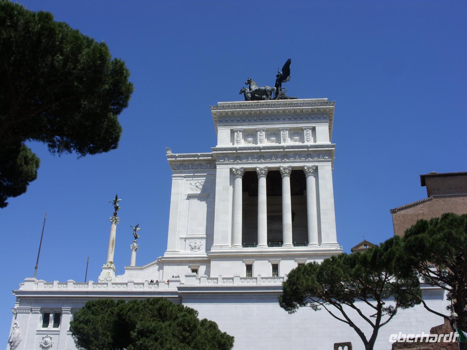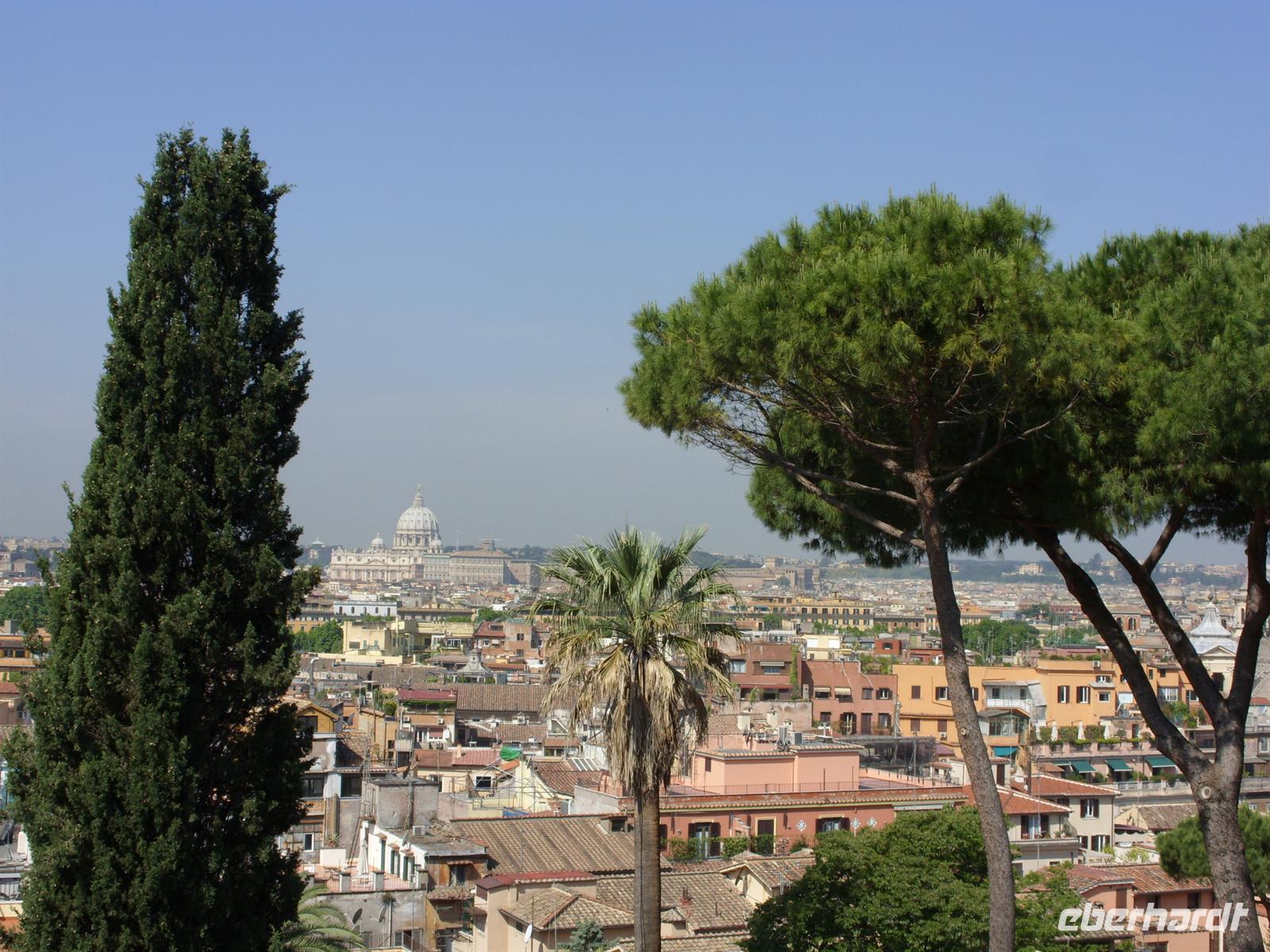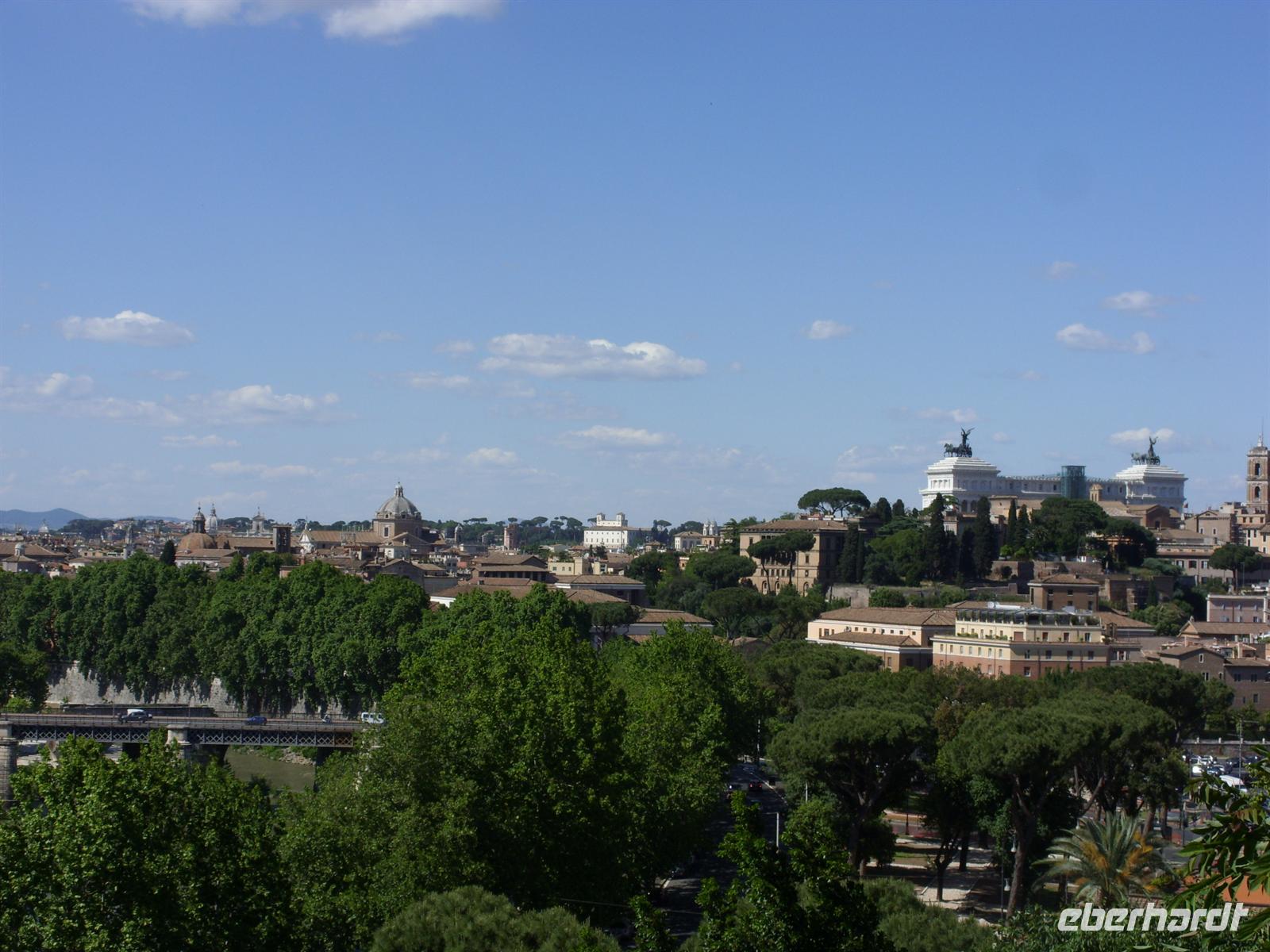 Doch was war das? Schon während unser kleinen Mittagsrast fielen immer wieder ein paar Tropfen Regen zu Boden ... Leider sollten es die Wolken tatsächlich nicht gut mit uns meinen, denn als wir den Gianicolo-Hügel erklommen hatten, begann es fein und leider auch anhaltend zu regnen. So verschwanden also die Stadtgrenzen und zahlreichen Gebäude im tristen Grau. Nachdem wir den Freiheitskämpfer Guiseppe Garibaldi passiert hatten, kehrten wir zum Ufer des Tibers zurück und schlugen den Weg zur nächstgelegenen Metrostation ein. Dabei passierten wir sowohl Petersdom wie auch Engelsburg. Alsbald hatten wir dann aber auch die U-Bahn erreicht und kehrten zum Teil ziemlich durchnässt zum Hotel zurück. Hier gab es nun endlich auch die Zimmerschlüssel ...
