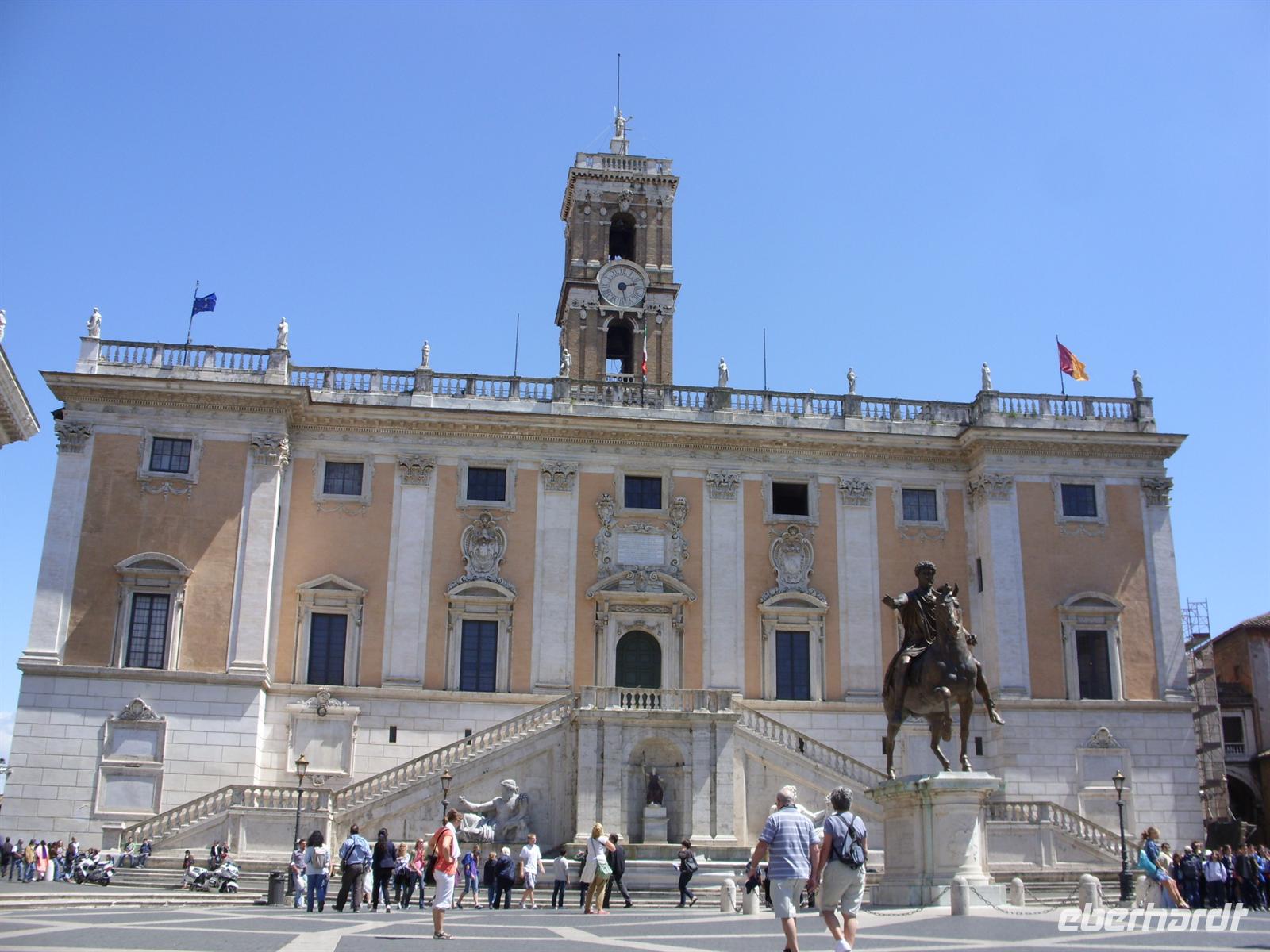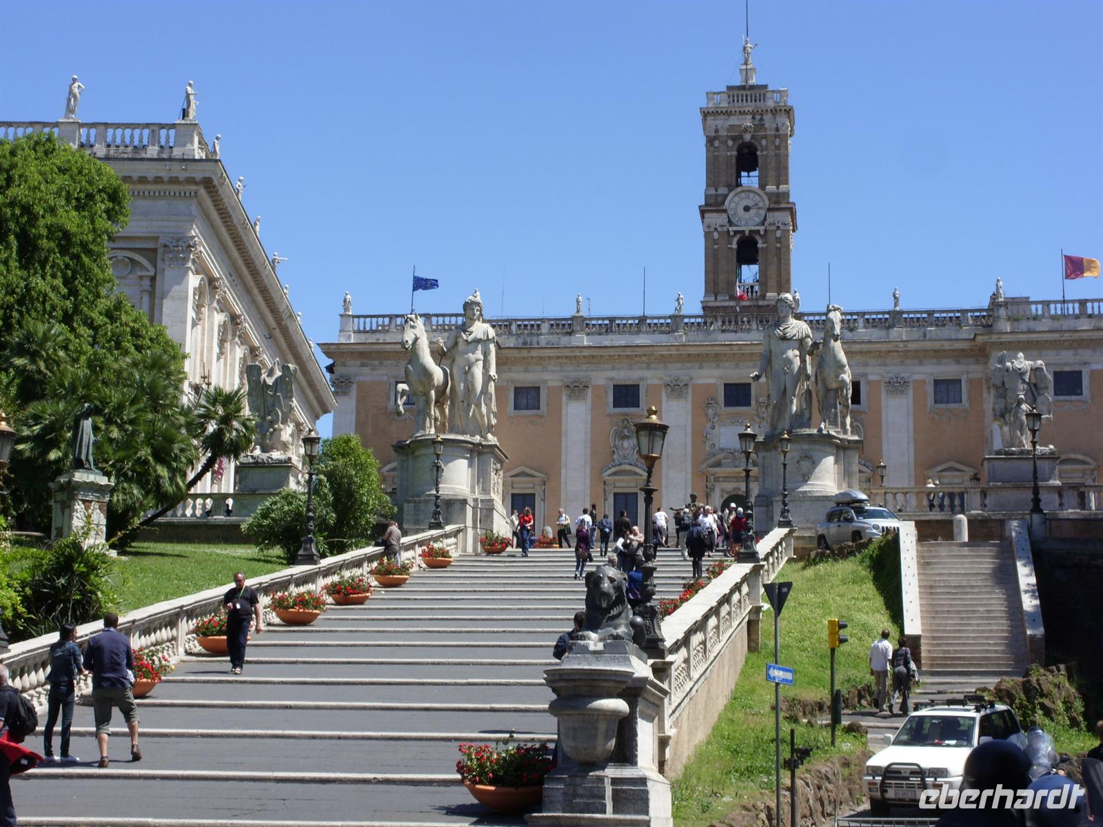Auf diese Art und Weise waren wir dem zweiten Hügel unserer heutigen Stadtwanderung recht nah gekommen: der Kapitolshügel. Doch bevor wir diesen erreichten, sahen wir noch eine Reproduktion der berühmten Kapitolinischen Wölfin mit Remus und Romulus, die ja der Legende nach als Stadtgründer gelten. Vor den Kapitolinischen Museen endeten dann auch schon die heutigen Erklärungen von unserem Winfried. Zeit für eine Pause ...