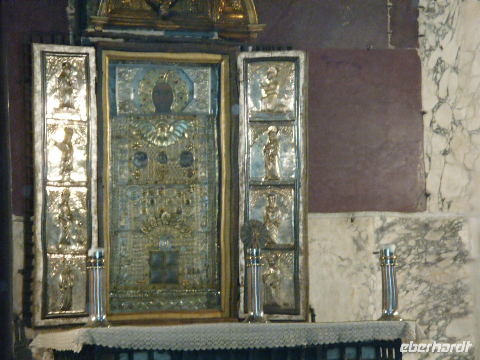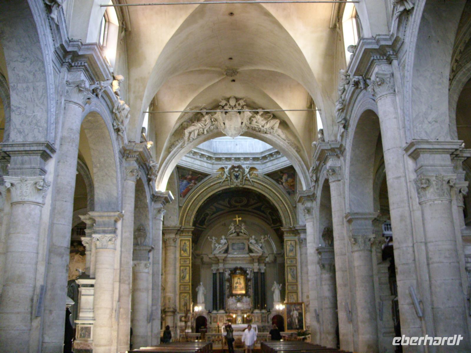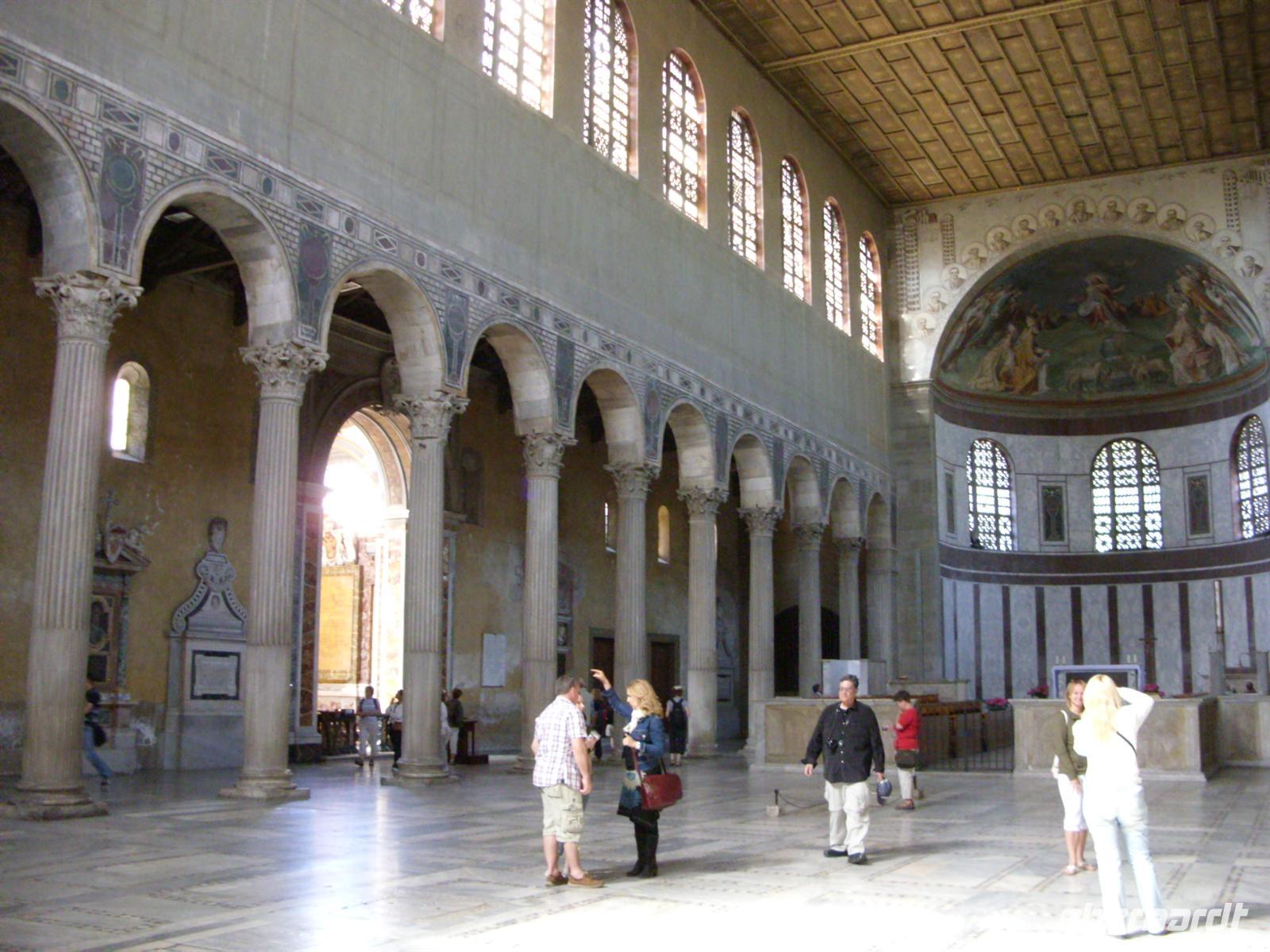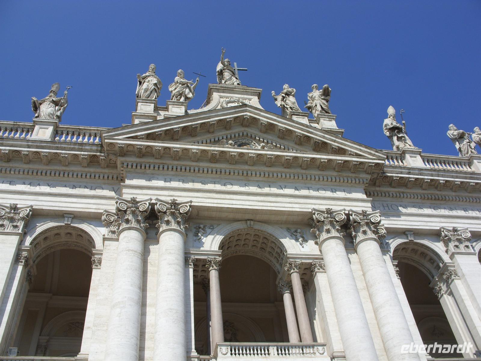 In der Früh starteten wir nochmals mit einer Kirche, die aber doch zu jedem Rom-Programm unbedingt dazu gehören sollte. Es handelte sich dabei schließlich um die "Mutter und Haupt aller Kirchen der Stadt und des Erdkreises" - San Giovanni in Laterano. Doch bevor unseren Fuss in diese denkwürdige Basilika setzten, betrachteten wir zunächst einmal den auf der Nordseite liegenden Piazza San Giovanni mit Roms größtem (41 m) und ältestem (15. Jh. v. Chr.) Obelisk und der Taufkirche von Johannes dem Täufer. Gleich nebenan stand auch der Lateranspalast, einstiger Wohn- und Arbeitssitz des Papstes und heutige Verwaltung des Bistim Rom. Anschließend ging es weiter zur Heiligen Treppe, der Treppe aus dem Palast von Pilatus in Jersusalem, die Jesus Christus auf dem Weg zum Verhör hinaufgestiegen sein soll. Auch wir sahen einige Gläubige, die die Stufen zum Gedenken an das Leiden Christi hinaufrutschten. Nun wartete nur noch die Basilika San Giovanni auf unseren Besuch - erneut zeigten wir uns beeindruckt von der Größe (130 m im Langhaus) und dem prunkvollen Hochalter (mit den Häuptern von Peter und Paulus).