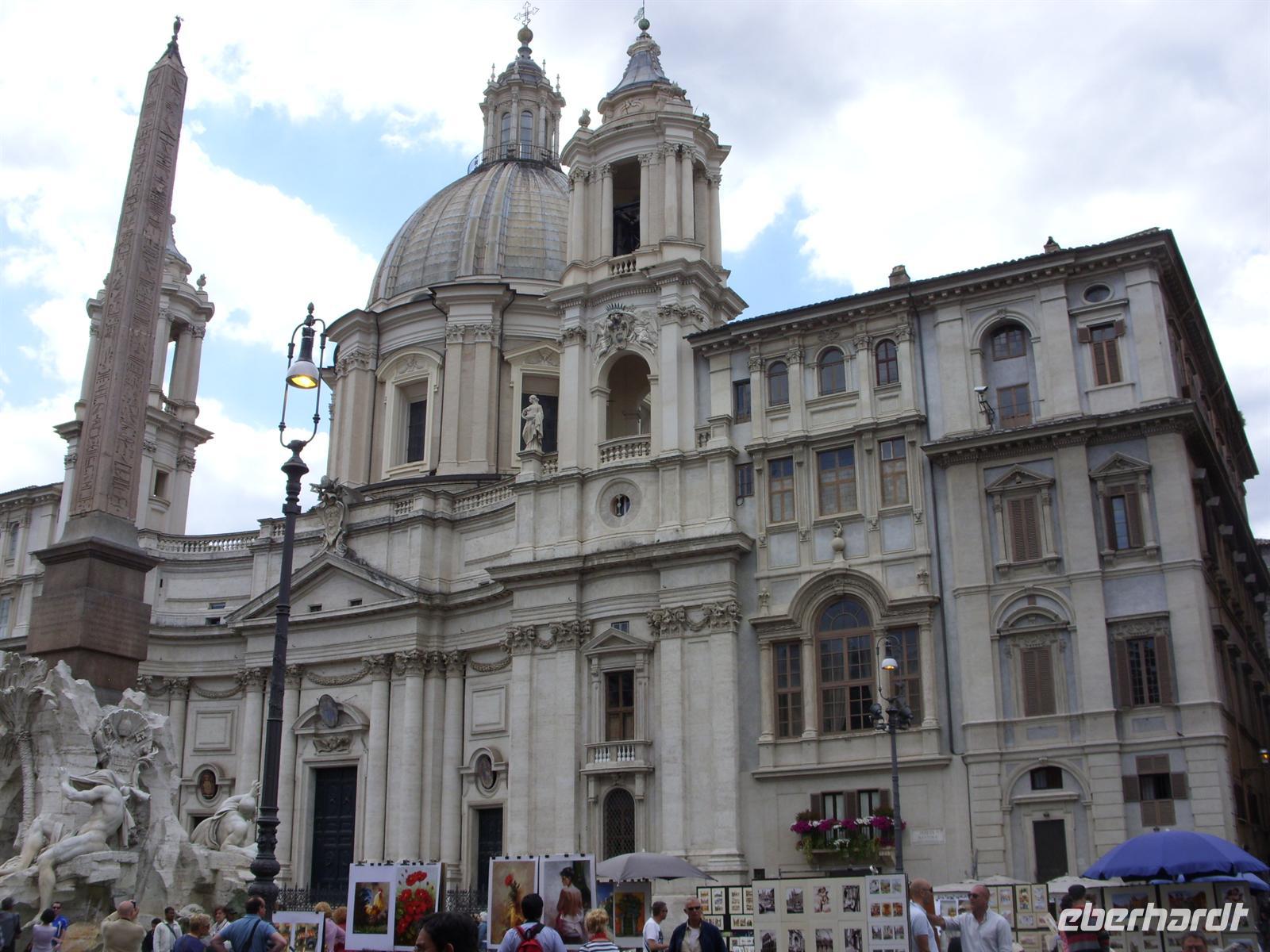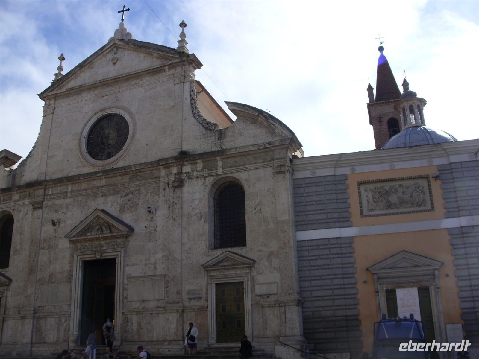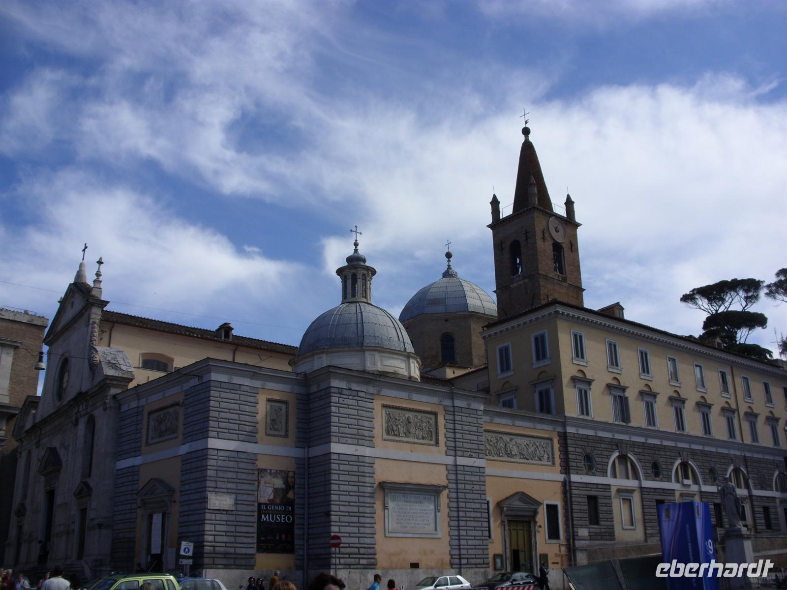 Voller Tatendrang und mit asugeruhten Füssen starteten wir per Metro in den heutigen Tag. Am Piazza del Popolo erwartete uns schon unser Winfried, der uns nun in den kommenden sieben Stunden wieder so einiges Interessantes über Rom, seine Plätze und Kirchen zu berichten wusste. Die erste zu besuchende Kirche war dabei sogleich die Kirche Santa Maria del Popolo direkt am Platz des Volkes. 1099 wurde dieser Kirche auf Kosten des Volkes - daher der Name - erbaut und seitdem mehrfach erweitert. In dem schlichten Renaissancebau gelten besonders die Freskenmalereien Pinturicchios und die Tafelbilder des Künstlers Caravaggios als interessent.