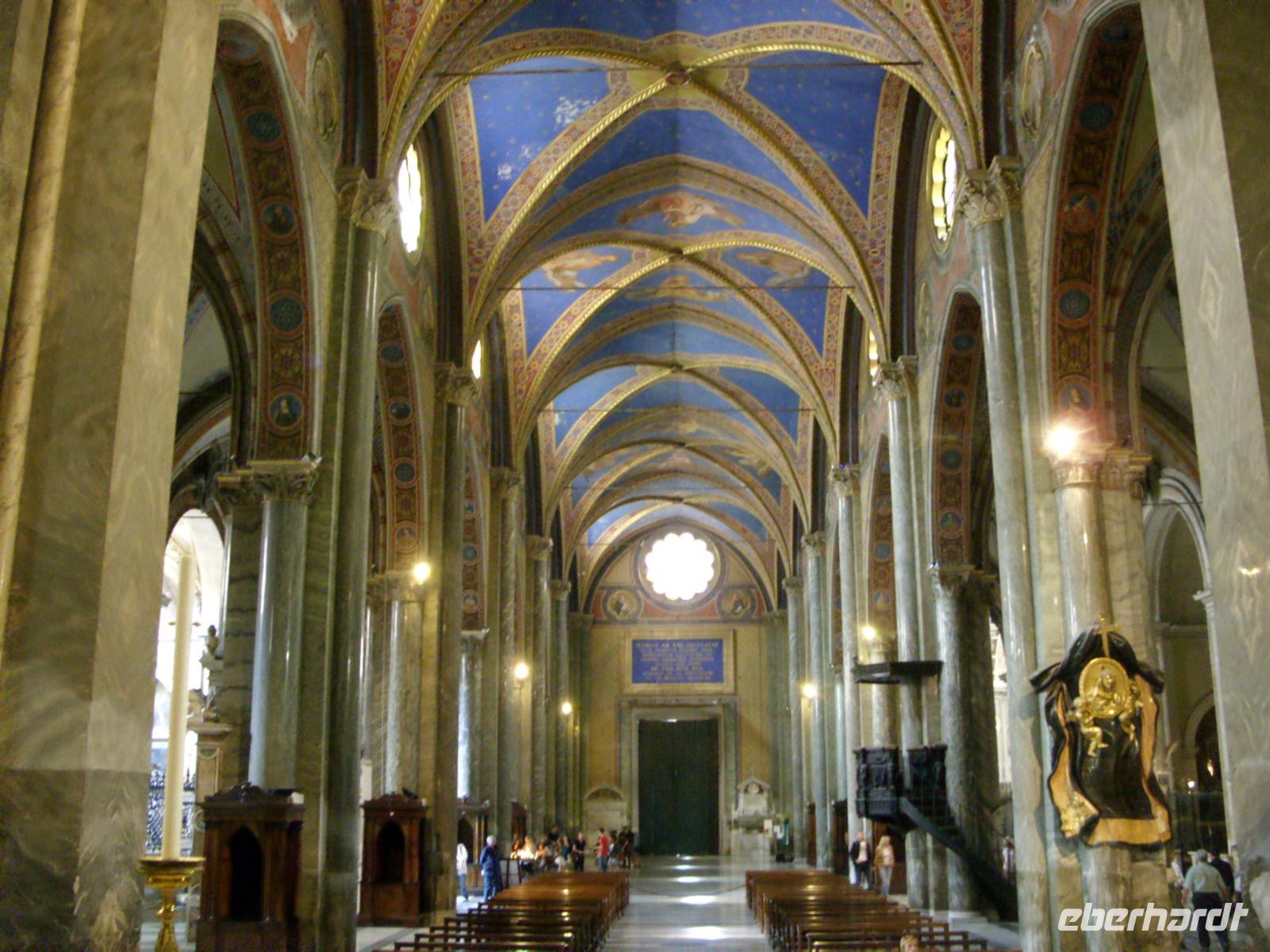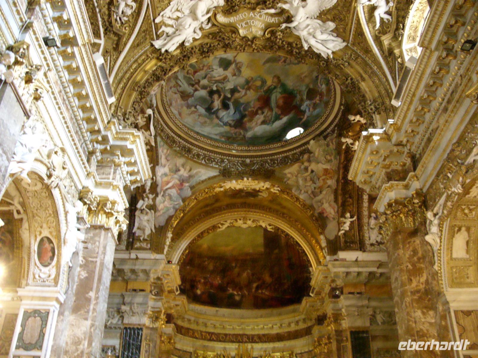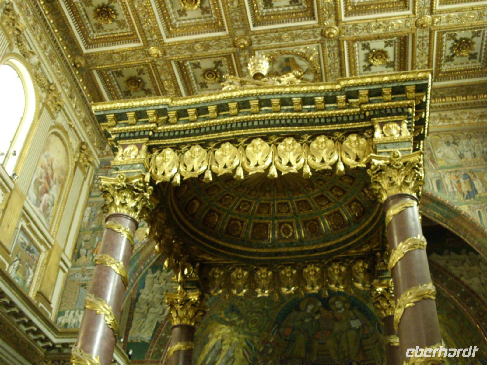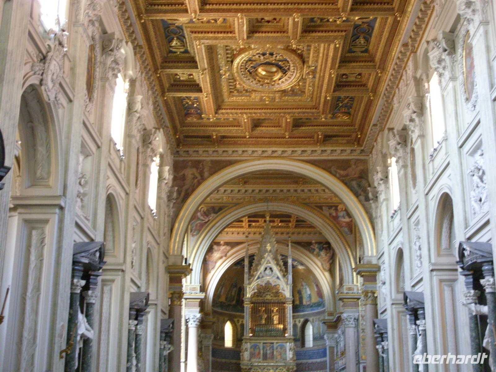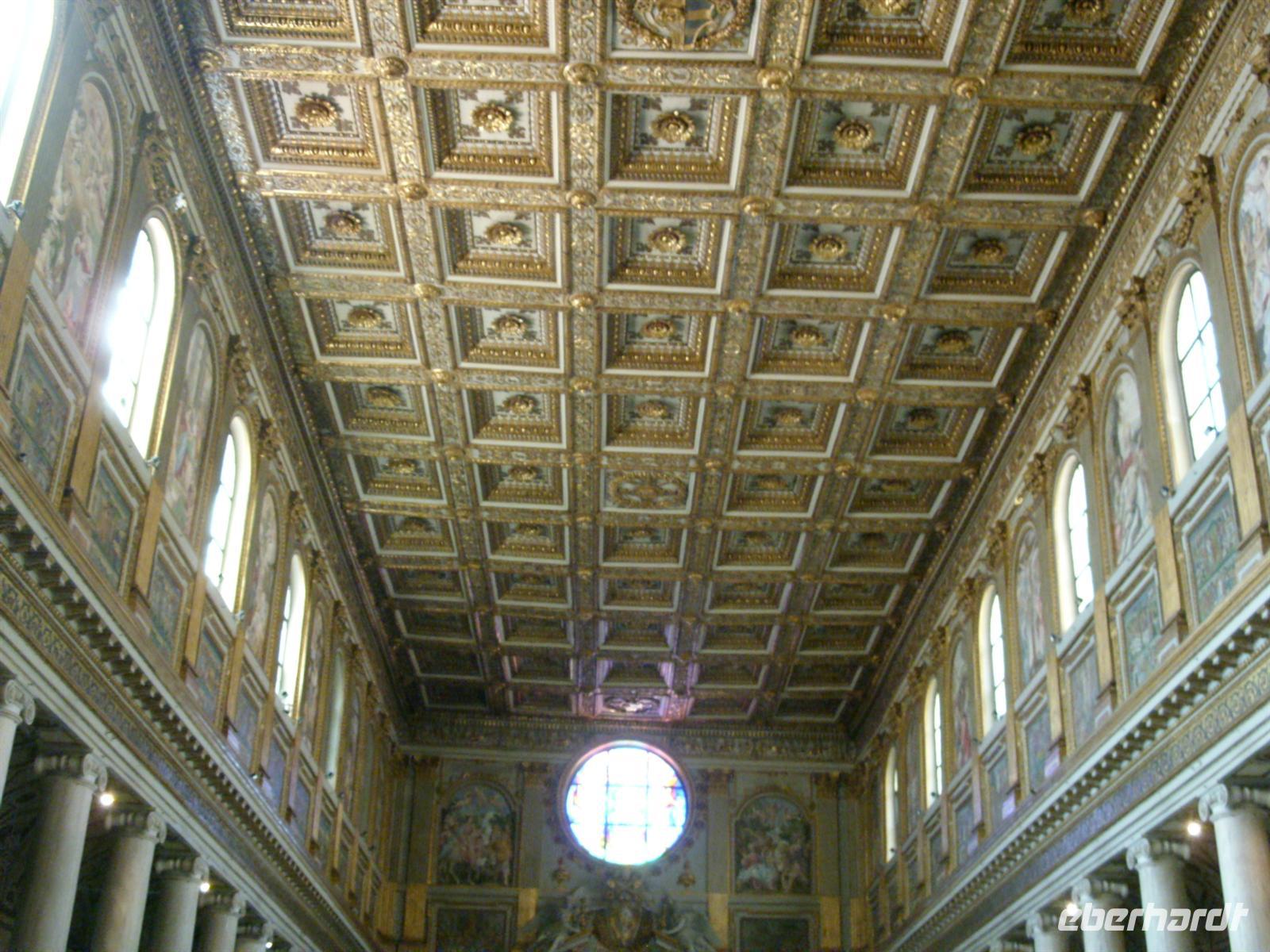 Was war das denn - waren wir in den Morgenstunden doch etwas Kirchenmüde? Scheinbar :=) Also wanderte wir um 9 Uhr zunächt einmal nur zu viert zur recht nahe gelegenen Kirche Santa Maria Maggiore. Diese zählt zu den vier Patriarchatsbasiliken, ist eine der sieben römischen Pilgerkirchen und gilt als die größte und ehrwürdigste der rund 80 Marienkirchen in Rom. Tatsächlich waren sowohl die Renaissancehauptfassade wie auch das dreischiffige Kircheninnere mit seiner kunstvollen Kassettendecke aus Gold sehr sehenswert. Außerdem wollten wir doch einmal das recht einfache Grab von Bernini sehen ...