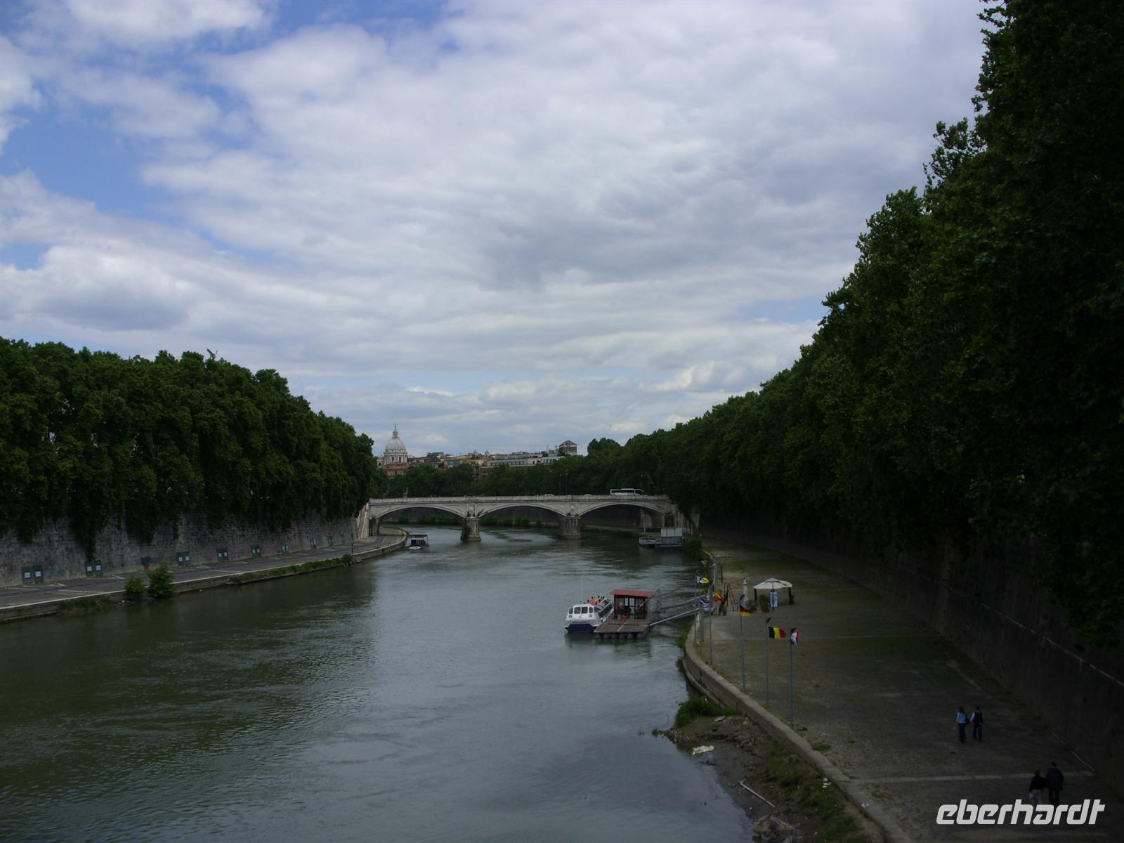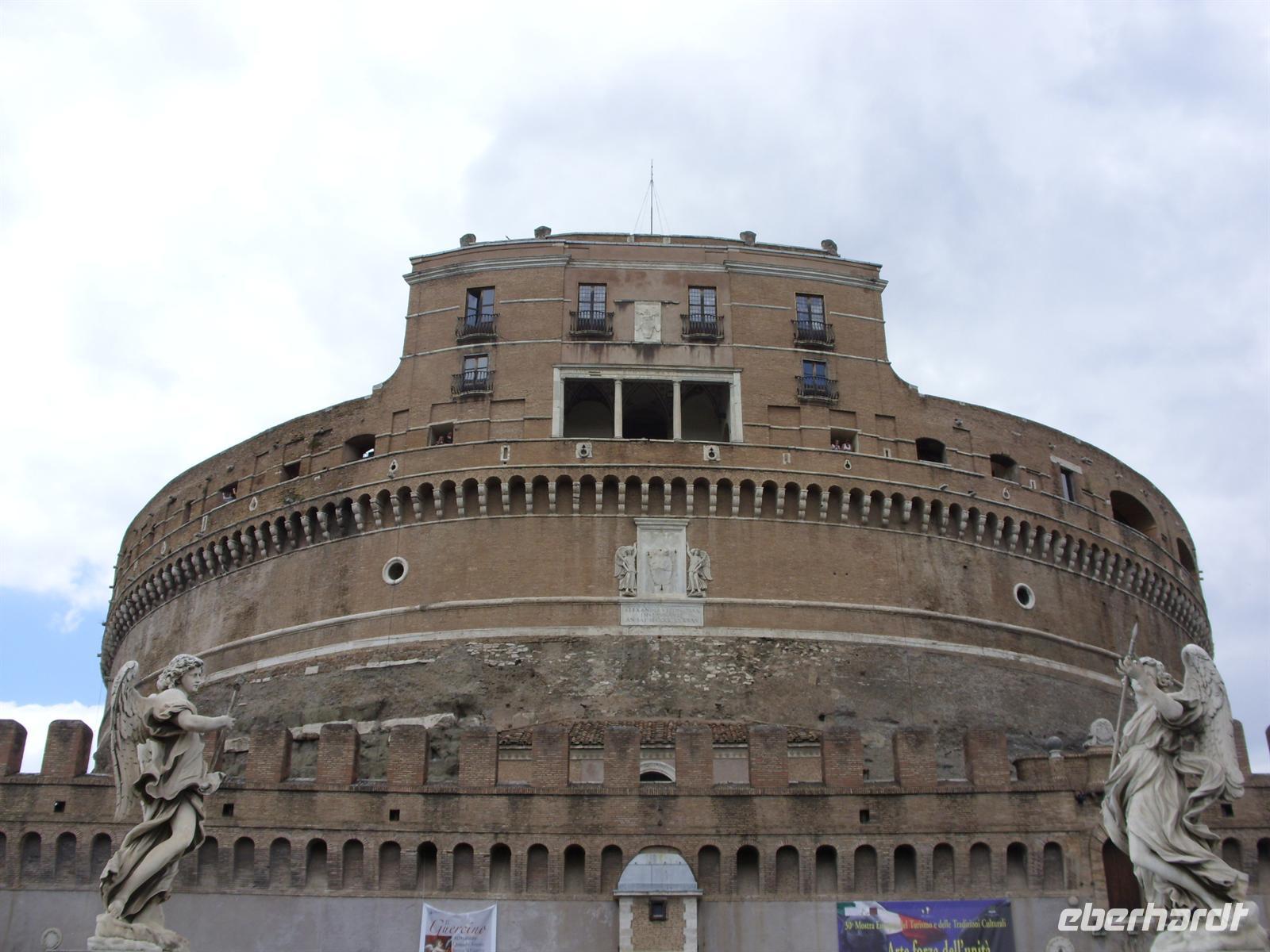 Nun war der Tag doch schon recht fortgeschritten und so wandten wir uns langsam dem Höhepunkt des heutigen Tages zu - dem Petersdom. Bis dorhin überquerten wir jedoch noch den belebten Piazza Navona, einstiges Zirkusgelände und heutiges Mekka für Maler und Restaurantbetreiber. Vor allem in den Abendstunden lebt dieses Stück Rom. Anschließend passierten wir die Deutsch-Österreichische Nationalkirche und wanderte die Via dei Coronari entlang bis wir das Tiberufer erreichten. Jetzt lag die Engelsbrücke mit der Engelsburg direkt vor uns ... Ein imposantes Bauwerk - ehemals als Mausoleum für Kaiser Hadrian im Jahr 130 n.Chr. erbaut, wechselte es jedoch im Laufe der Jahrhunderte seine Bestimmung vom militärischen Stützpunkt im 5. Jahrhundert sowie zur Festung und Gefängnis ab dem 10. Jahrhundert.