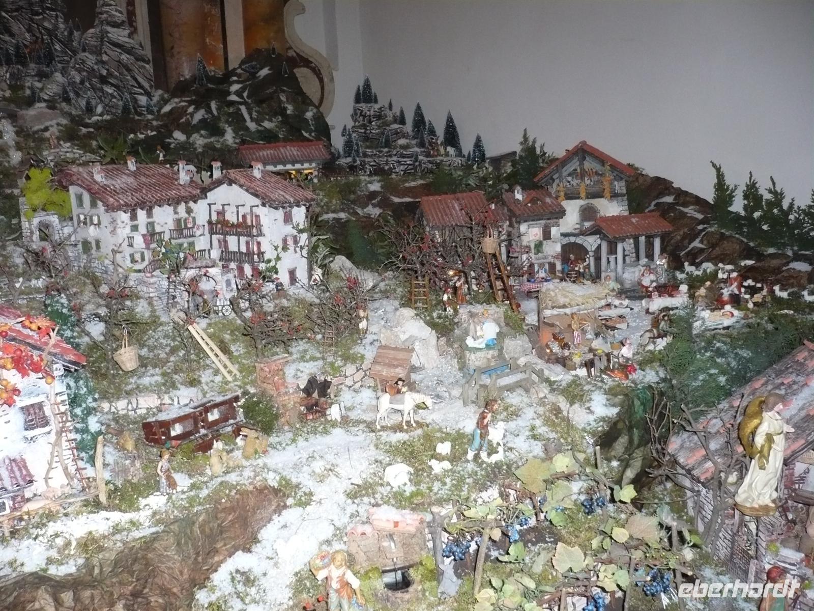 Am Morgen stärkten wir uns am reichhaltigen Frühstücksbuffet für den Tag. Wir gingen an diesem Tag ein Stück auf den Spuren Goethes. In Torbole feilte er an seinem Werk Iphigenie, denn hier fühlte er sich beflügelt und inspiriert durch die schöne Natur. Der heutige Wassersportort erzählt seine eigene Geschichte, auf welcher wir wandelten. Vom ehemaligen Sanatorium über den Hafen, an dem wir ein Wandgemälde von Hans Lietzmann bewundern können, zum Goethehaus bis hinauf auf den Hügel der Kirche S. Andrea. In der Kirche konnten wir eine liebevoll in Handarbeit gefertigte Krippenlandschaft betrachten. Mit einigen Gästen erkundete ich die Stadt von oben, vom Aussichtsfelsen hat mein einen herrlichen Blick über das Sarcatal und Torbole. Am Hafen beobachteten wir die Einfahrt unseres Privatbootes, welches die Mehrheit der Gäste nach Limone bringen sollte. Nicht ganz Seetaugliche Gäste konnten mit unserem Busfahrer Ferdinant nach Limone fahren. Das Wetter am Gardasee zu dieser Jahreszeit ist unberechenbar. In Limone erwartete uns ein heftiger Sturm vom Wasser her. So ist unser Aufenthalt in Limone eher kurz ausgefallen. Die Gäste die mit dem Boot gefahren sind haben die Gelegenheit genutzt, um in einer gemütlichen Trattoria einzukehren. Mit dem Boot bzw. mit dem Bus ging es nach Riva del Garda. Hier hatten wir noch eine kurze Pause bevor wir uns durch die Gassen auf Endeckungstour begaben. In der Via Maroccane hatten die Einwohner vom Garda eine schöne Freilichtkrippe aufgebaut. Und nur wenige Schritte weiter befand sich die neuste Sehenswürdigkeit von Riva, die römischen Bäder wurden erst vor wenigen Jahren freigelegt. Von hier aus ist es zu unserem Hotel nur noch wenige Schritte, so teilte sich hier die Gruppe. Einige gingen noch ein paar Meter bis zum Hafen und dem Kongresscenter um von dort aus mit dem Bus zum Hotel zu fahren. An diesem Tag war auch noch etwas Zeit, um den schönen Pool und die Saunalandschaft zu nutzen. Am Abend des 25.12. wird in ganz Italien Weihnachten gefeiert. So wurde auch uns heute ein festlich angehauchtes Menü serviert. Gemeinsam freuten wir uns auf den bevorstehenden Tag.